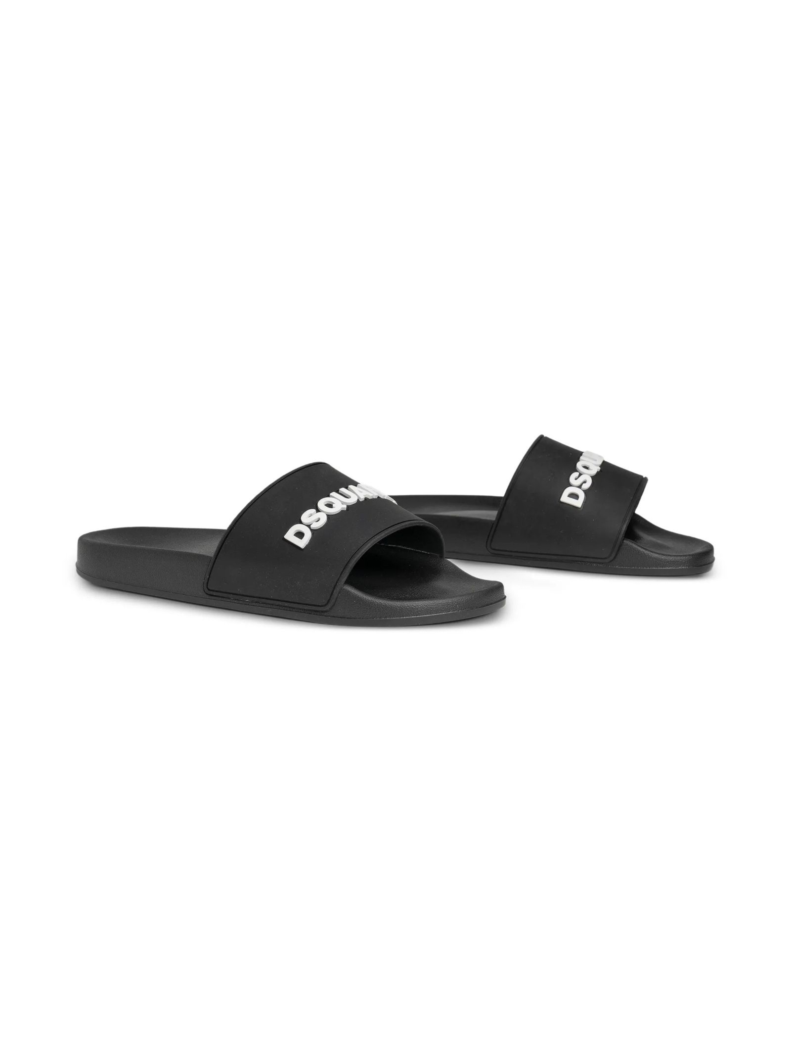 Sandali slides nero, logo in lettere, design slip-on, punta aperta, plantare sagomato