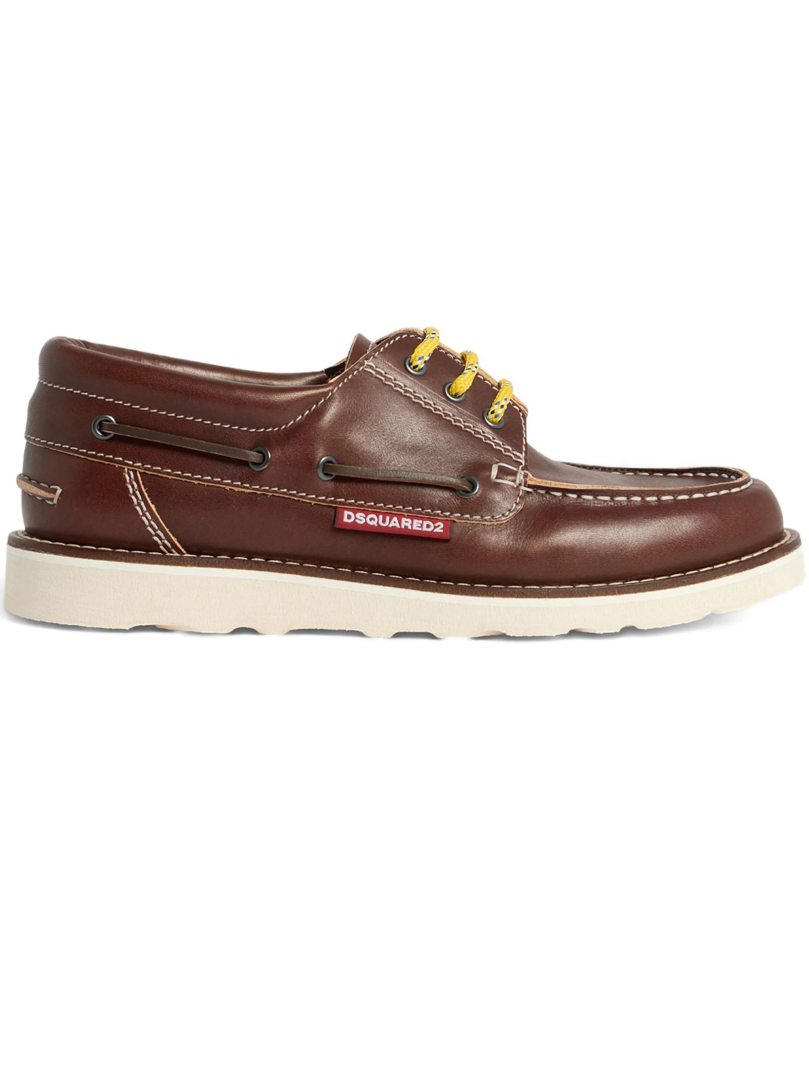 Scarpe Da Barca Explorer In Pelle Marrone, Slacciate, Lavorazione Blake, Lacci Laterali Decorativi, Etichetta Dsquared2 Rossa