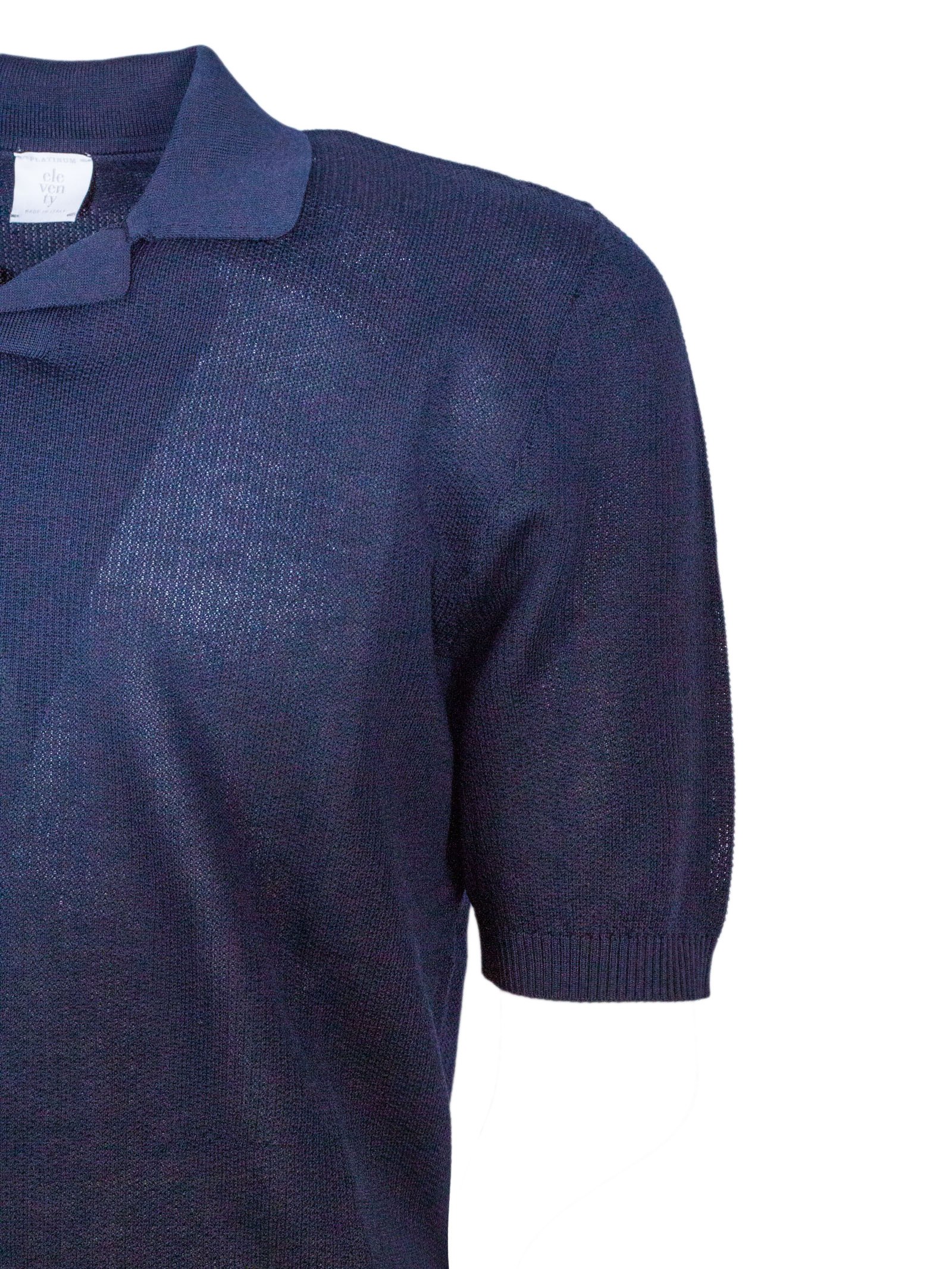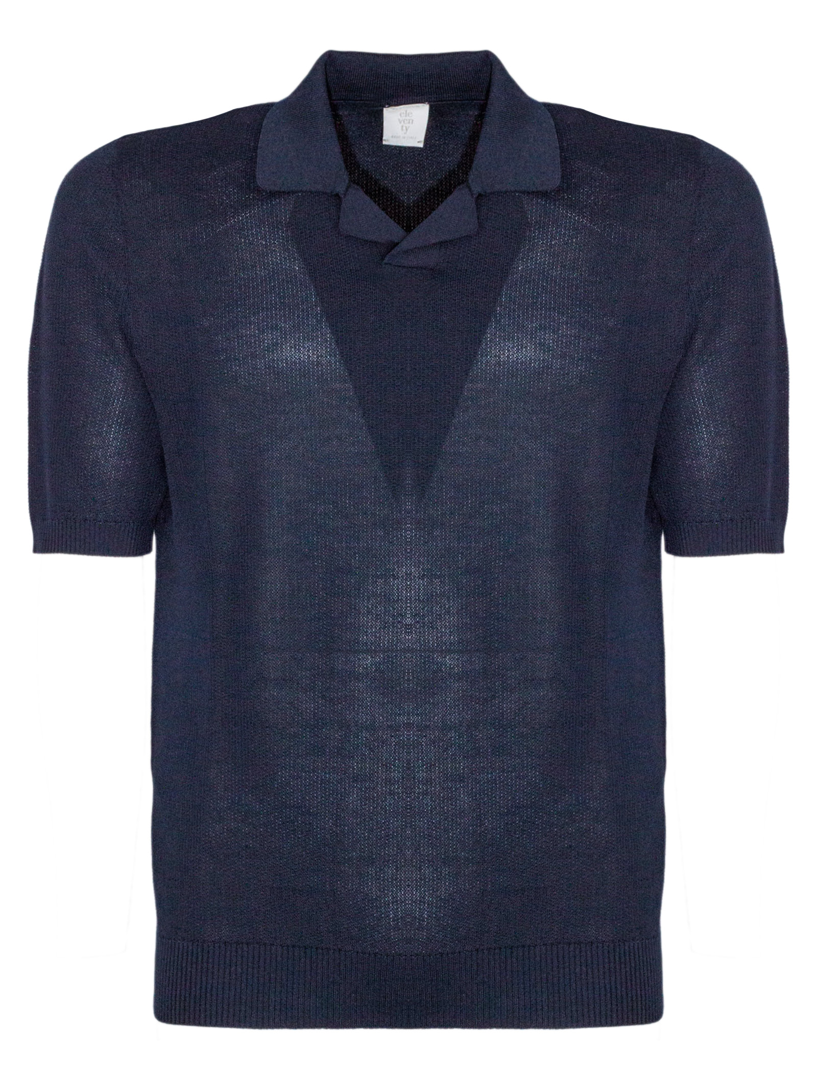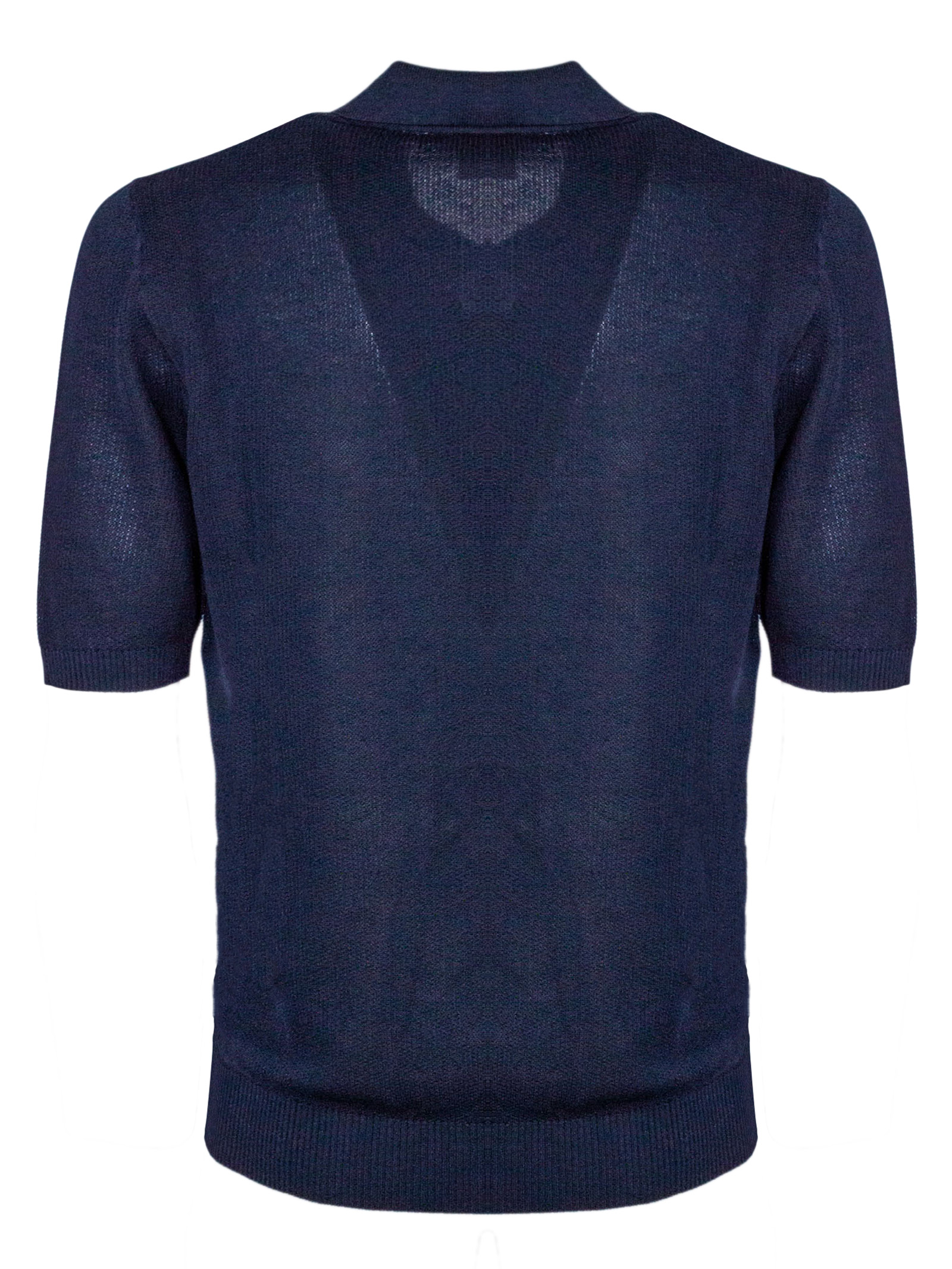 Polo in maglia di cotone blu con maniche corte, colletto classico senza bottoni, finiture a costine