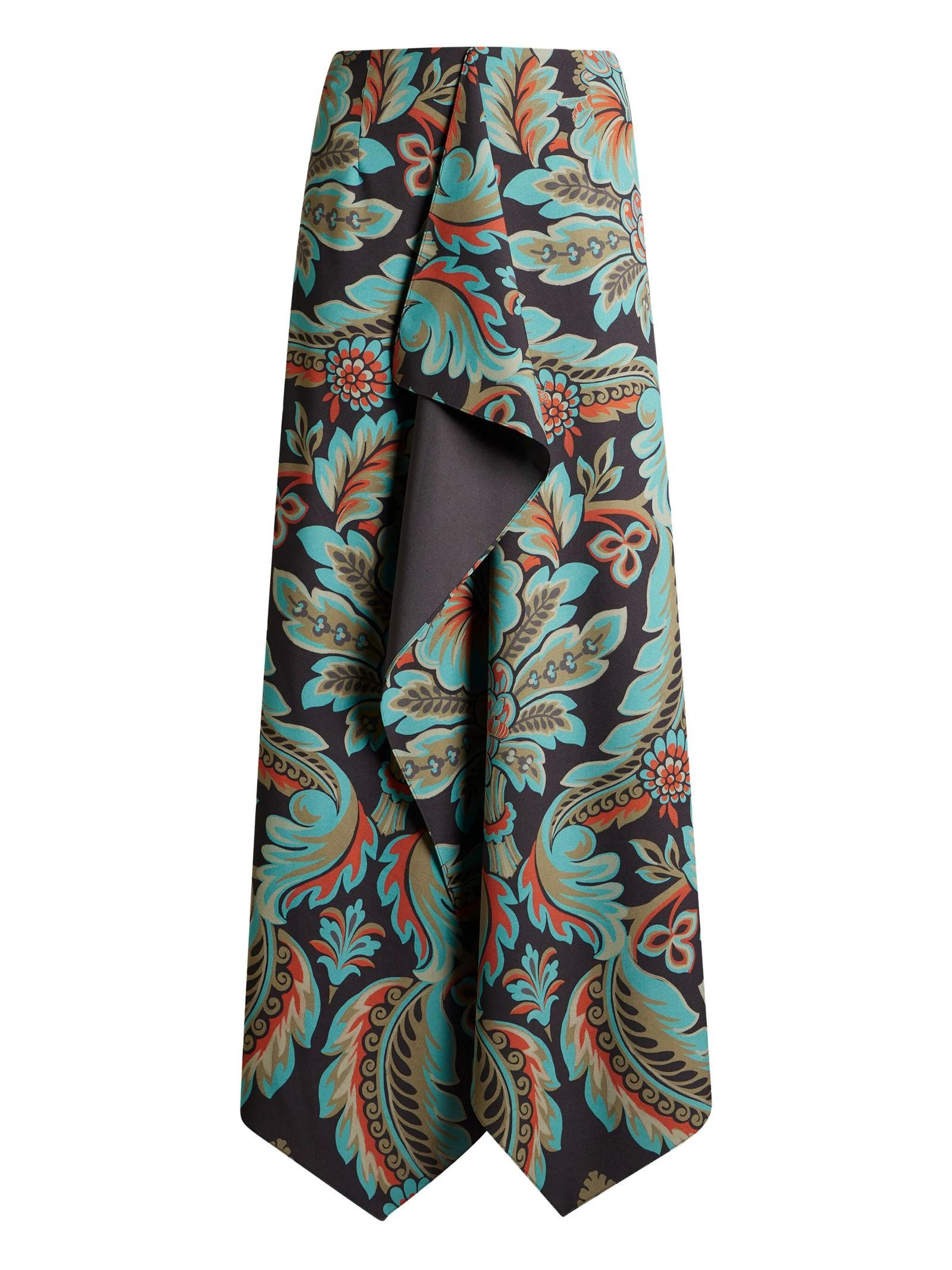 Gonna midi con stampa, multicolore, orlo asimmetrico, dettaglio drappeggiato, stampa paisley, chiusura con zip nascosta