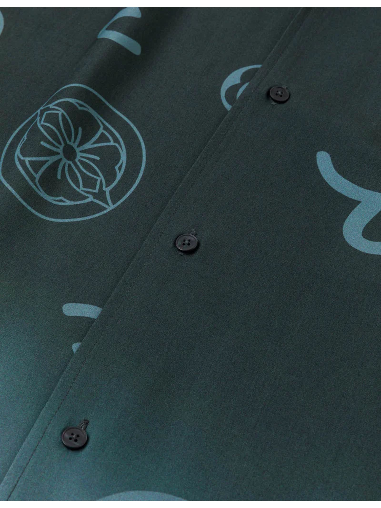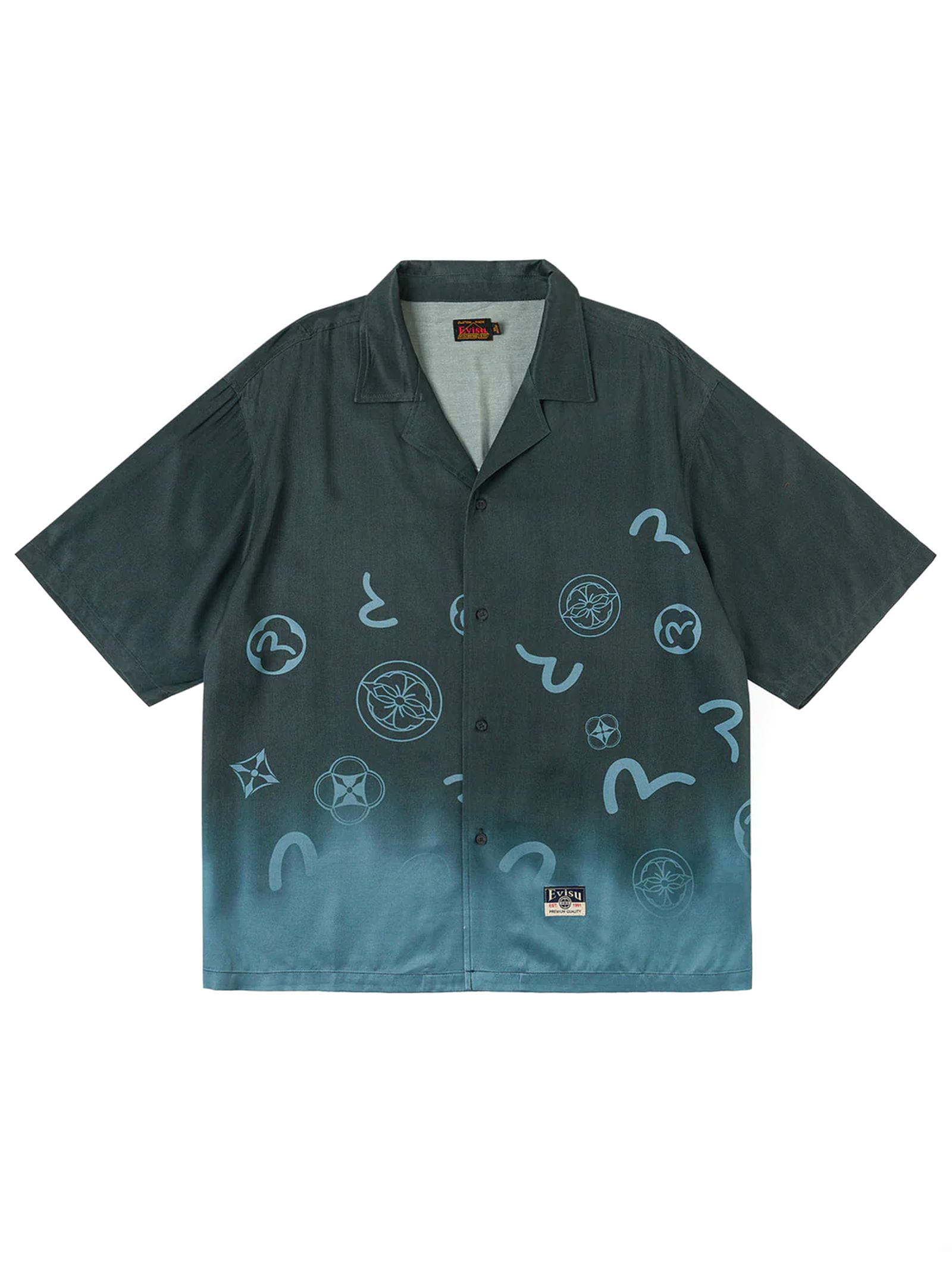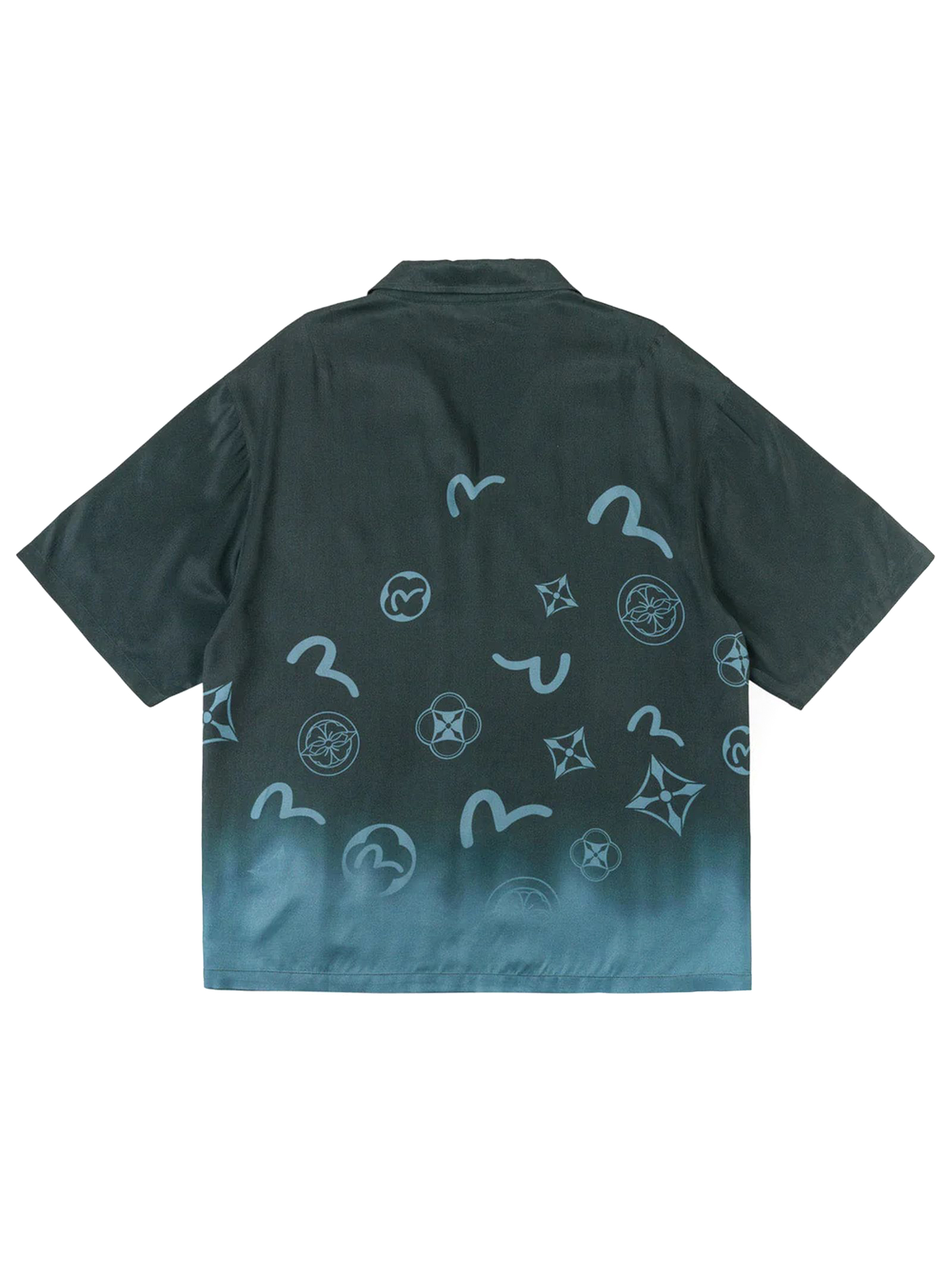 Camicia con monogramma e effetto dip-dye, 100% viscosa, stampa all-over dip-dye con gabbiani e kamon, abbottonatura frontale, maniche corte