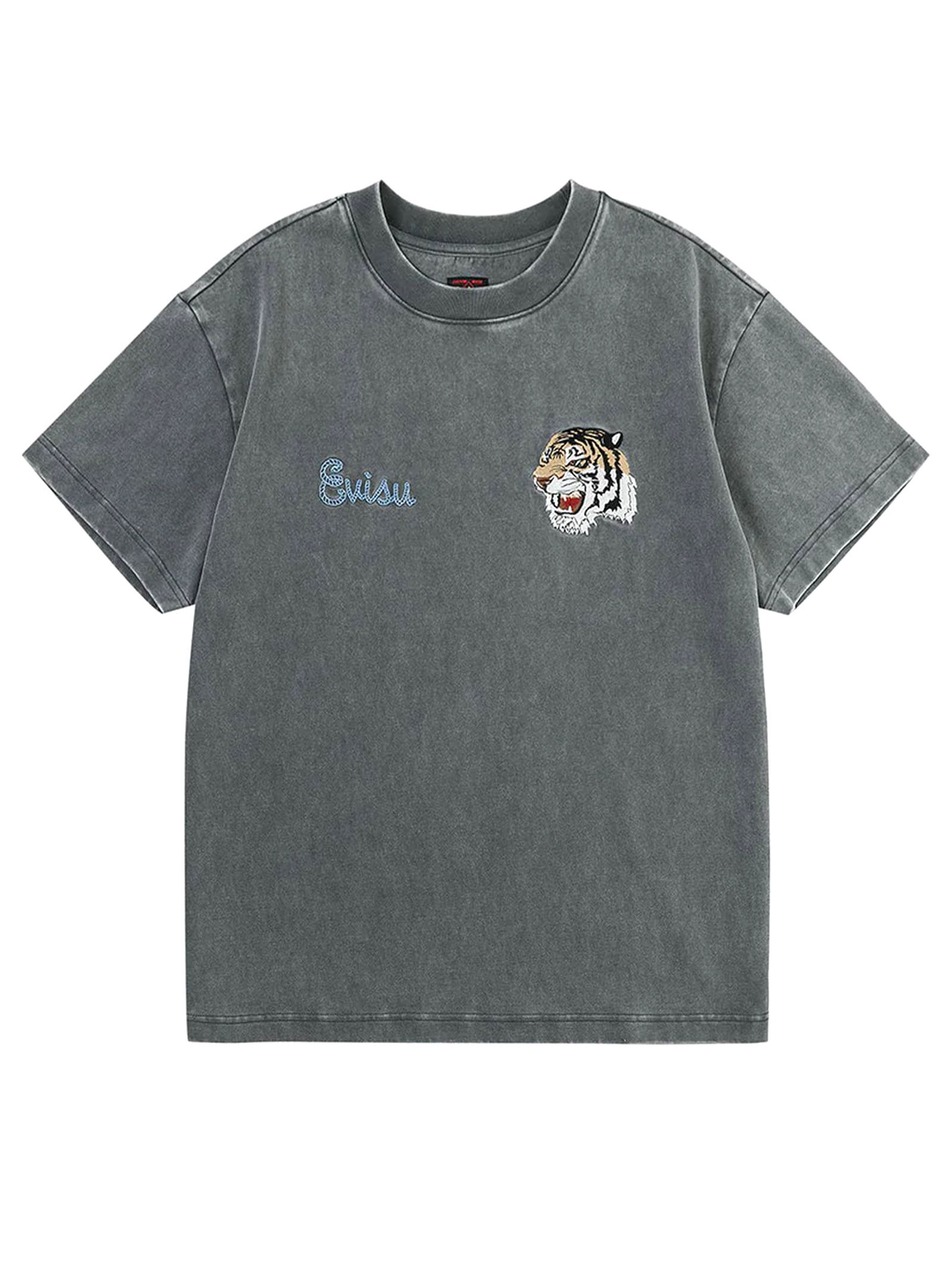 T-shirt nera in cotone con stampa logo Tiger, Seagull e corda, 100% cotone, vestibilità comoda