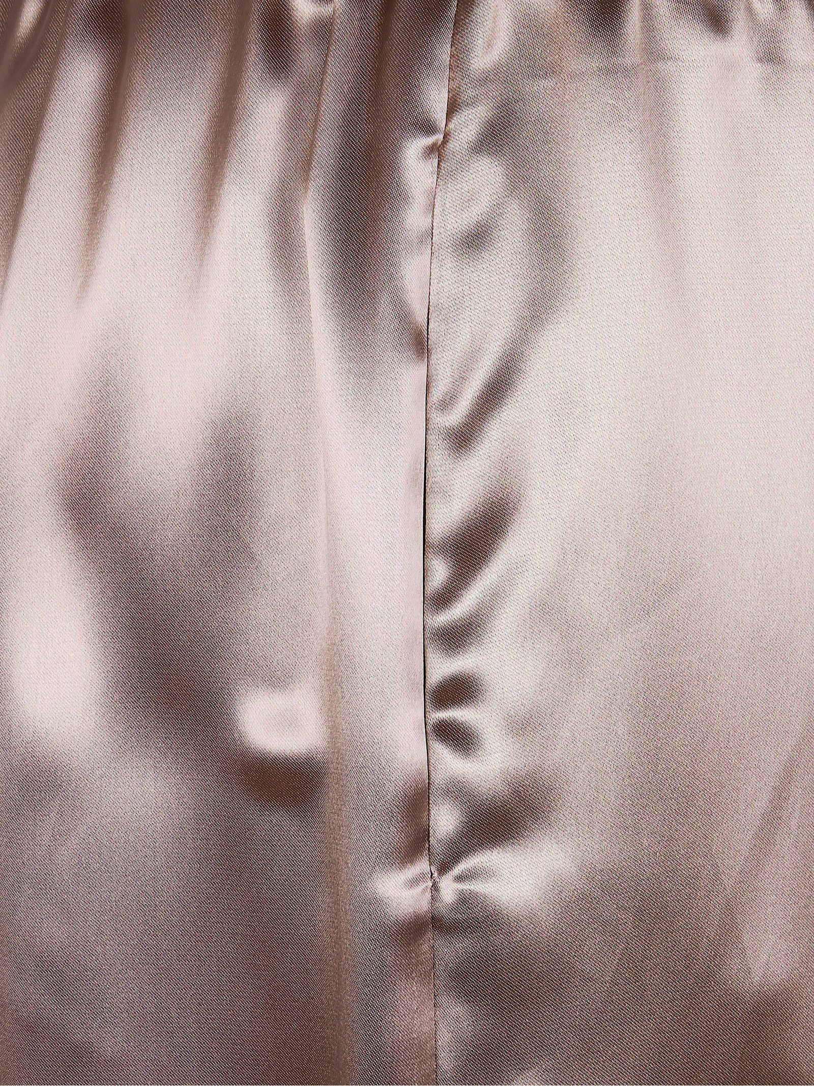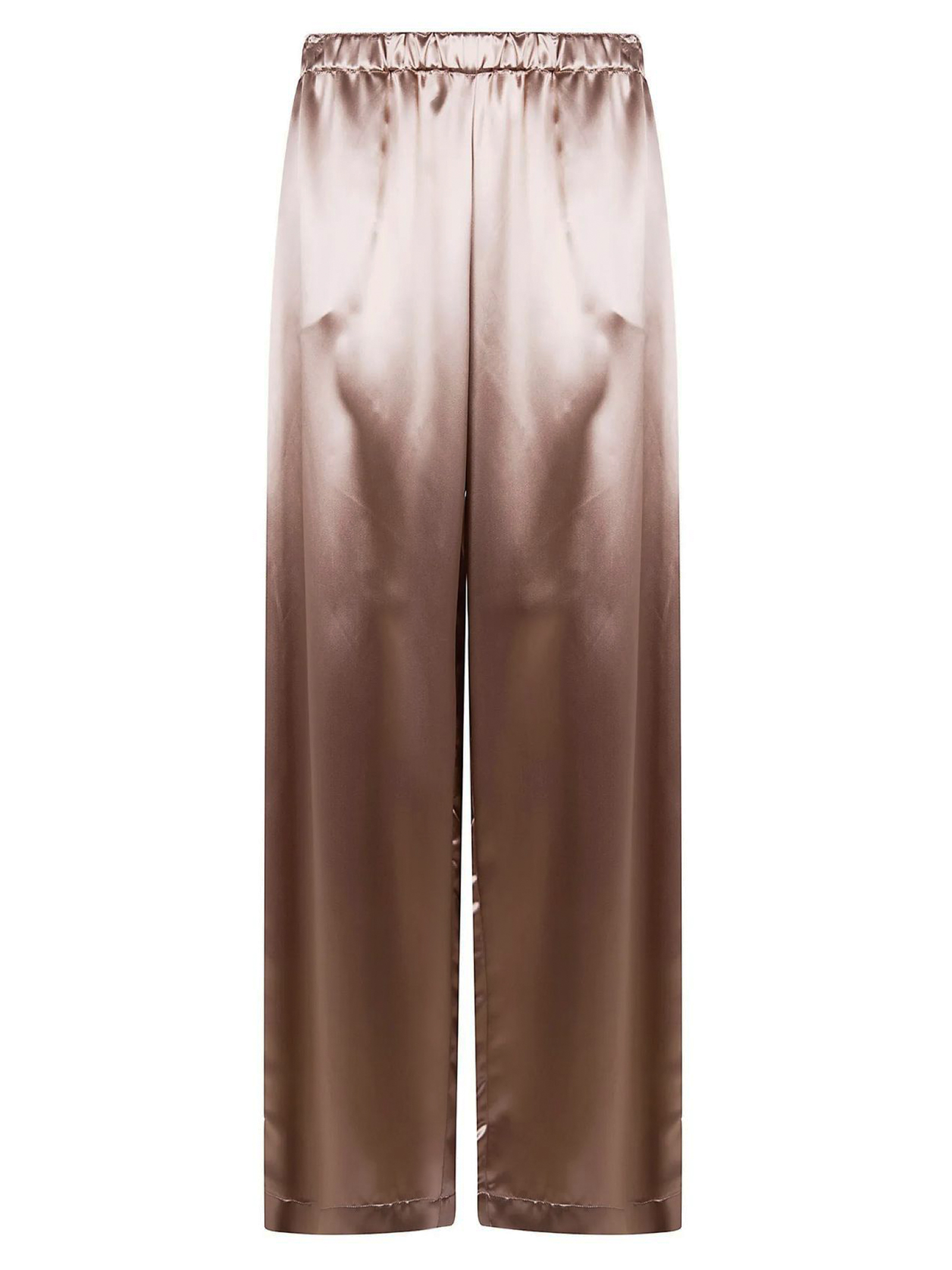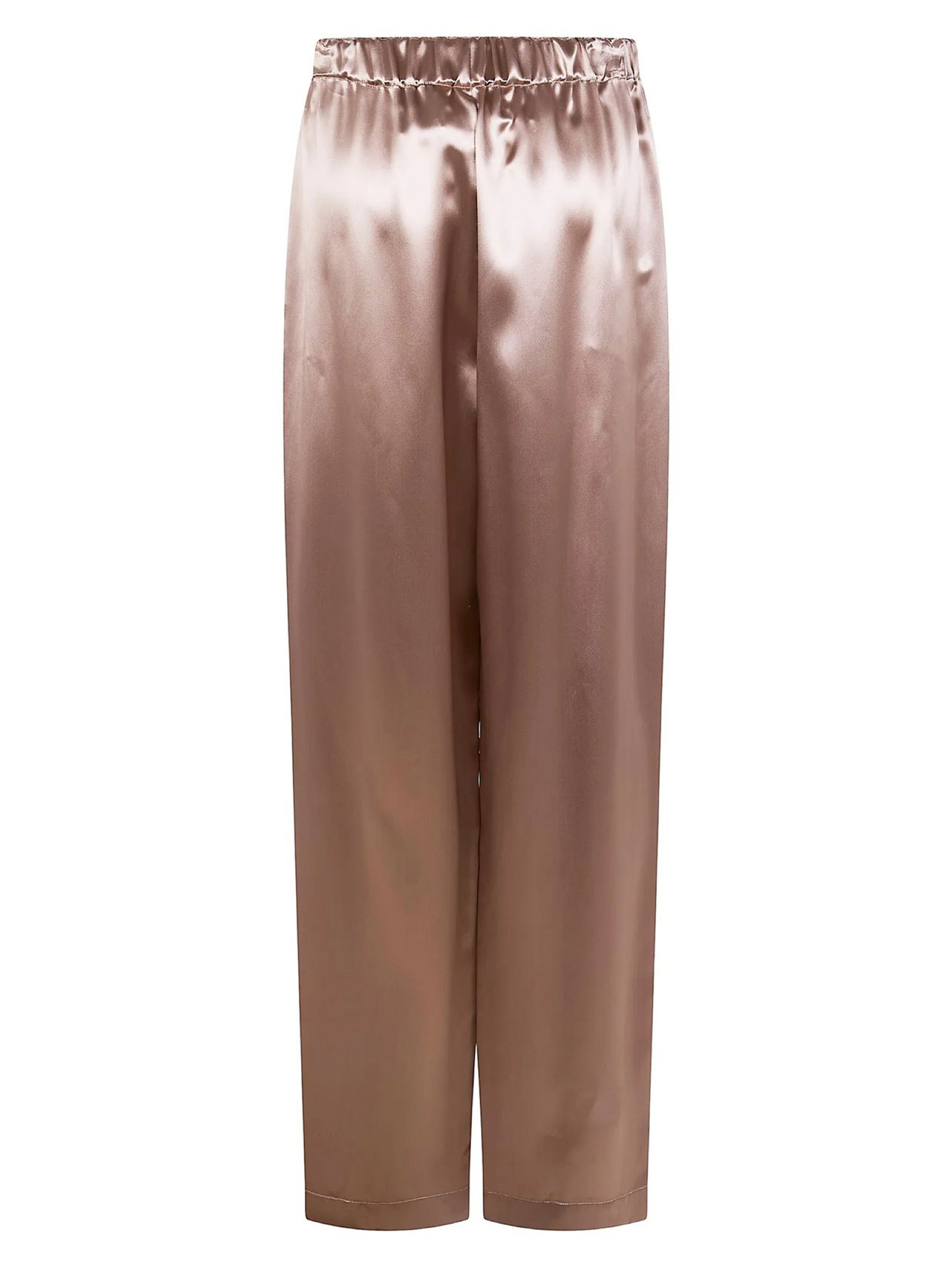 Pantalone Trevi in satin beige, vita elasticizzata, dettaglio con cuciture, vestibilità morbida