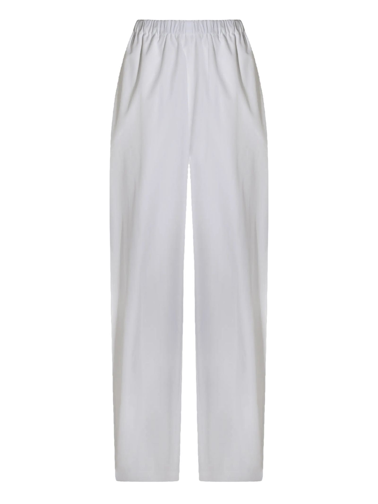Pantaloni bianchi in cotone con vita alta elasticizzata e vestibilità morbida