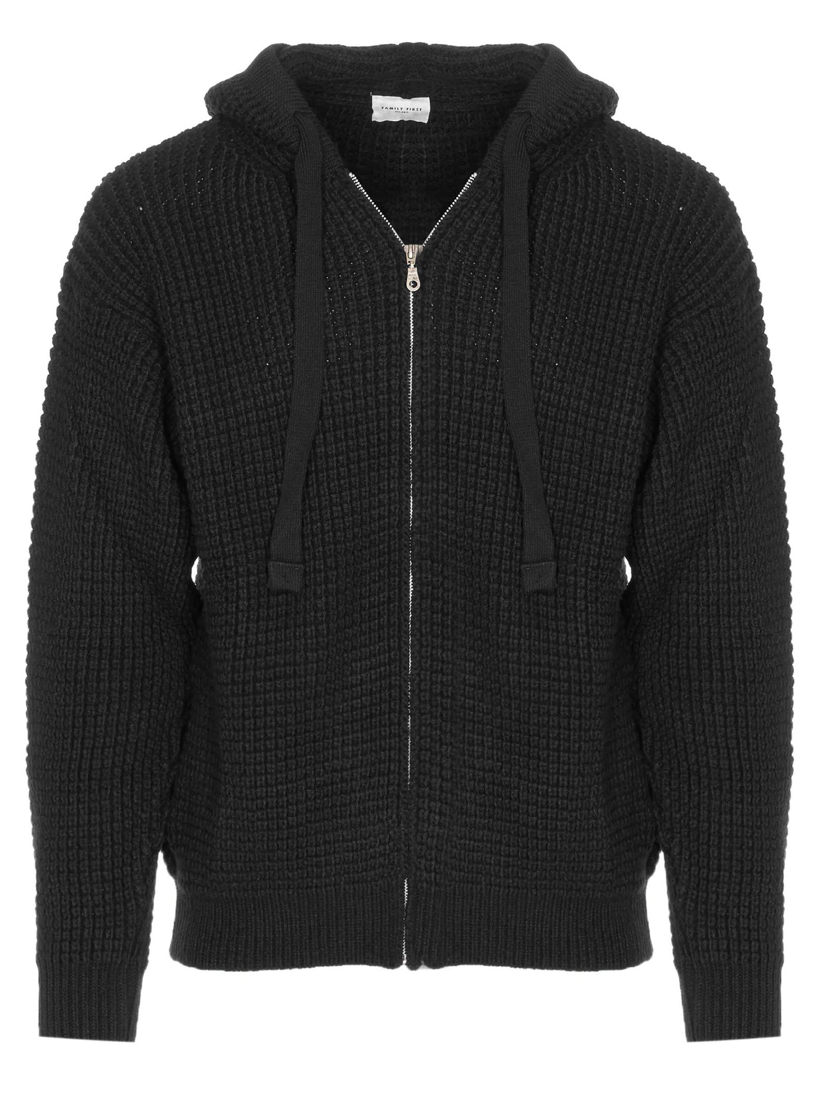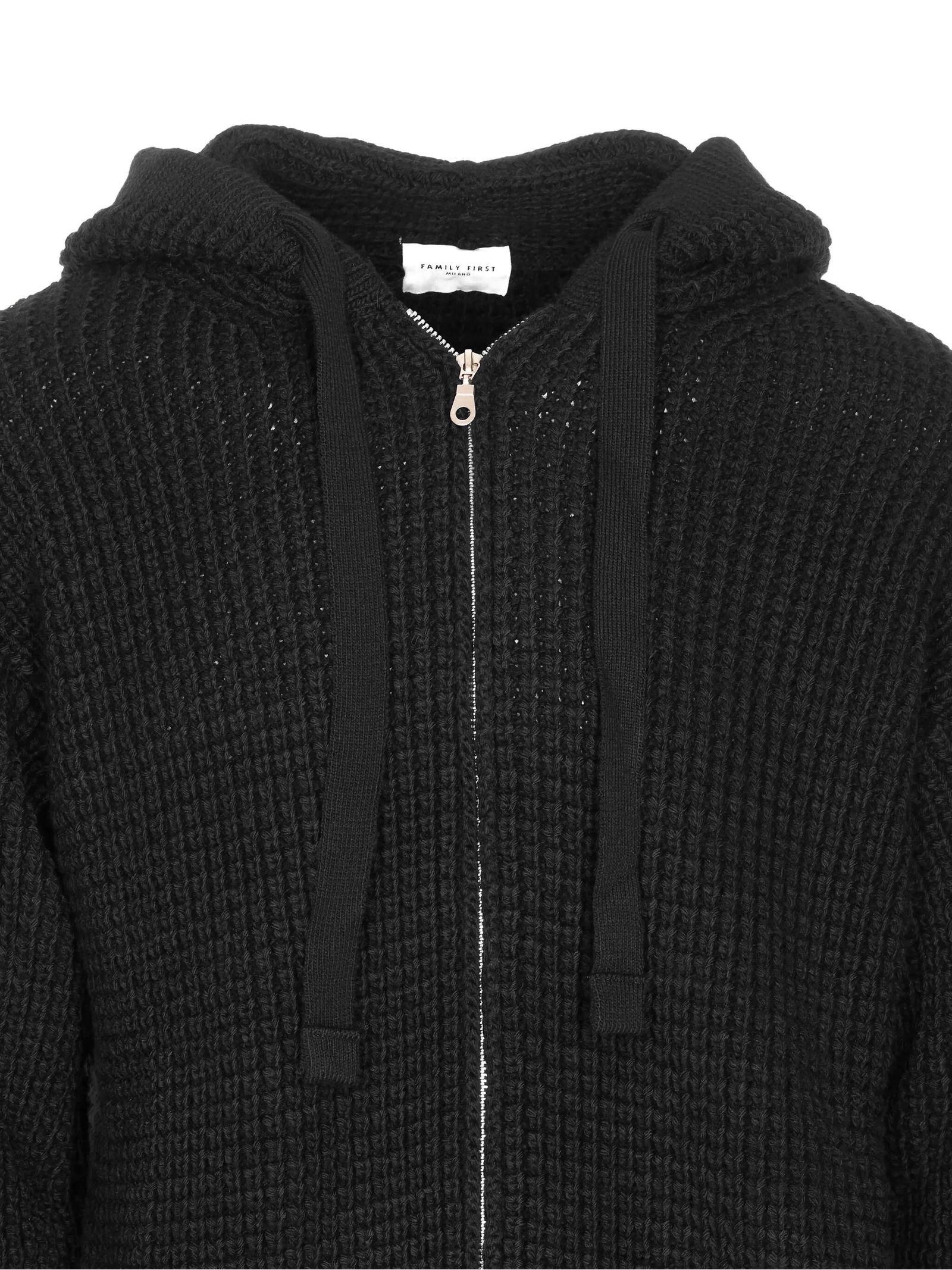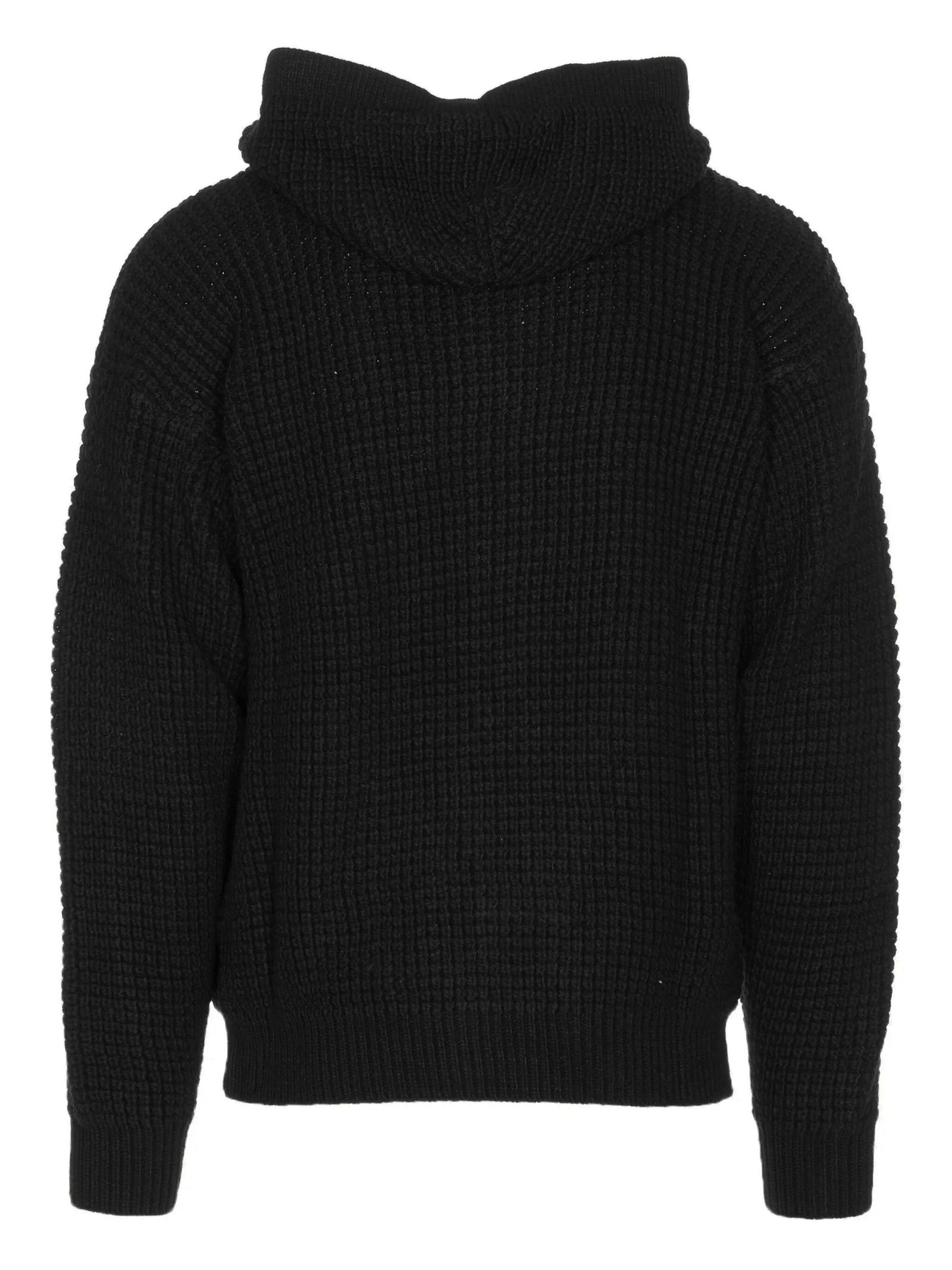 Felpa con cappuccio in misto lana nera, chiusura con zip, collo con cappuccio, maniche lunghe, cappuccio con coulisse, orlo a coste, polsini a coste