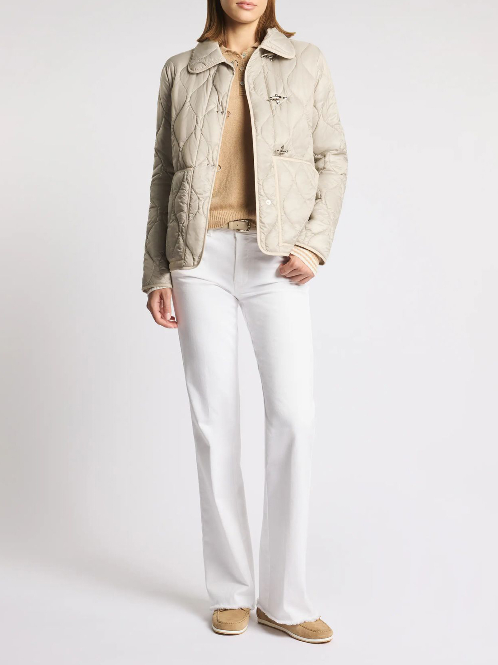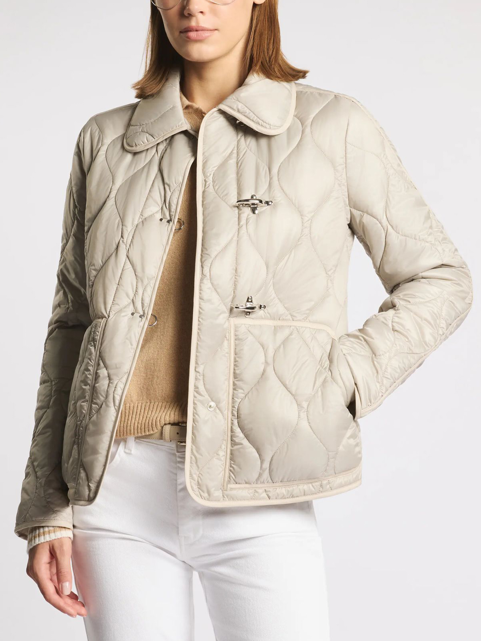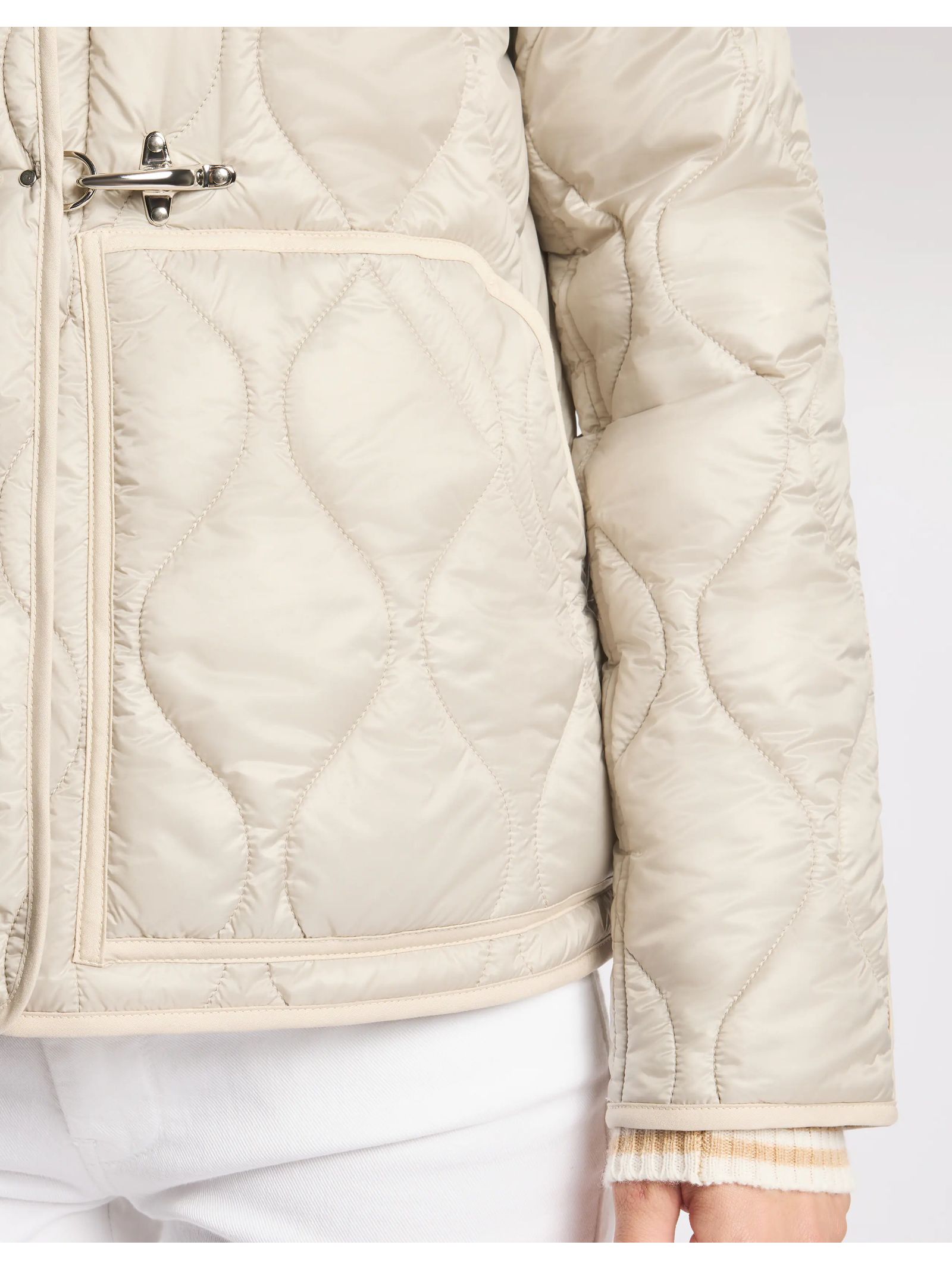 3 Ganci in Tessuto Tecnico con imbottitura in ovatta e trapunta con motivo onion, presenta una chiusura con automatici nascosti e maxi tasche a marsupio, Fitting regular