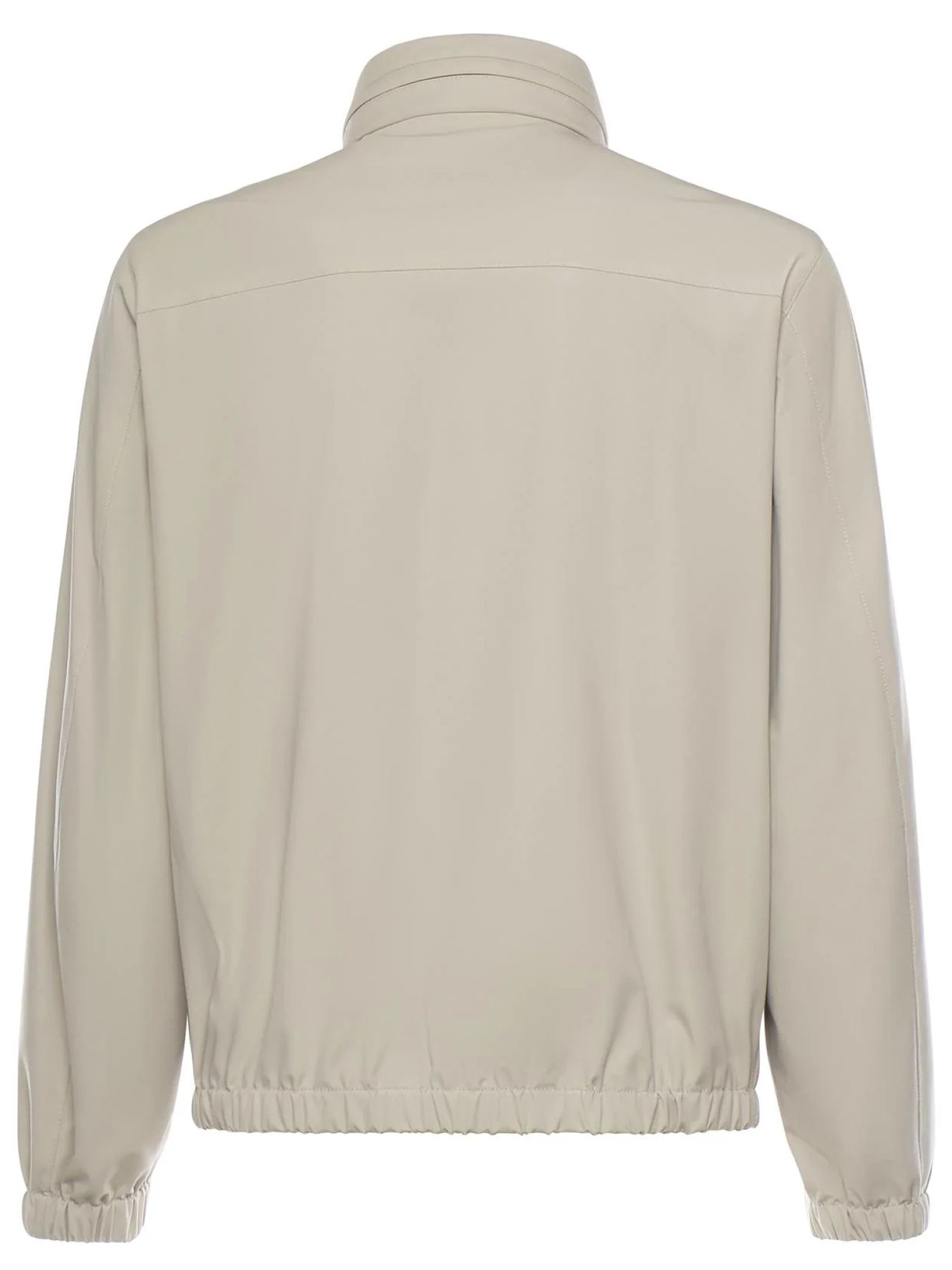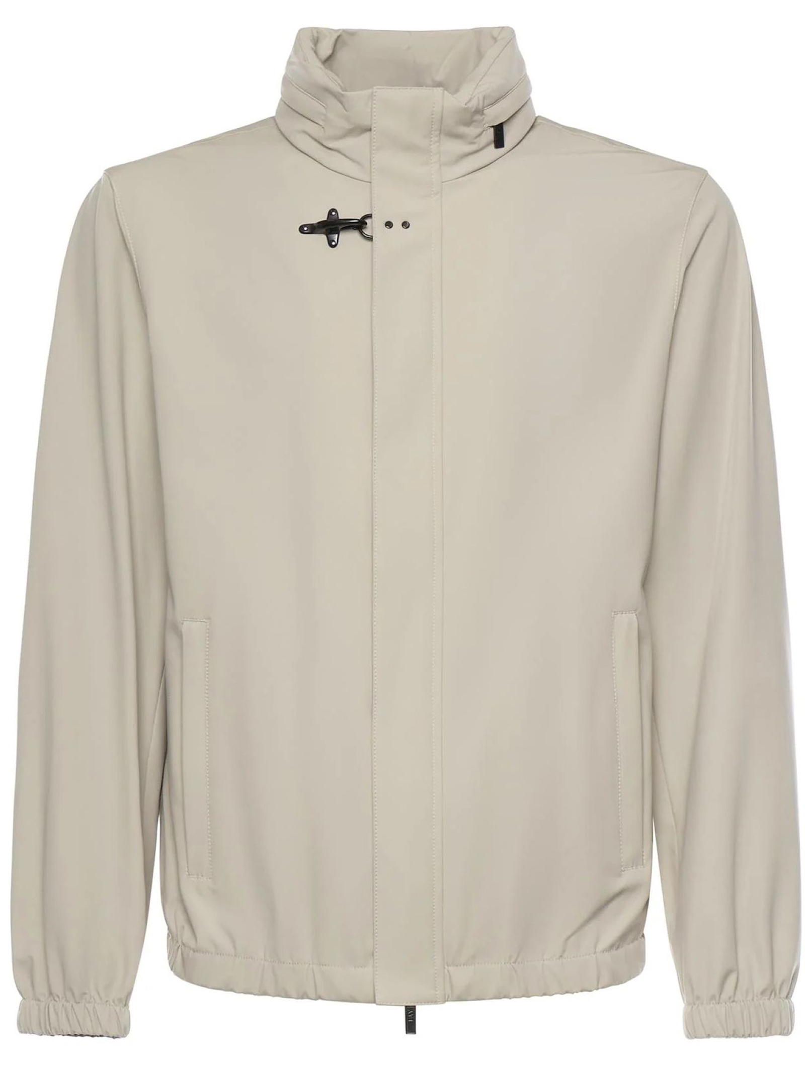 Bomber Travel foderato realizzato in nylon stretch con trattamento antigoccia, dotato di un collo in piedi con cappuccio estraibile, presenta un fondo e polsi con elastico. Chiuso con zip, bottoni automatici e l'iconico gancio all'altezza del collo, ha le tasche a filetto con zip. Il modello è completato da una pratica tasca interna