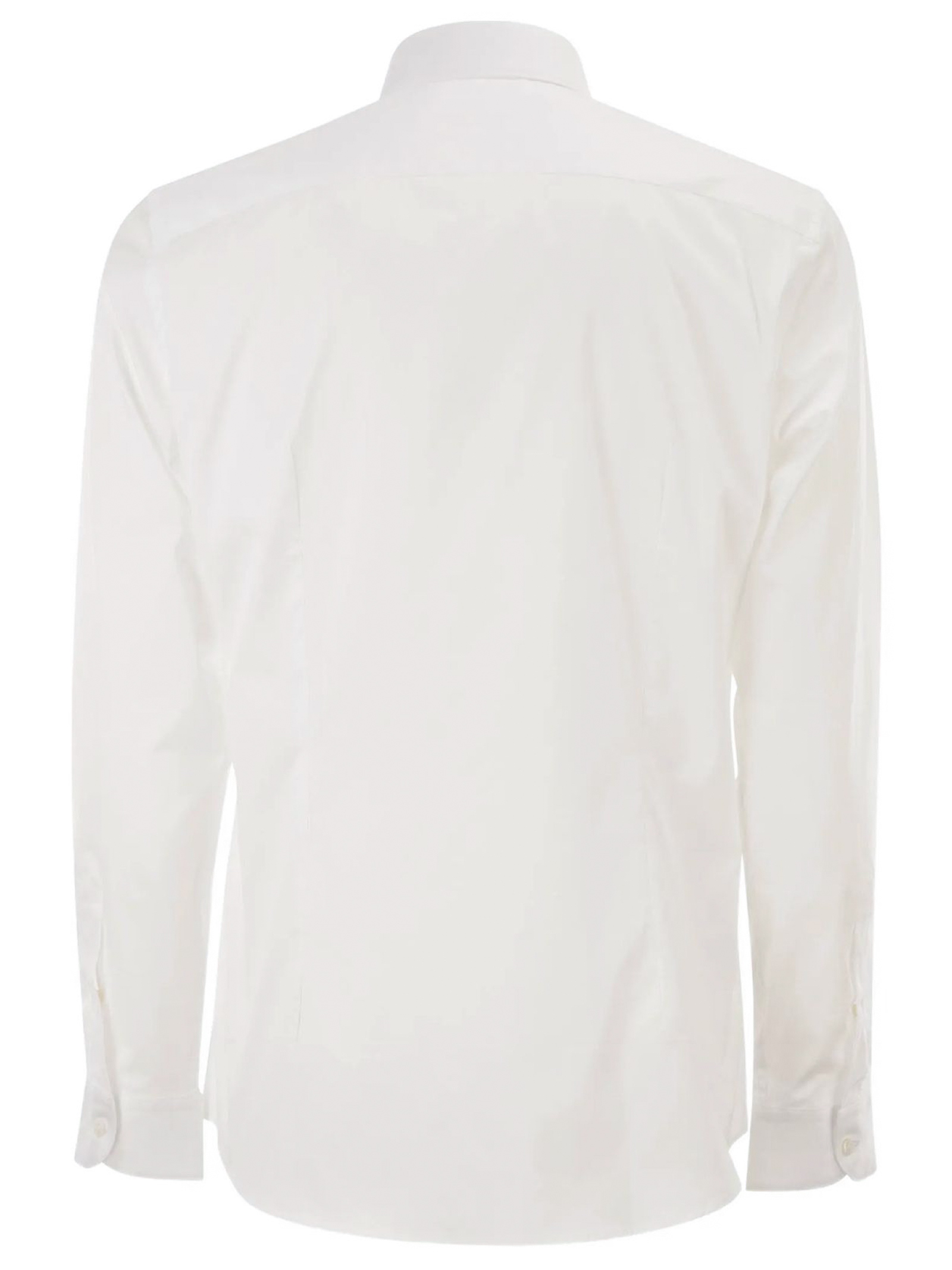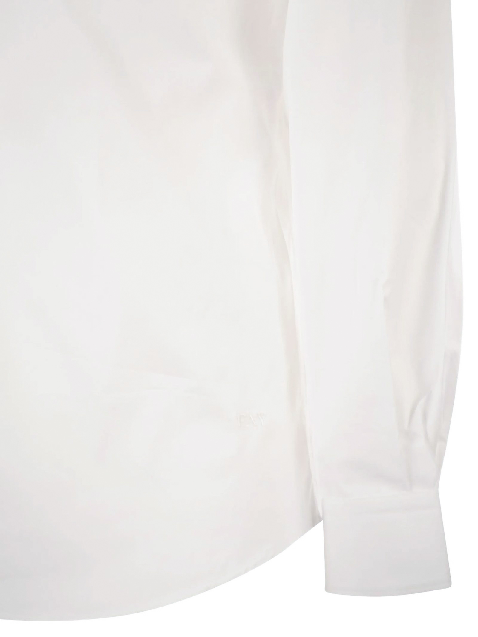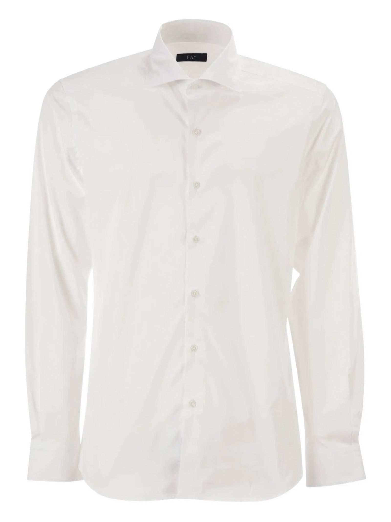 Camicia regular fit realizzata in popeline di cotone stretch, con collo francese e pinces posteriori. Caratterizzata da un'abbottonatura senza cannoncino, presenta il logo Fay ricamato sul fondo