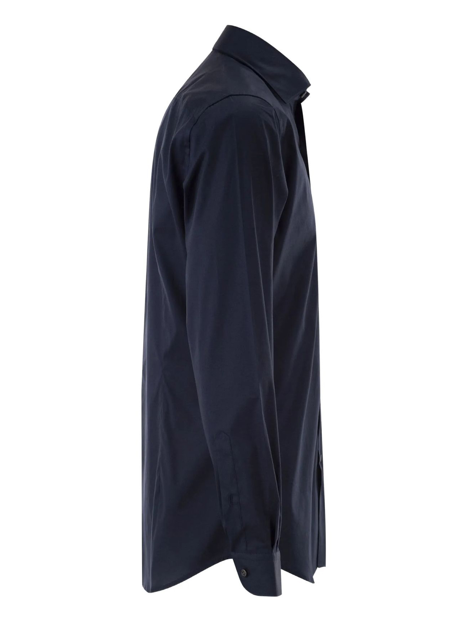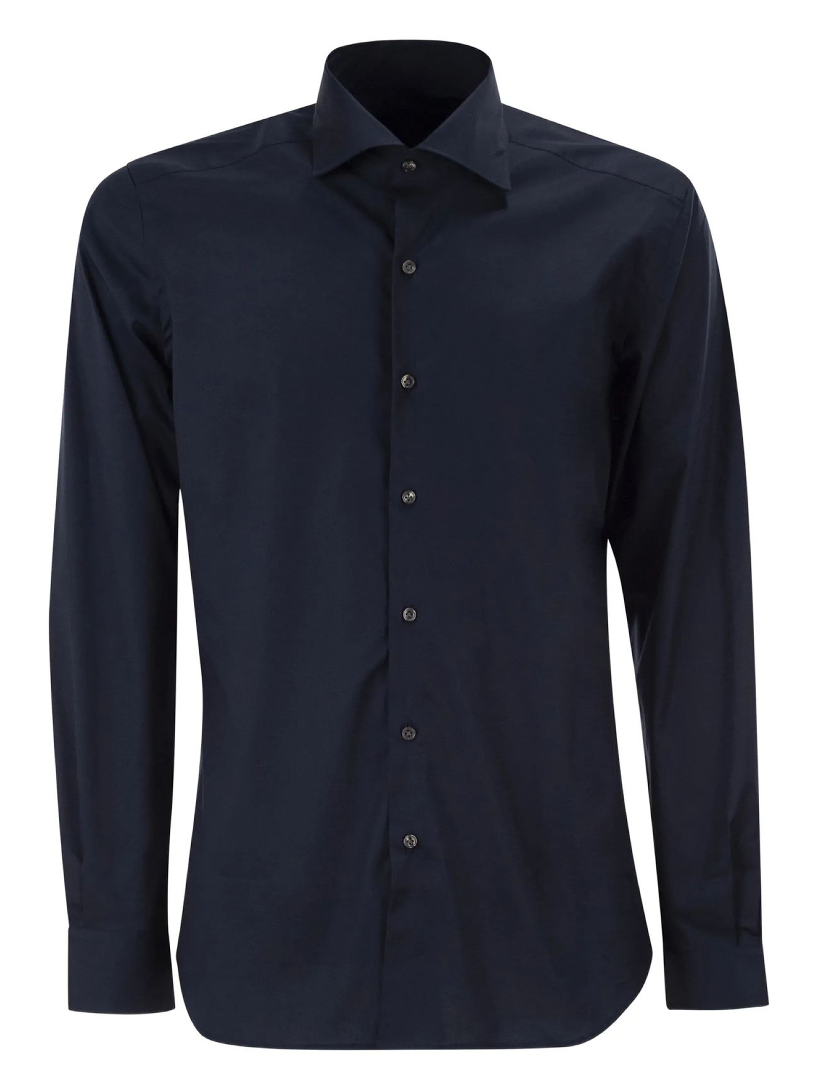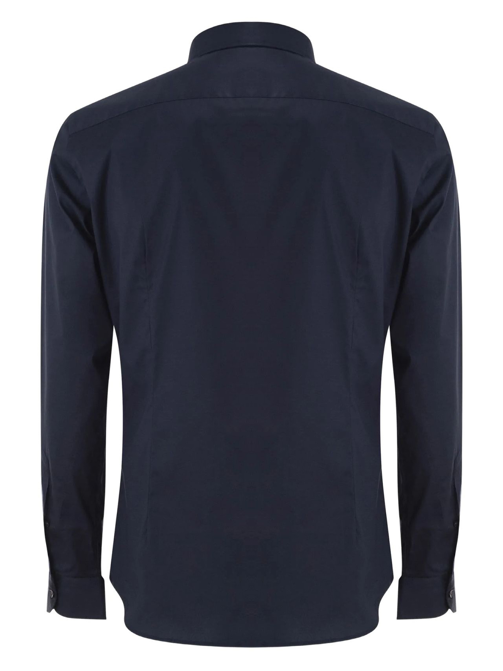 Camicia regular fit realizzata in popeline di cotone stretch, con collo francese e pinces posteriori. Caratterizzata da un'abbottonatura senza cannoncino, presenta il logo Fay ricamato sul fondo