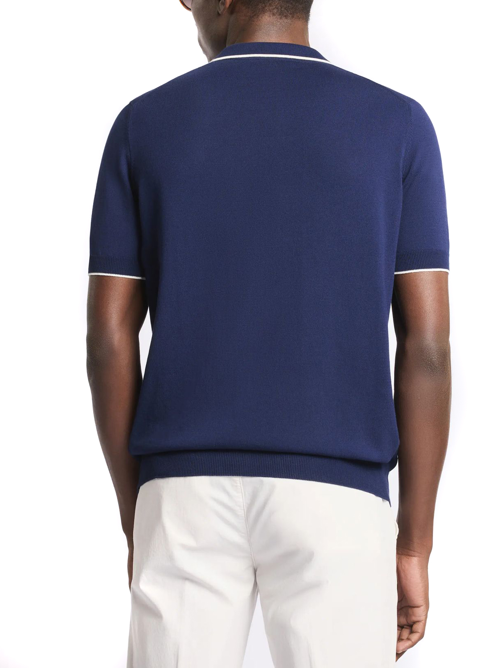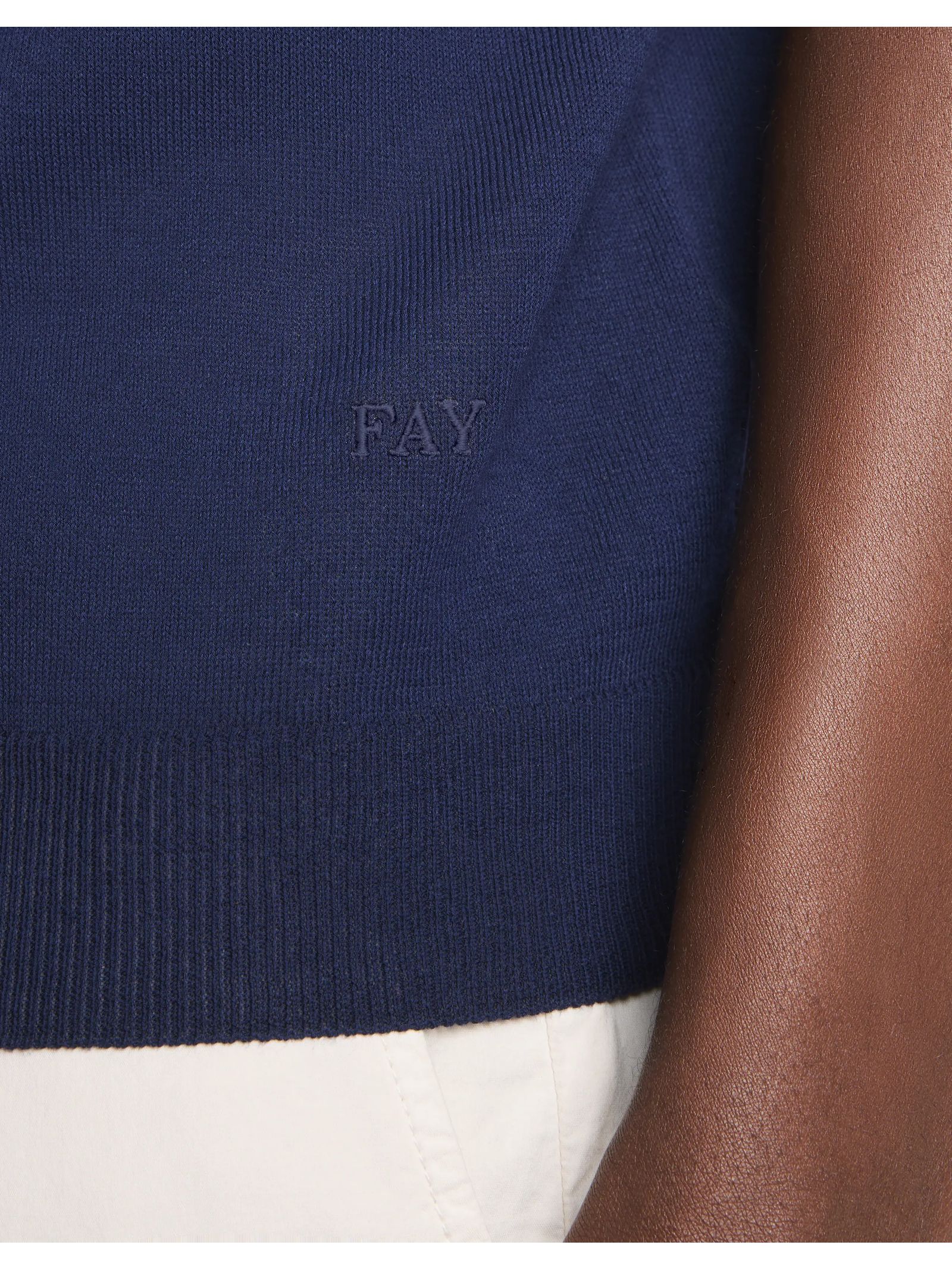 Polo a maniche corte con scollo a V in maglia rasata di cotone, è caratterizzata da profili a contrasto sul fondo manica e dal logo Fay ricamato sul fondo