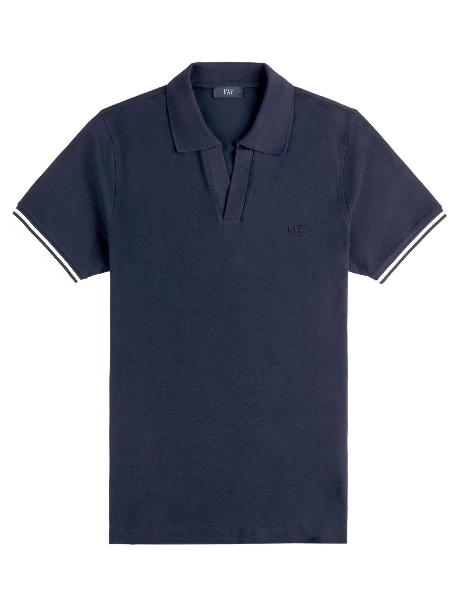 Polo slim fit a manica corta realizzata in piquet stretch, con profili a contrasto. Caratterizzata da un colletto a costine con costruzione double, è arricchita dal logo Fay ricamato sul petto