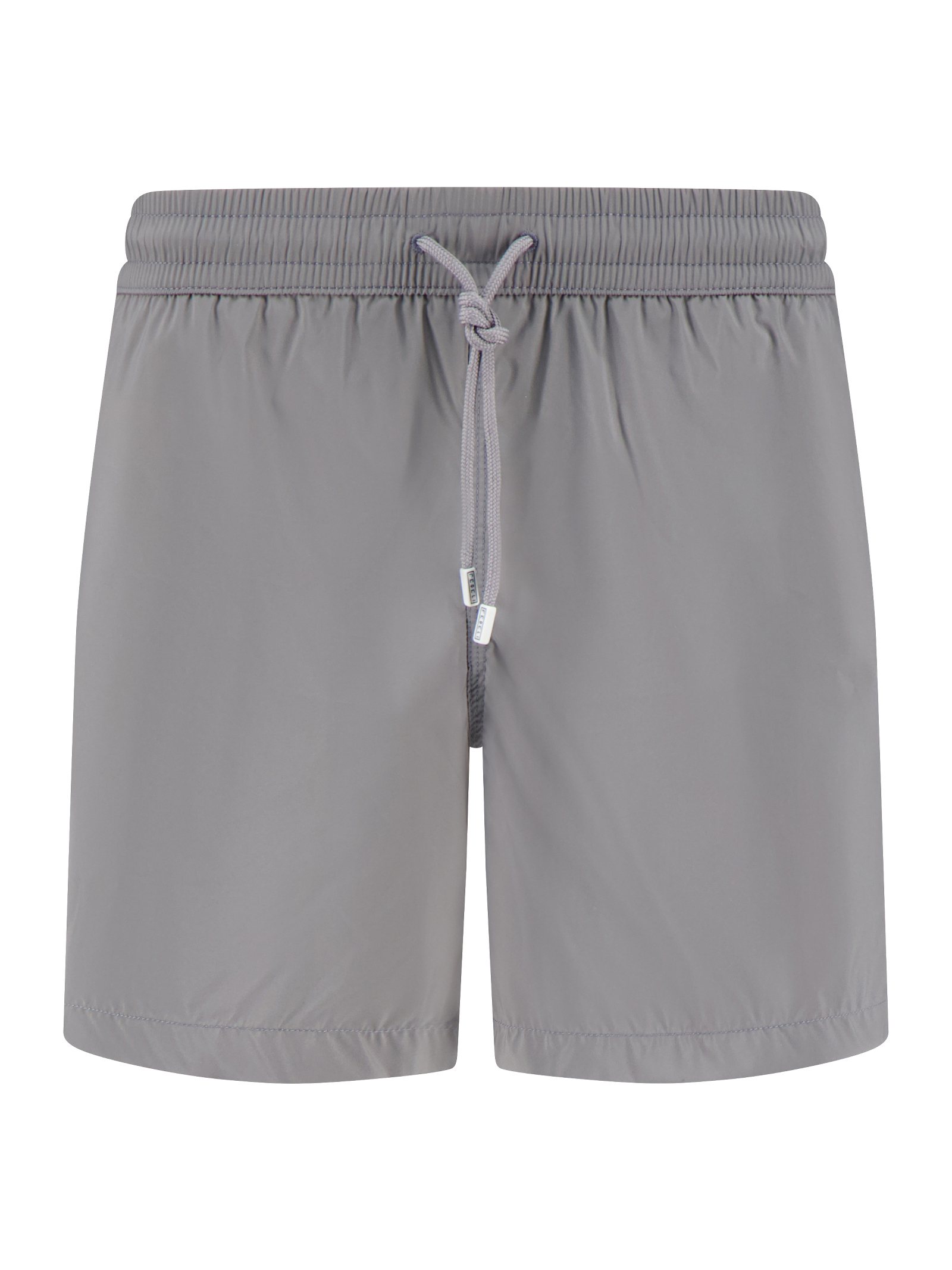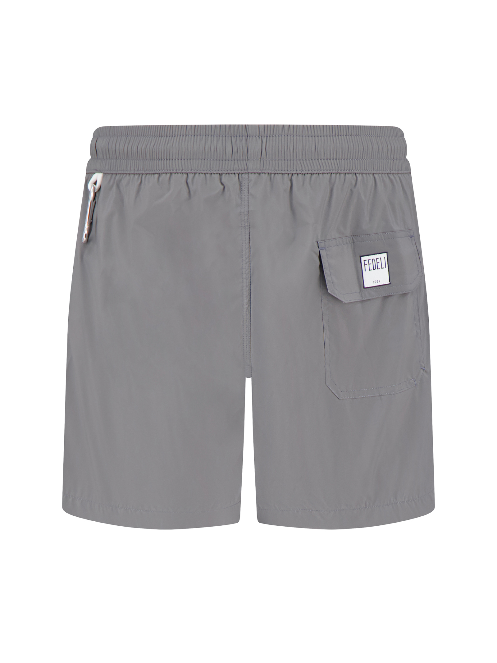 Costume da bagno Madeira grigio, poliestere leggero, cintura elastica con coulisse, cuciture a contrasto, logo del marchio ricamato sulla tasca posteriore