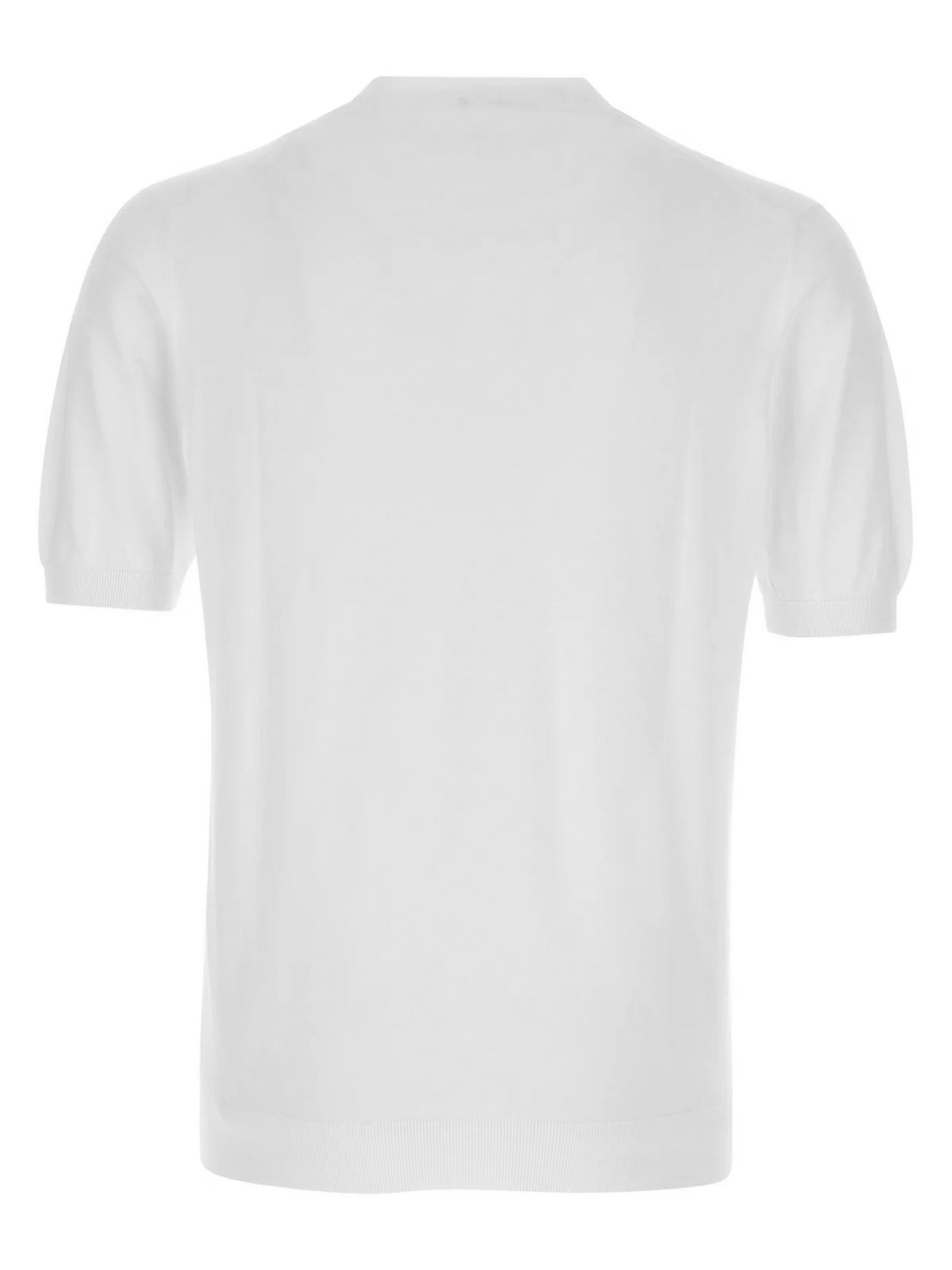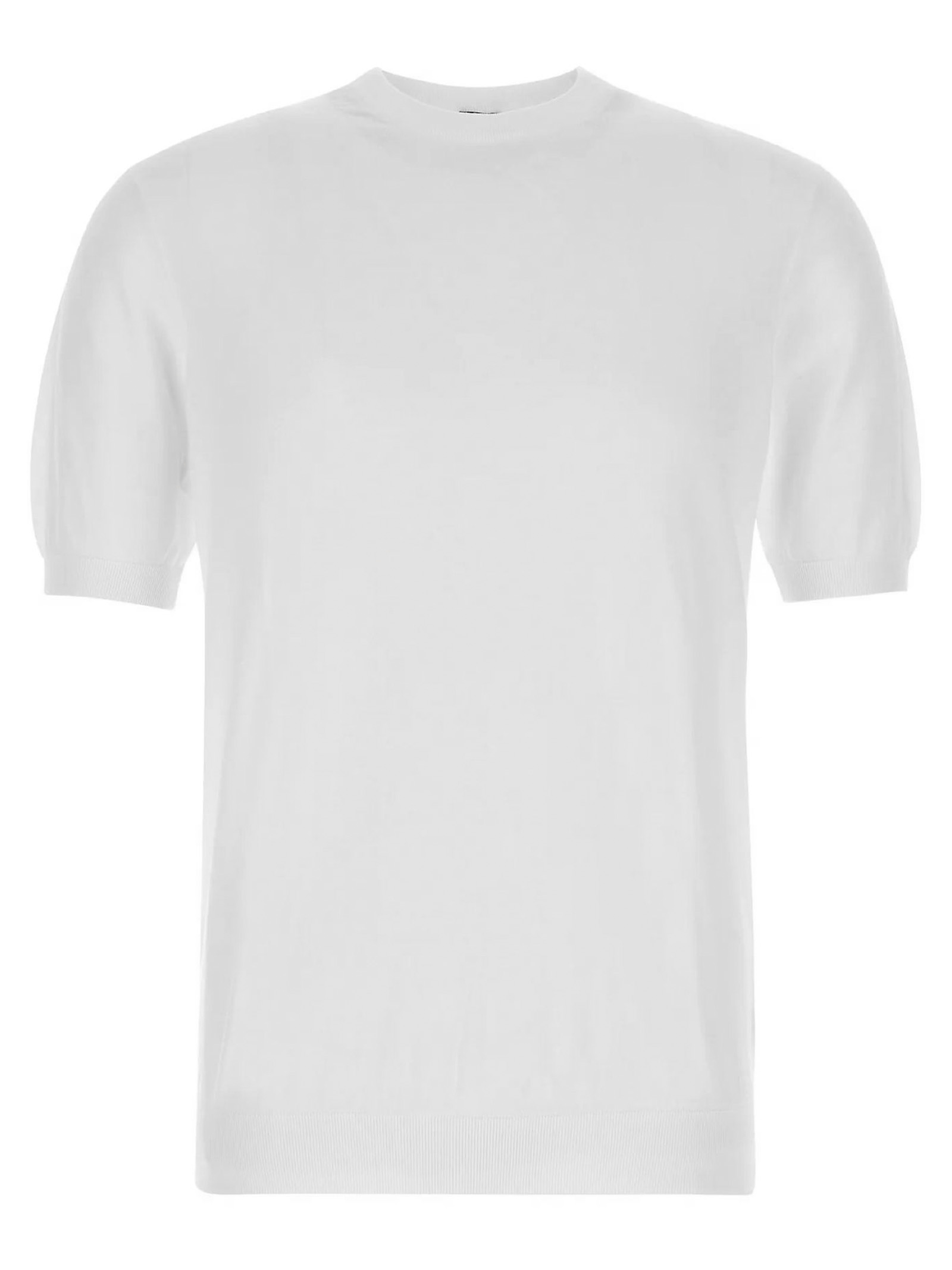 T-shirt in cotone a maglia bianca, con collo rotondo, maniche corte e orlo a costine