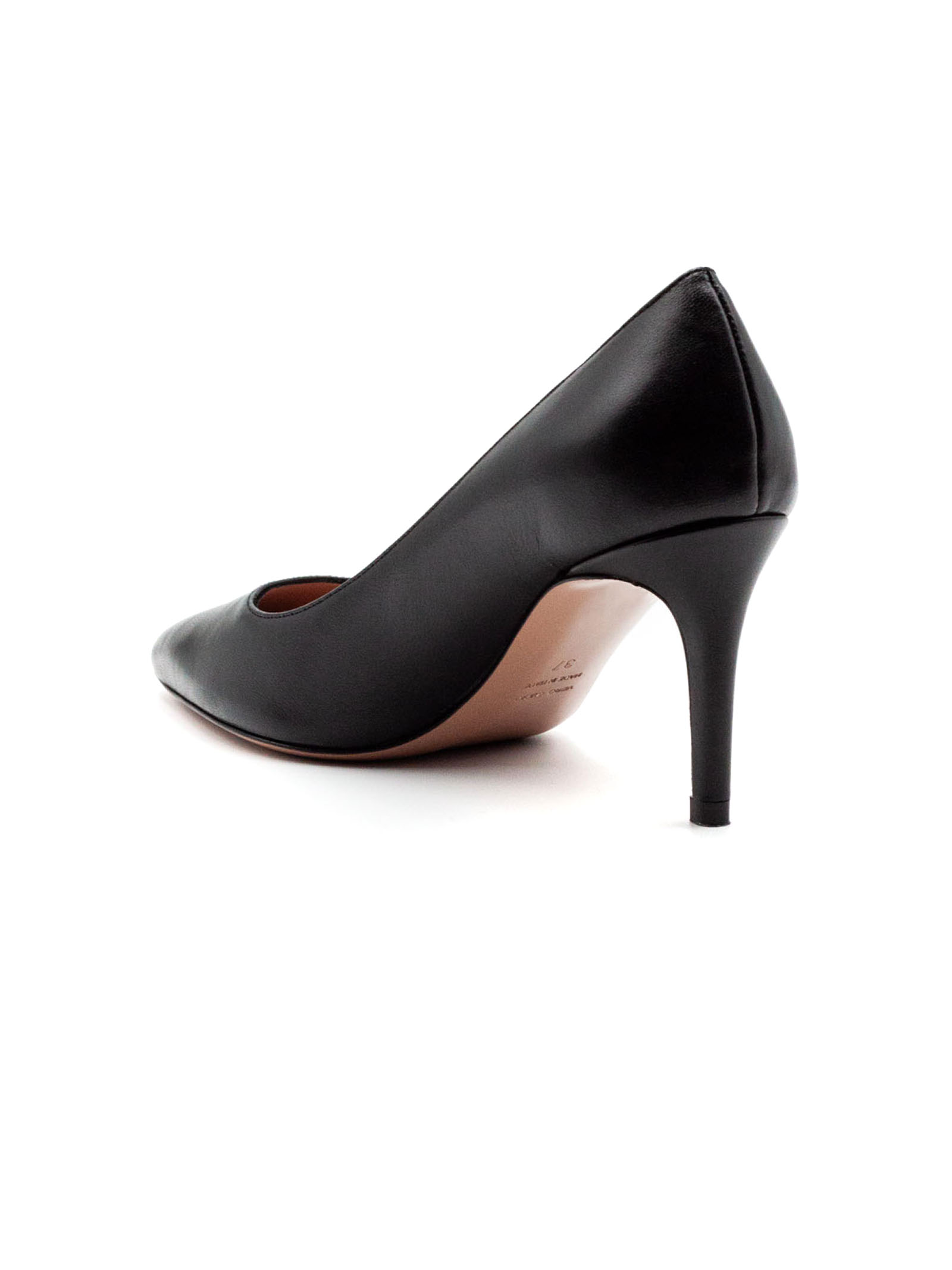 Décolleté Asian in pelle liscia nera, punta affusolata, scollatura regolare, interno in tonalità cuoio, suola sottile in cuoio con logo, tacco alto 8 cm
