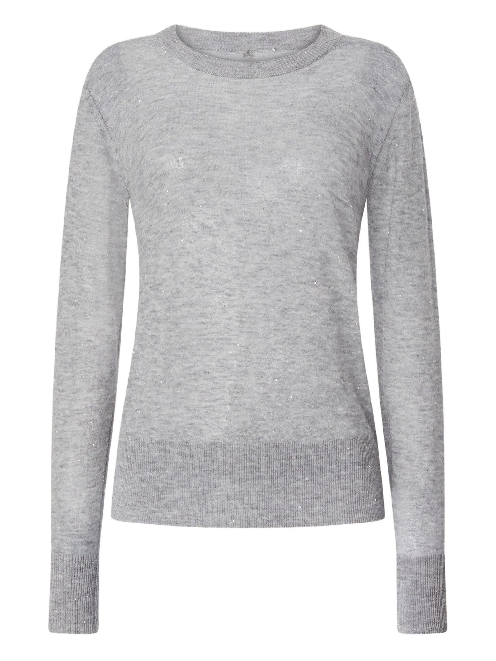 Maglia in lana ultrafine con paillettes, scollo rotondo, maniche lunghe, polsini a coste, lavorazione in rilievo