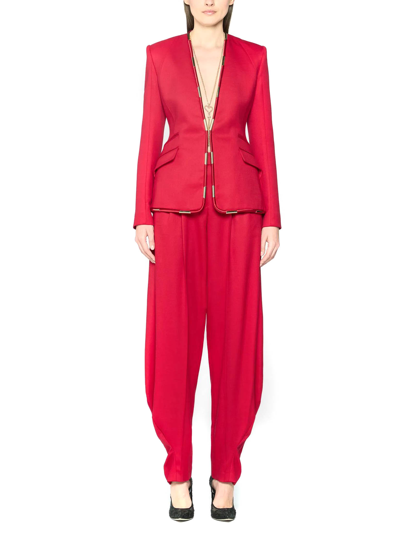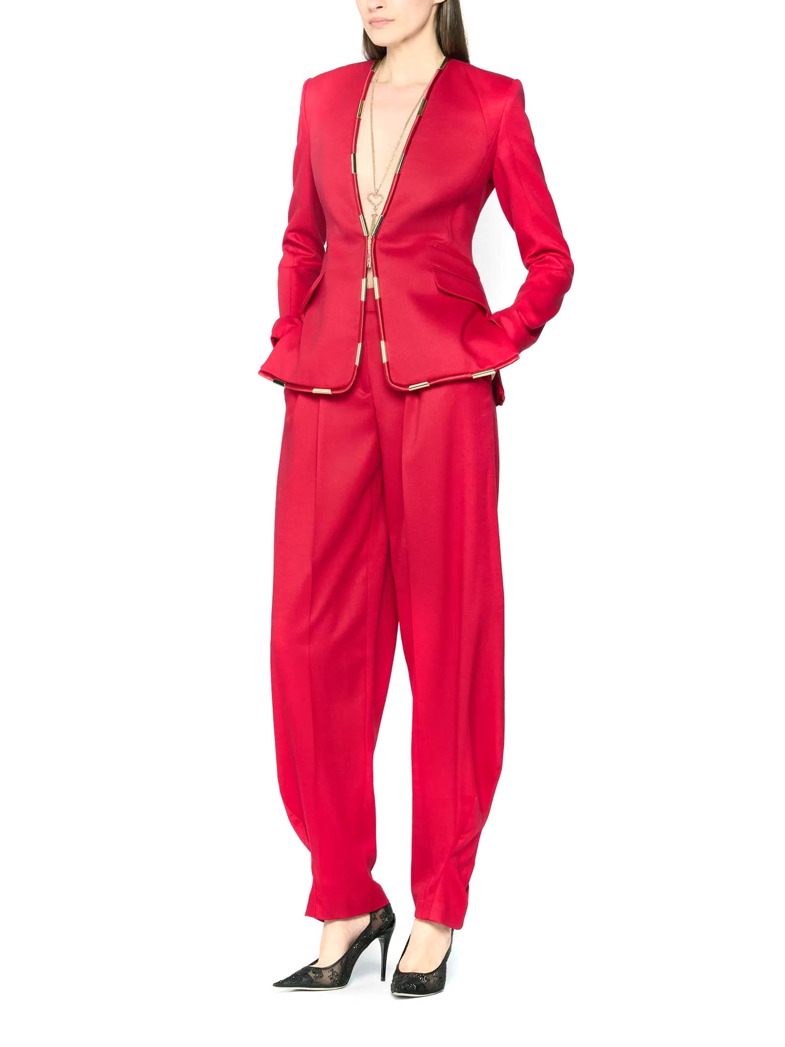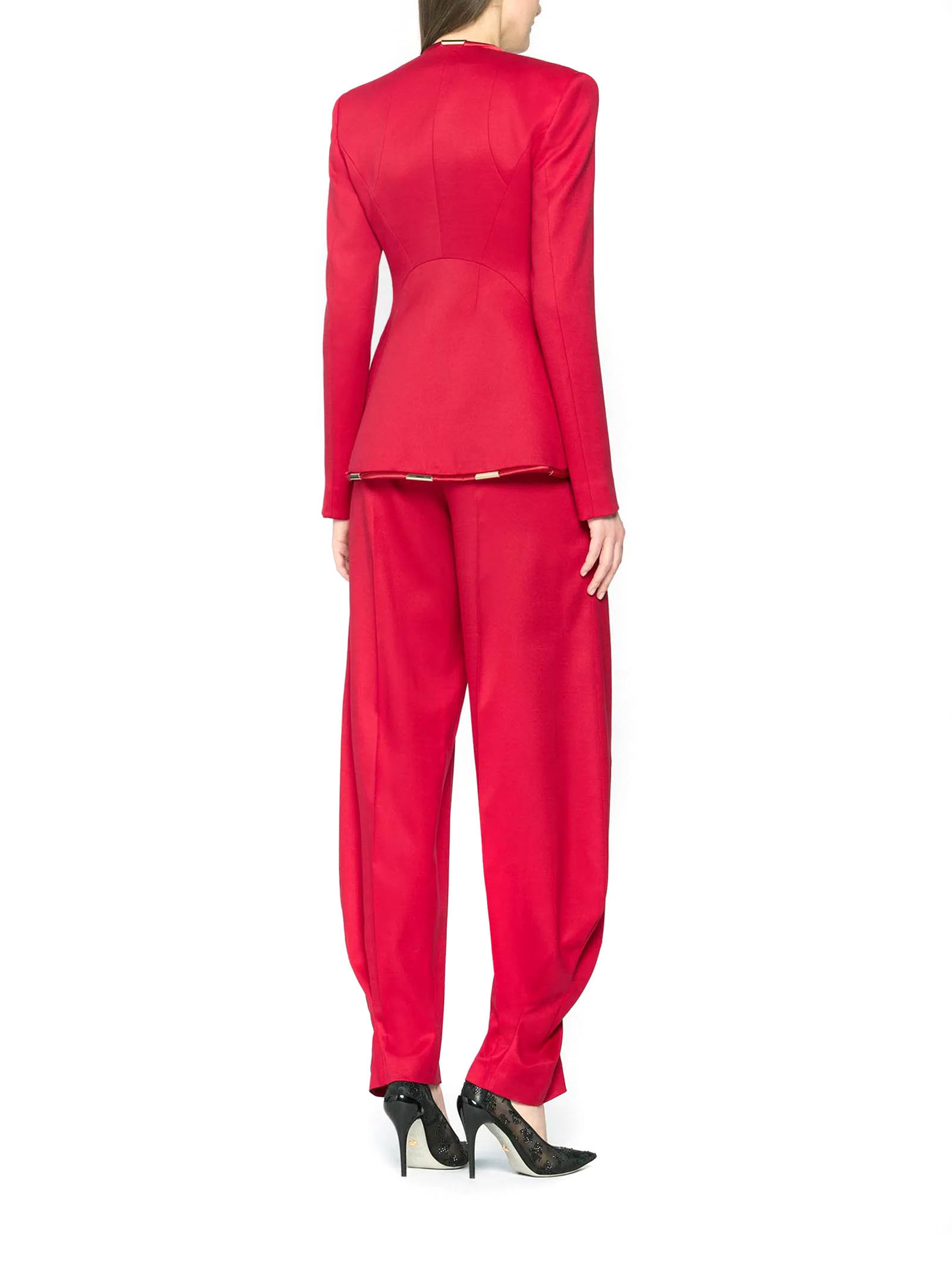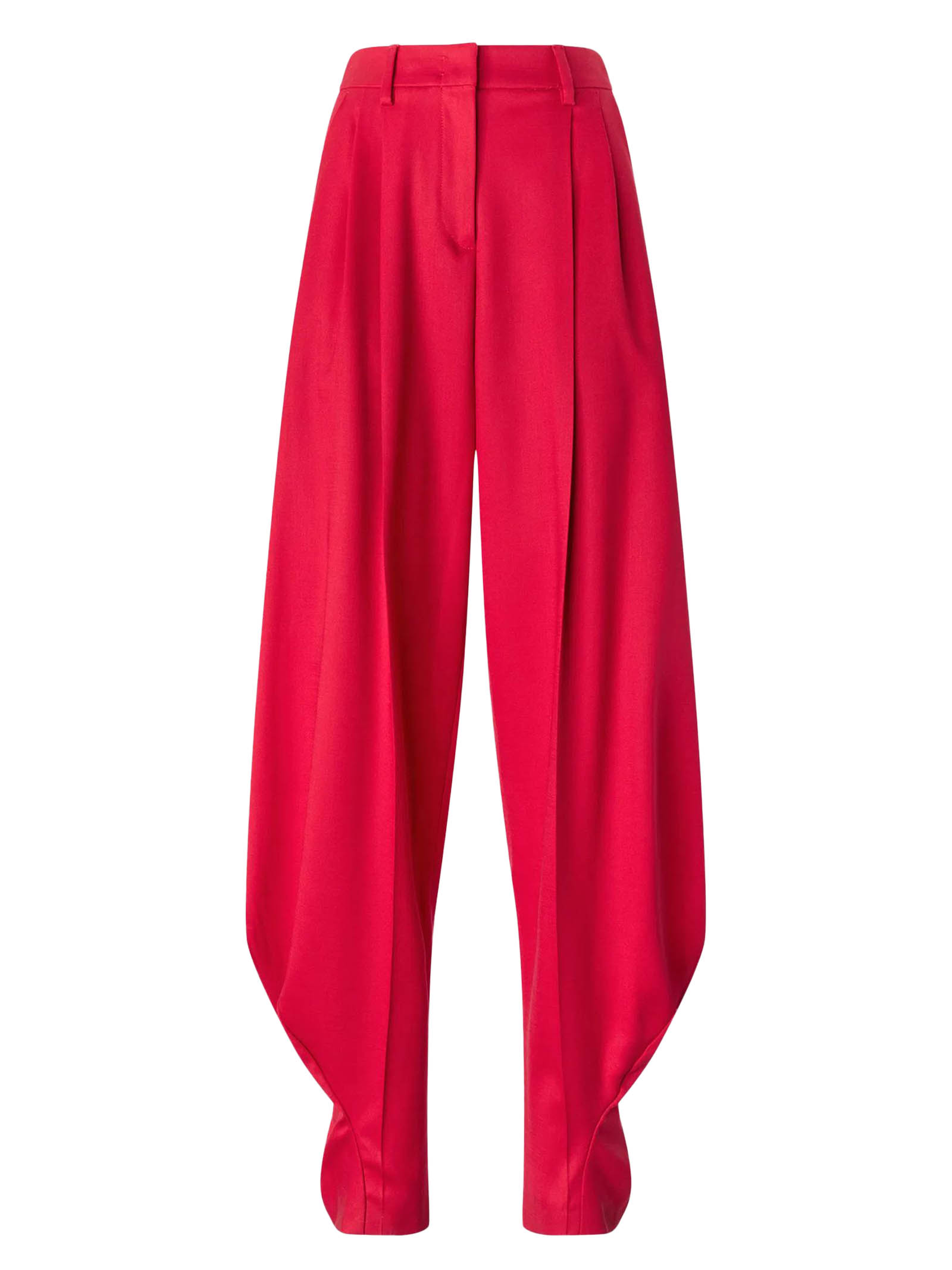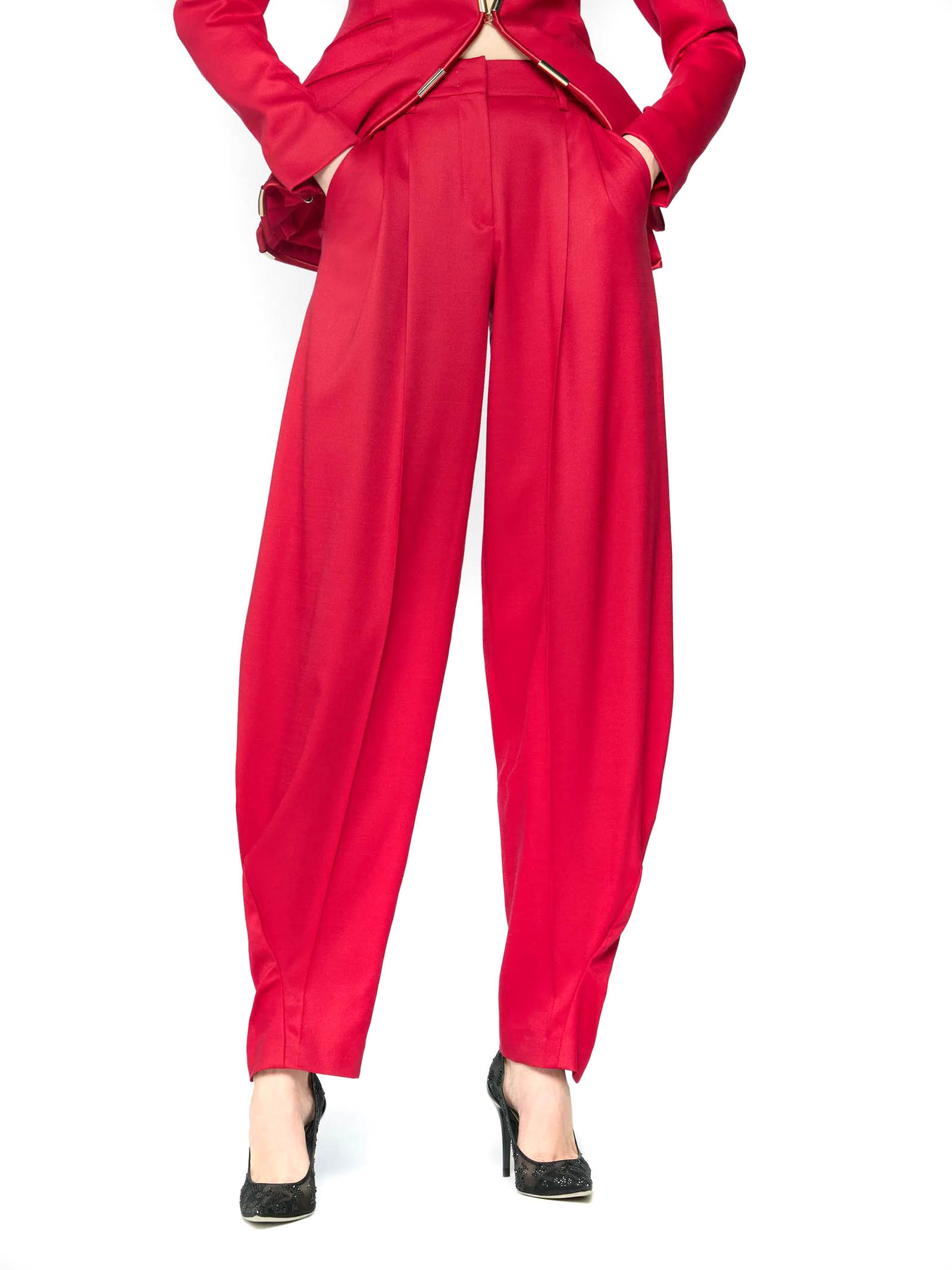 Pantaloni Morbidi Con Pieghe In Misto Lana Fucsia, Vita Alta Con Cinturino, Tasche Alla Francese Sui Fianchi E Tasca A Filetto Sul Retro