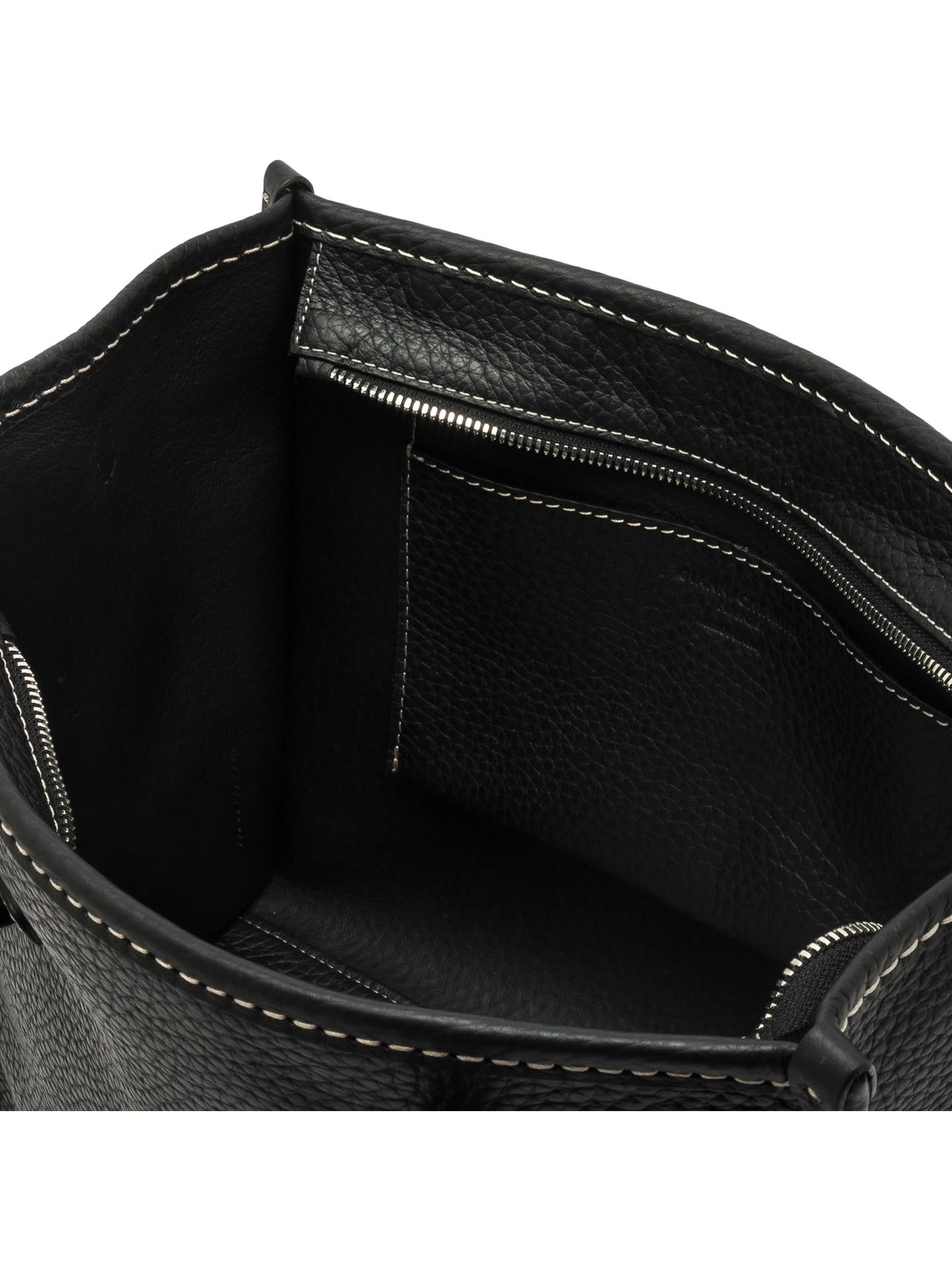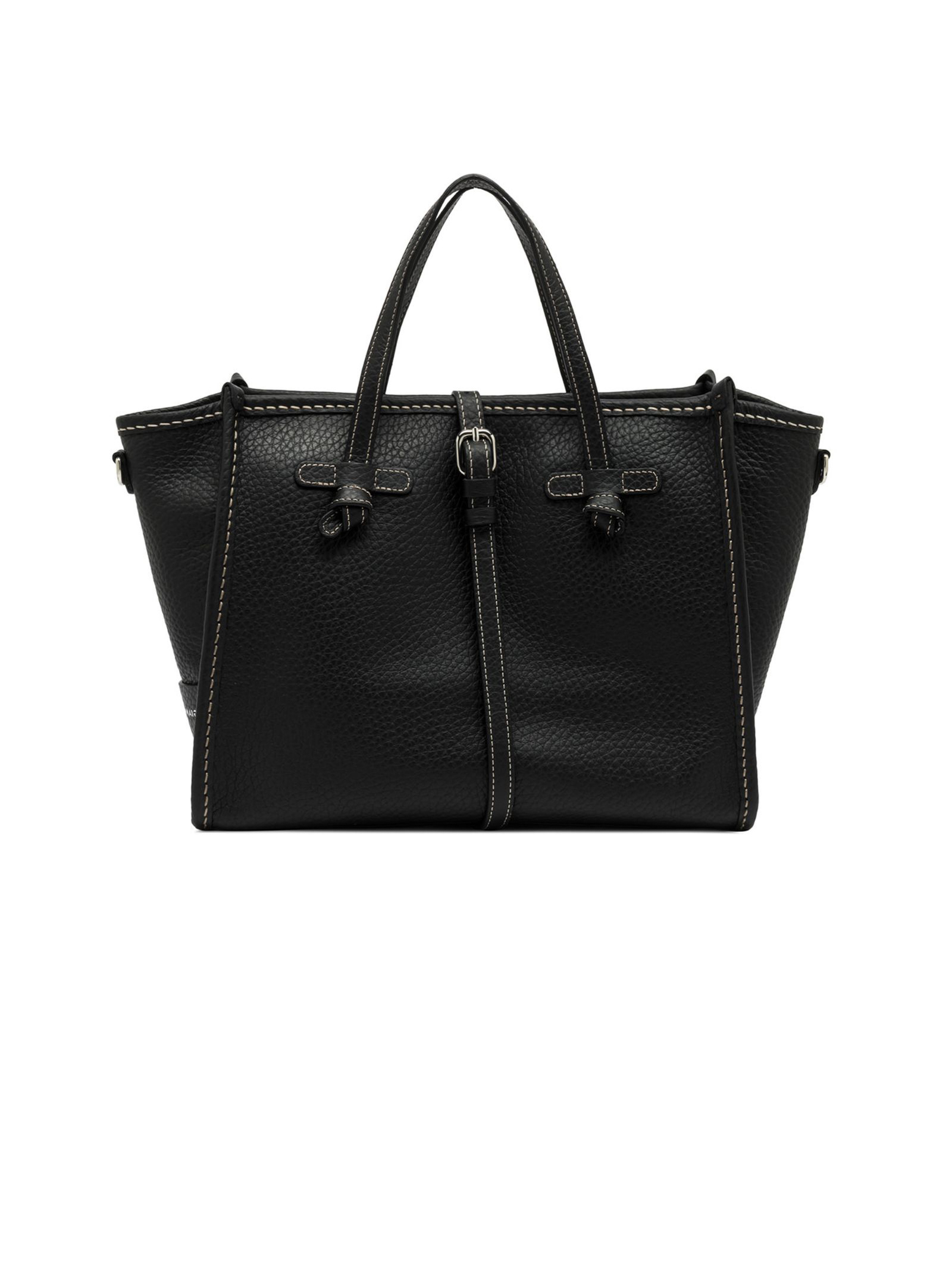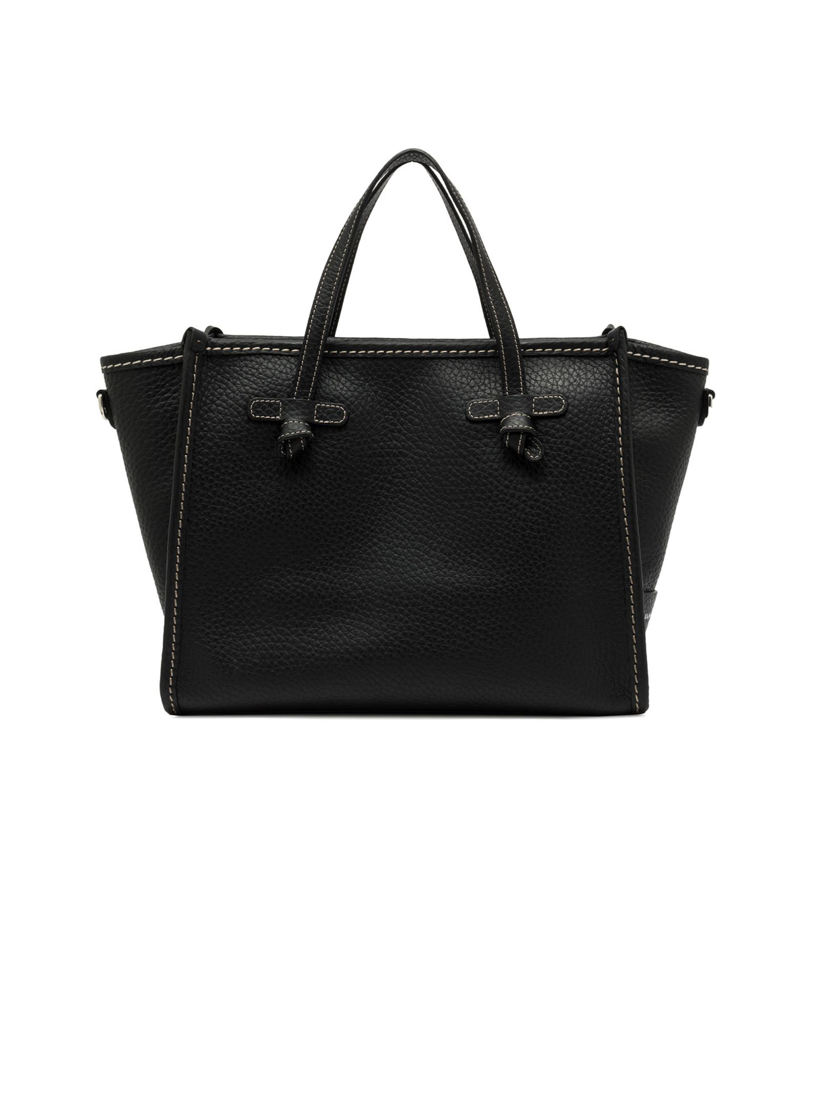 Miss Marcella 32 in pelle double grana maxi nero, profili in pelle, chiusura con zip, può essere portata a mano o indossata crossbody grazie alla sua fine tracolla in pelle coordinata. Dimensioni: 33x25x13 cm
