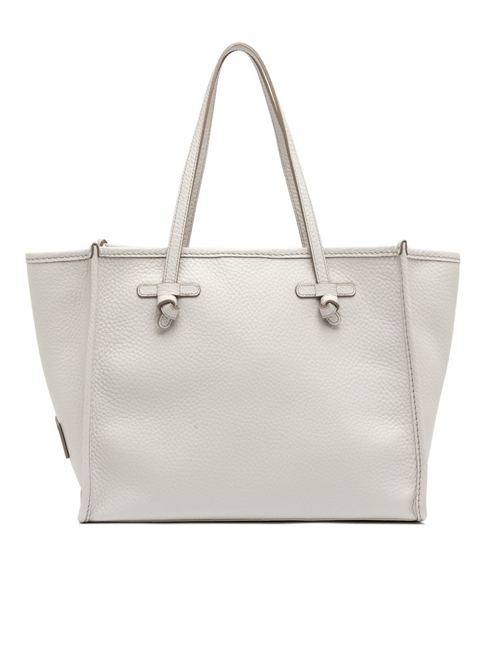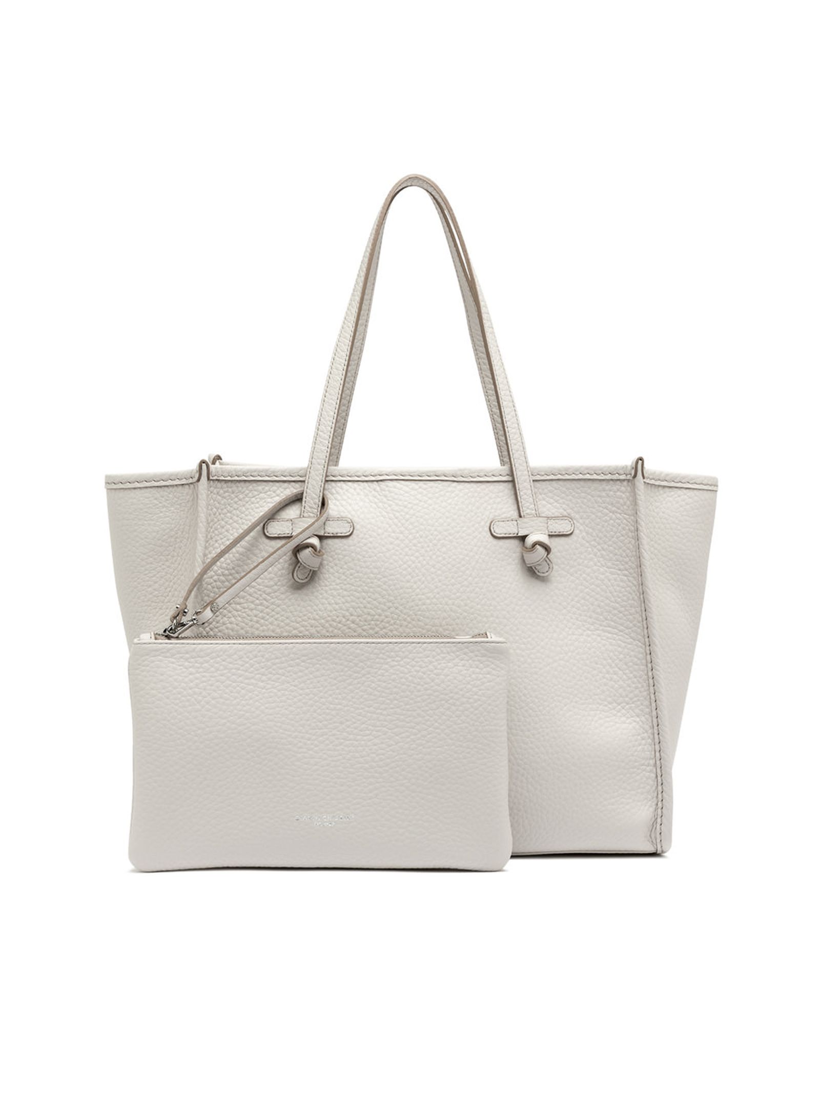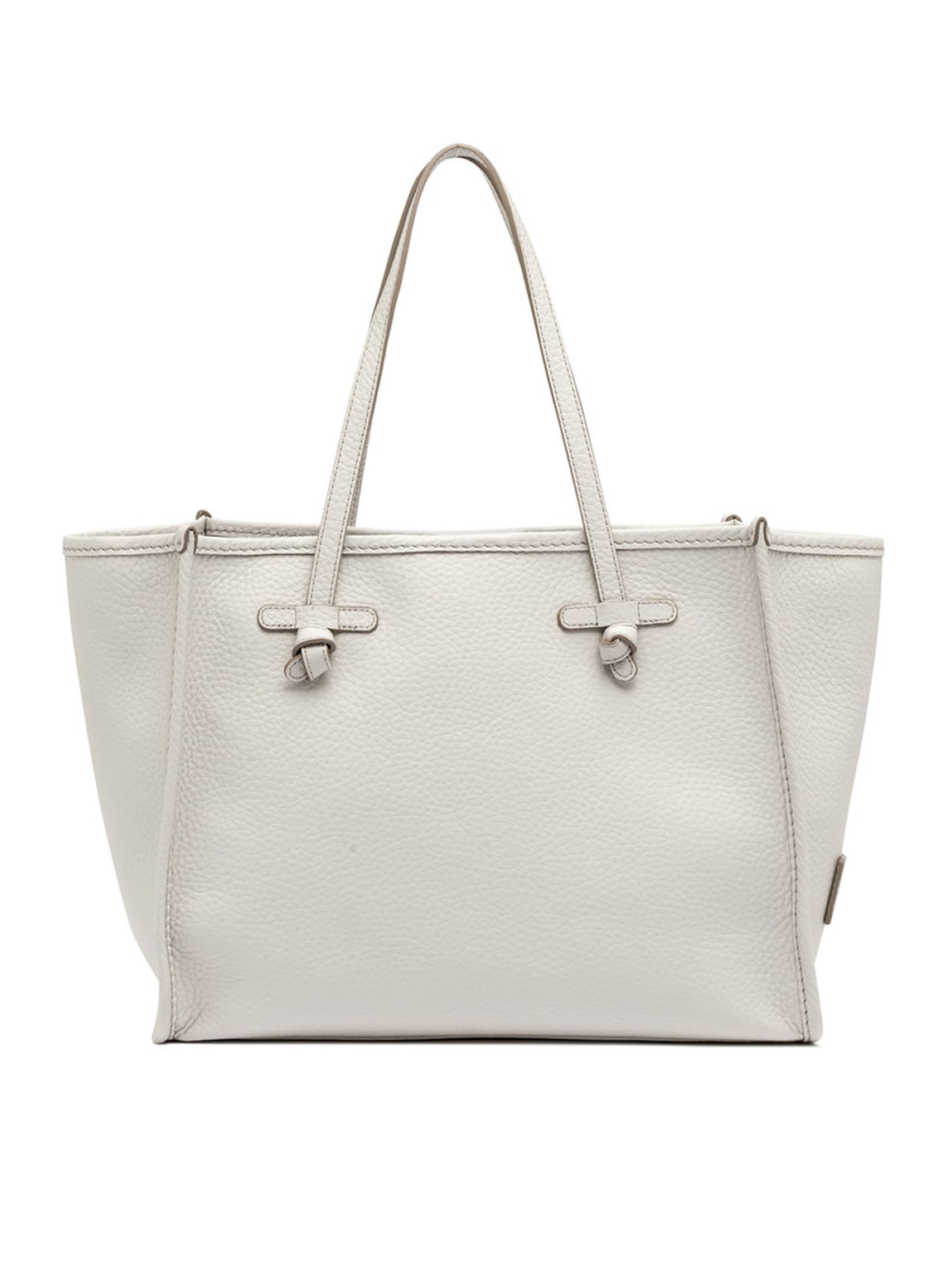 Shopping Marcella in pelle bubble double bianca, profili in pelle, manici in pelle, chiusura tramite magnete, pochette in pelle in tono, dimensioni: 38x31x16 cm