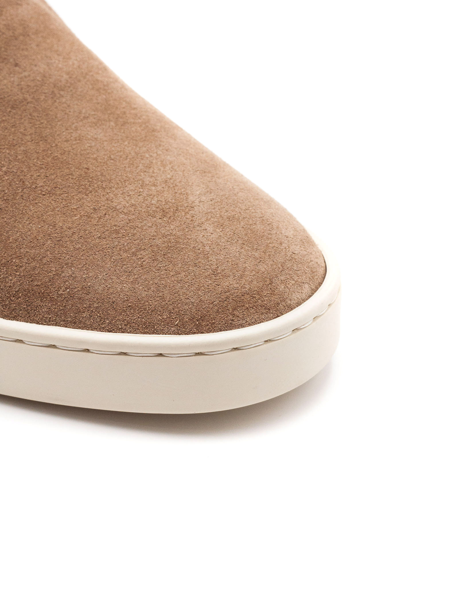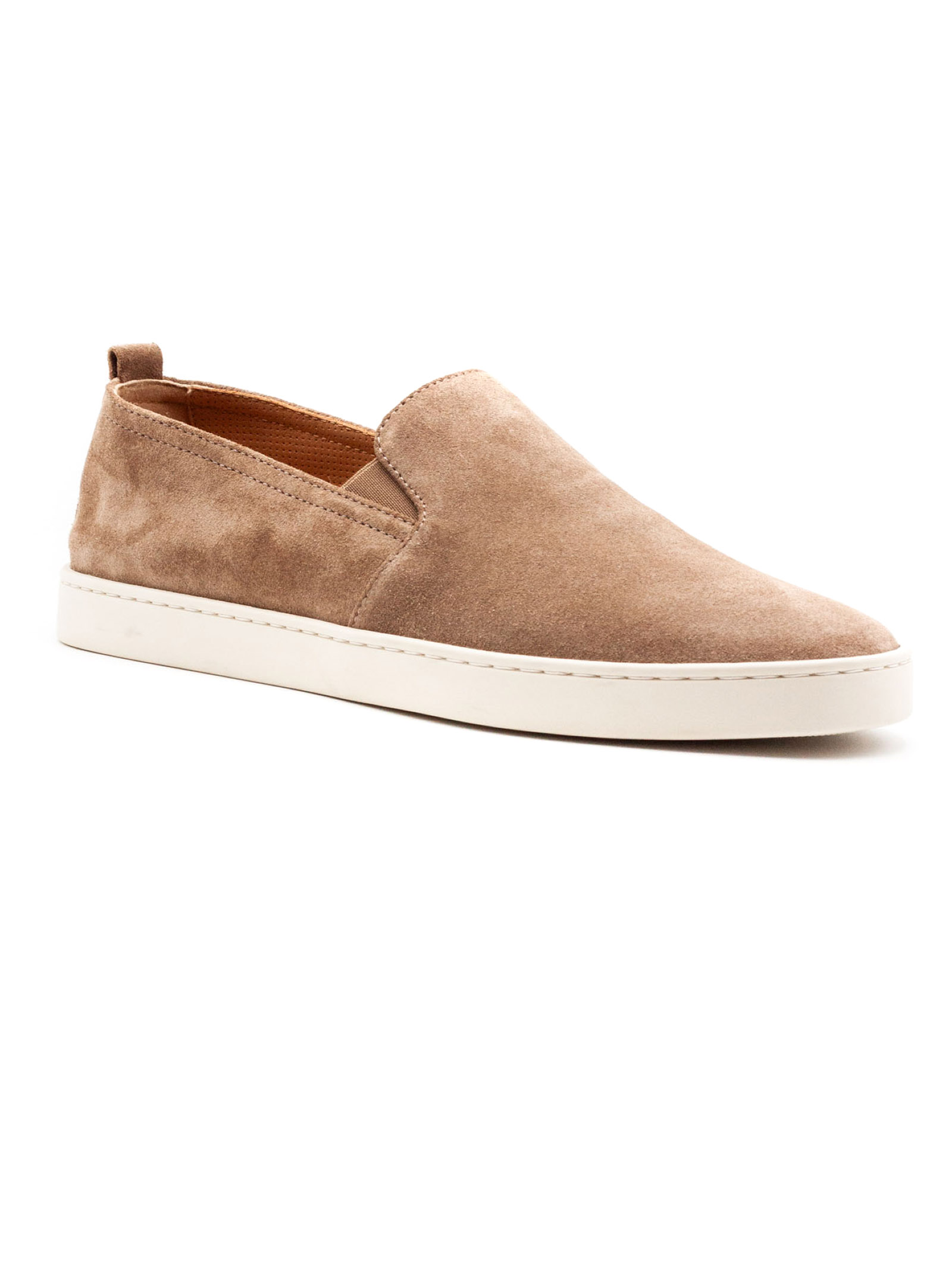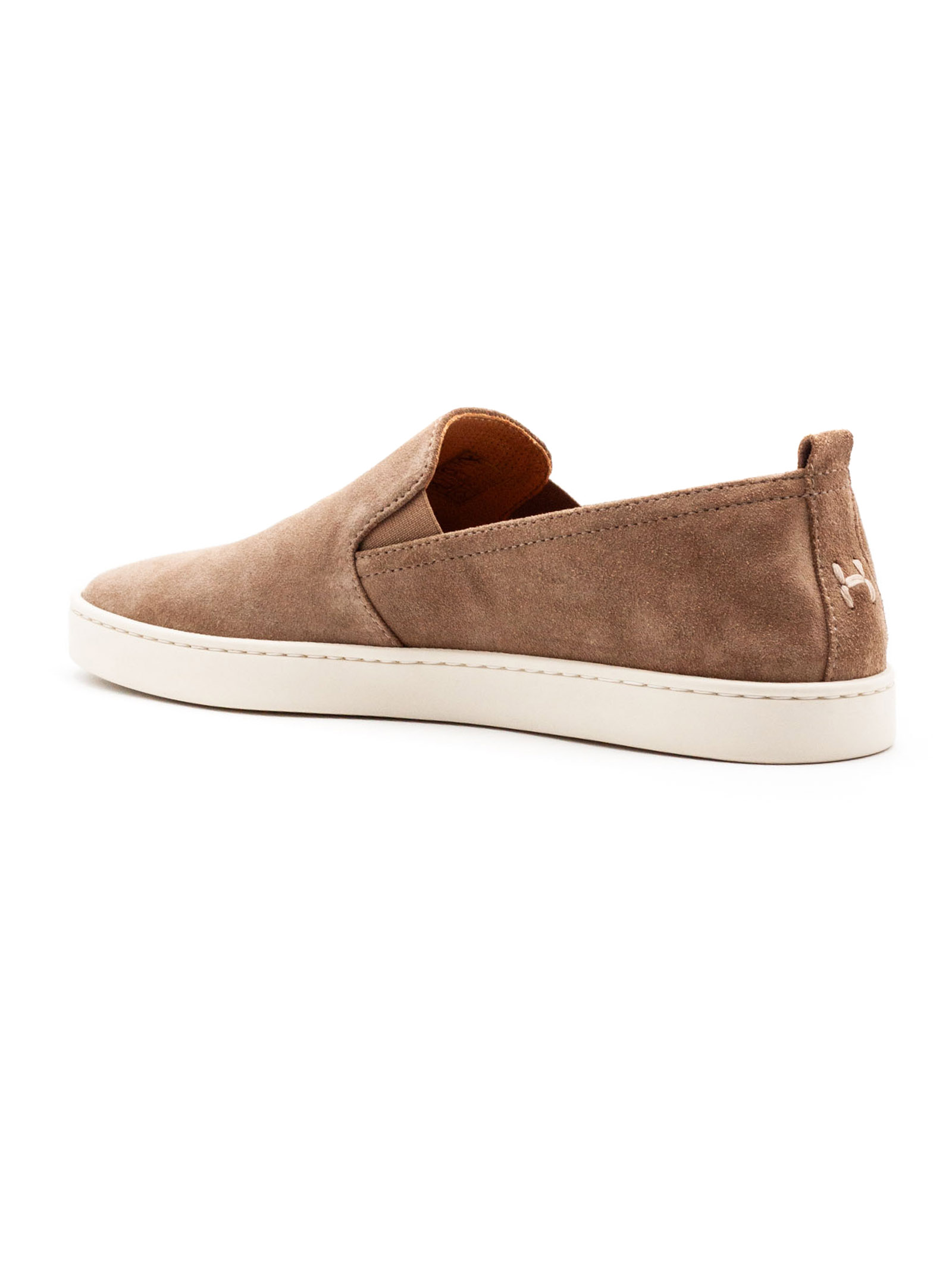 Slip On Rodi in suede beige, ultra flessibile e fodera traforata, suola in gomma, dettaglio ricamo H sul retro