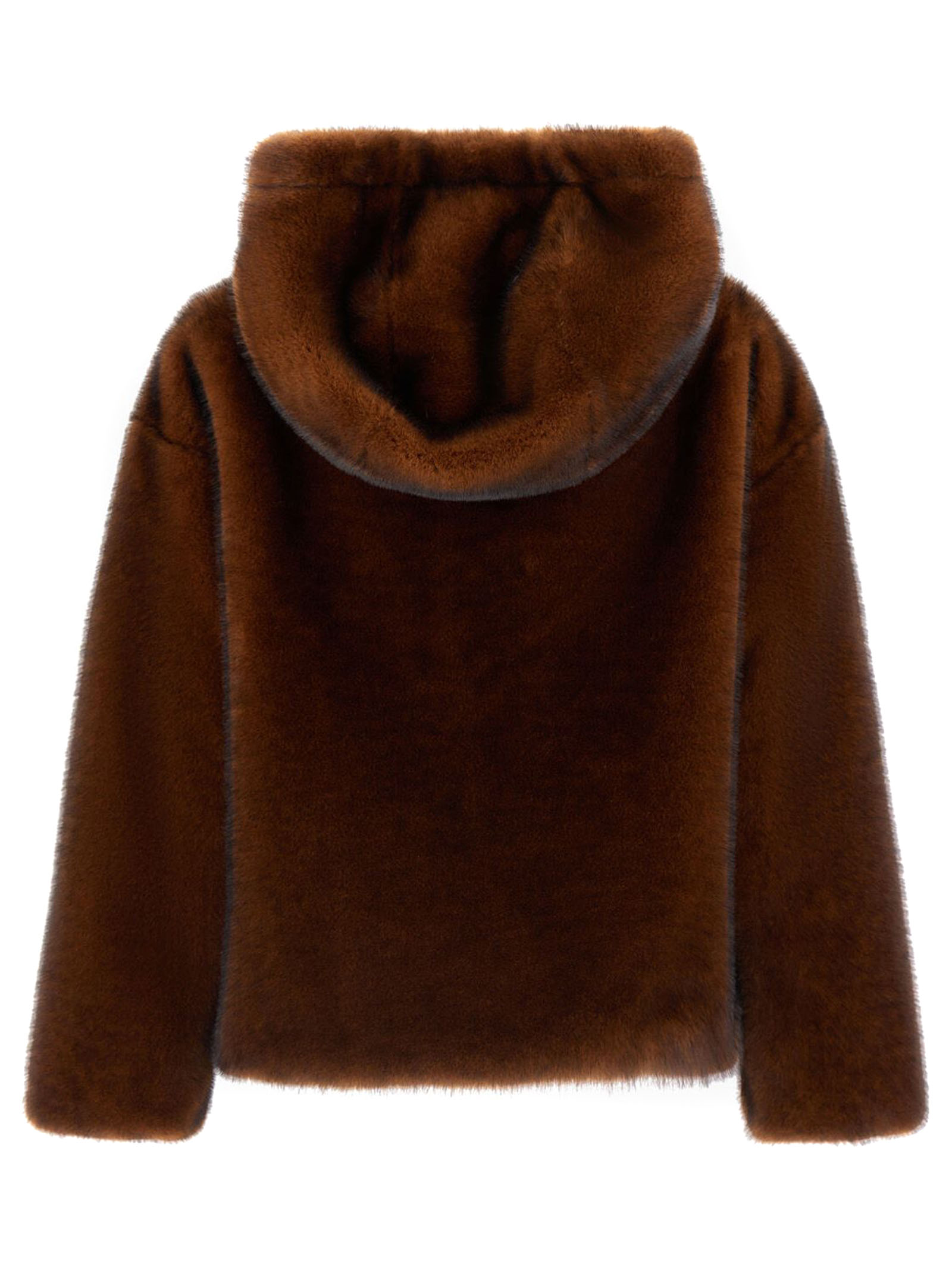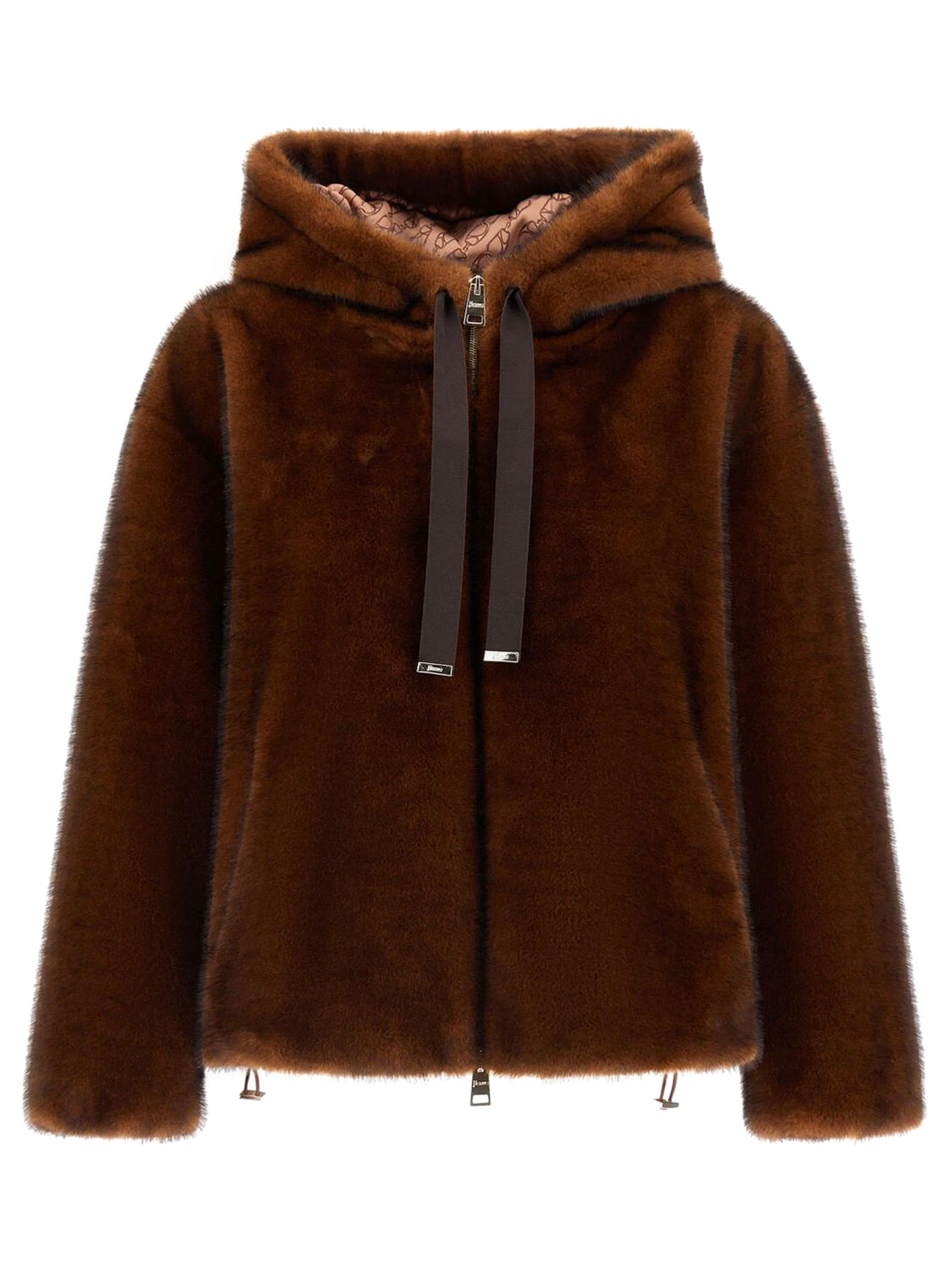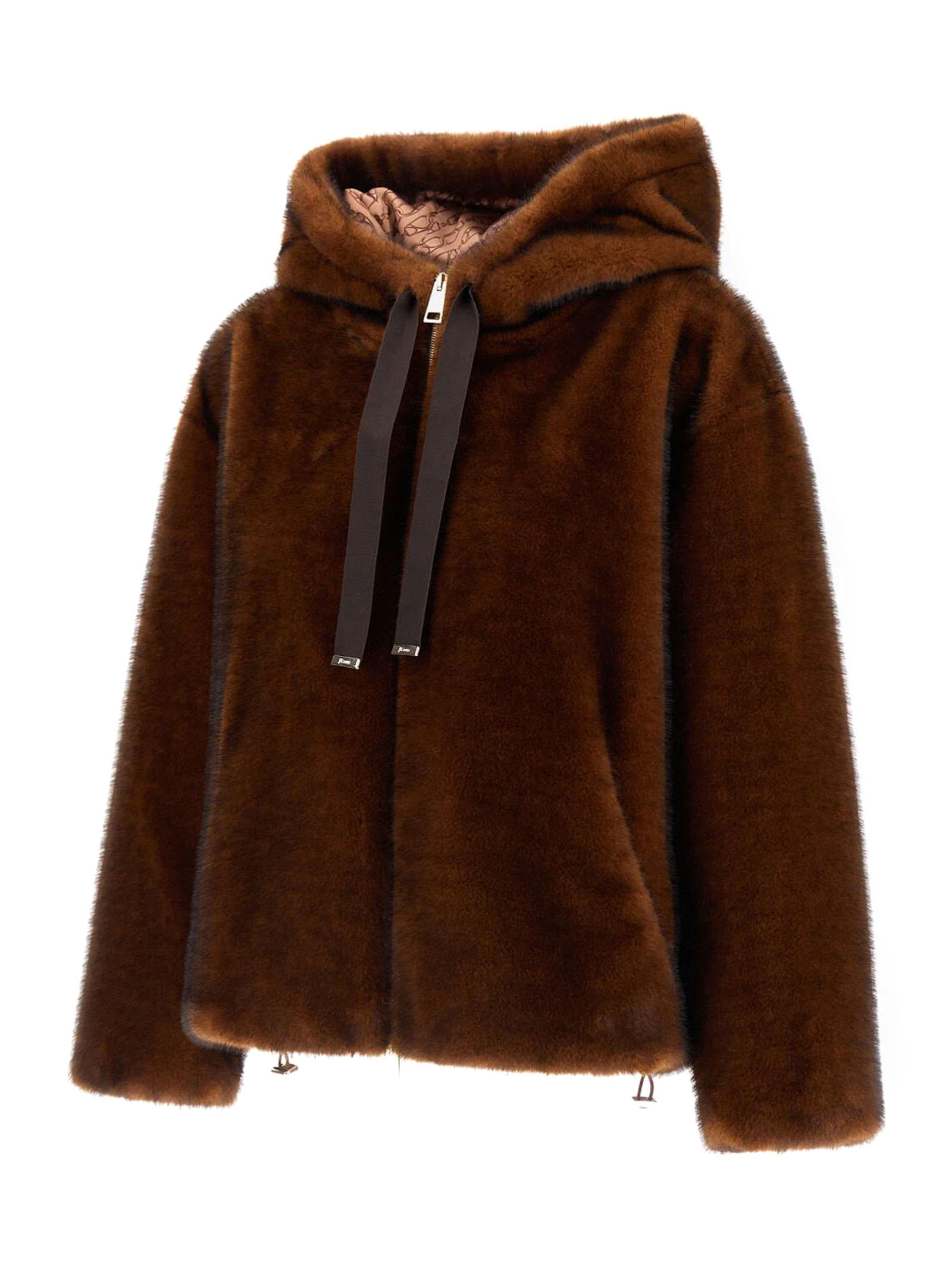 Bomber in faux fur effetto visone rasato mélange, Vestibilità regolare, Cappuccio con coulisse in gros grain, Tasche laterali a filetto, Coulisse laterali al fondo, Chiusura con zip a doppio cursore, Foderato