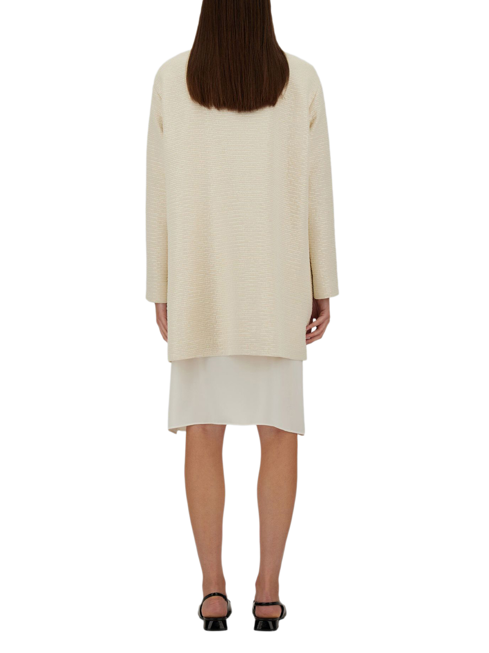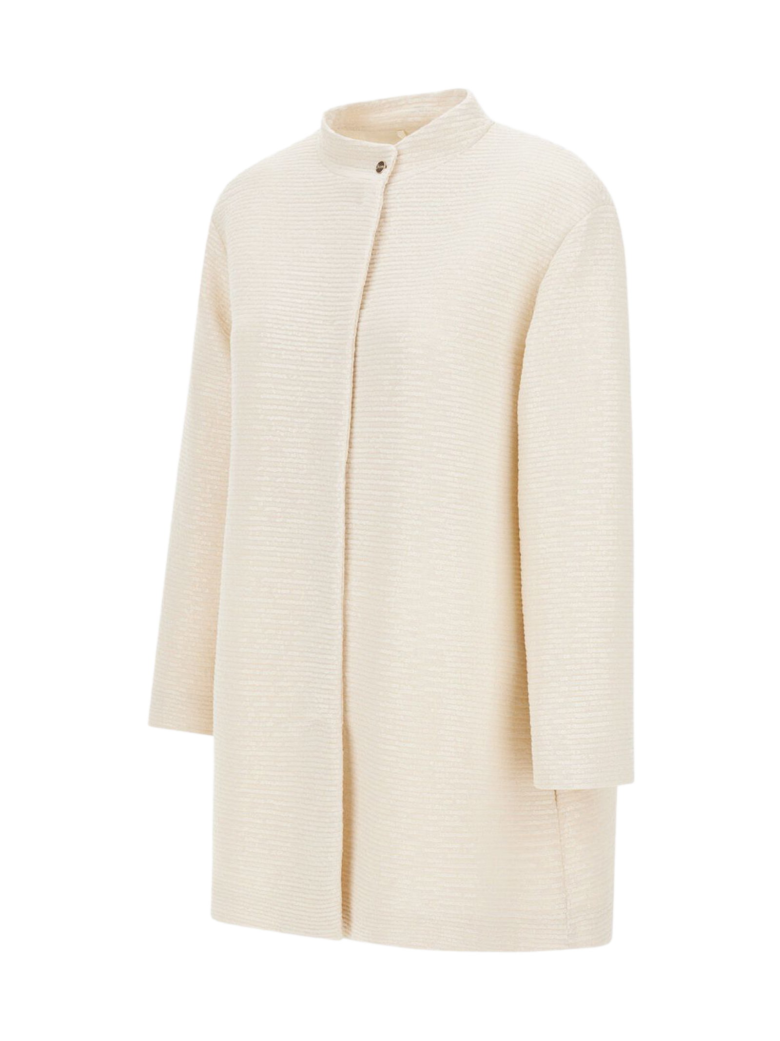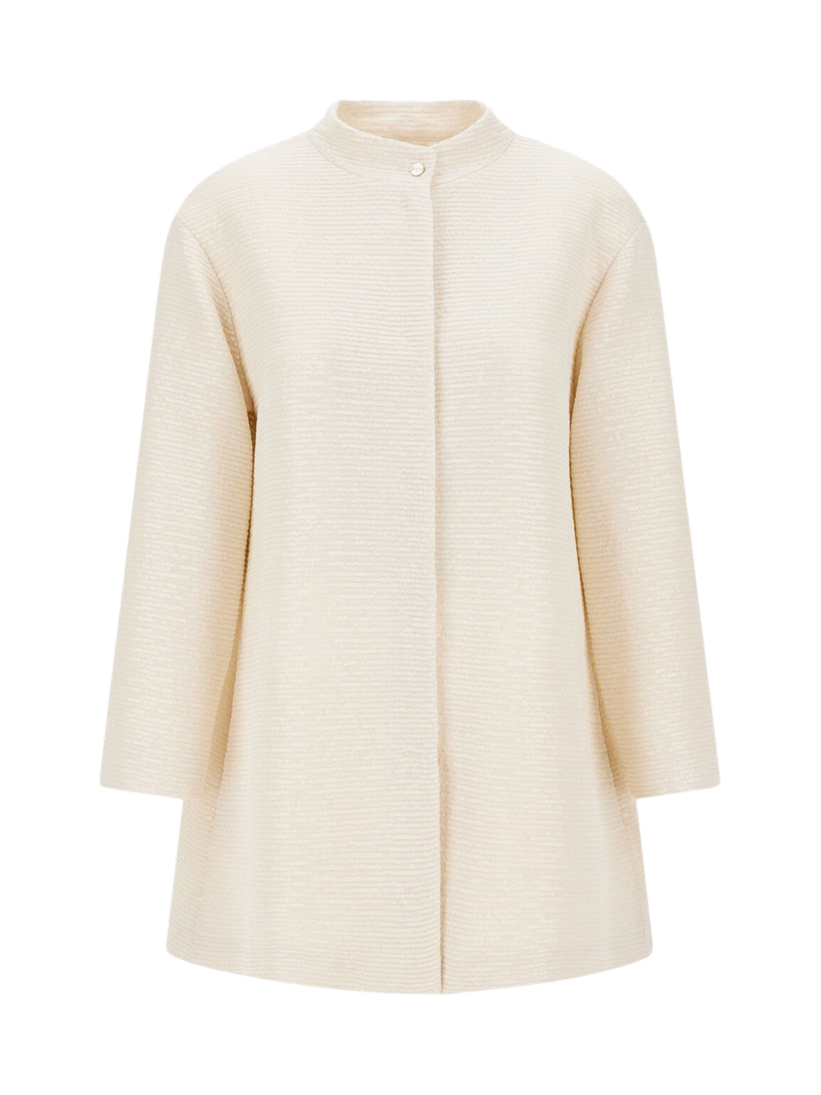 Cappotto In Veiled Sequins Avorio, Vestibilità relaxed, Colletto alla coreana, Maniche lunghe, Tasche a filetto, Logo Herno in metallo sul retro, Chiusura coperta con bottoni a pressione, Foderato