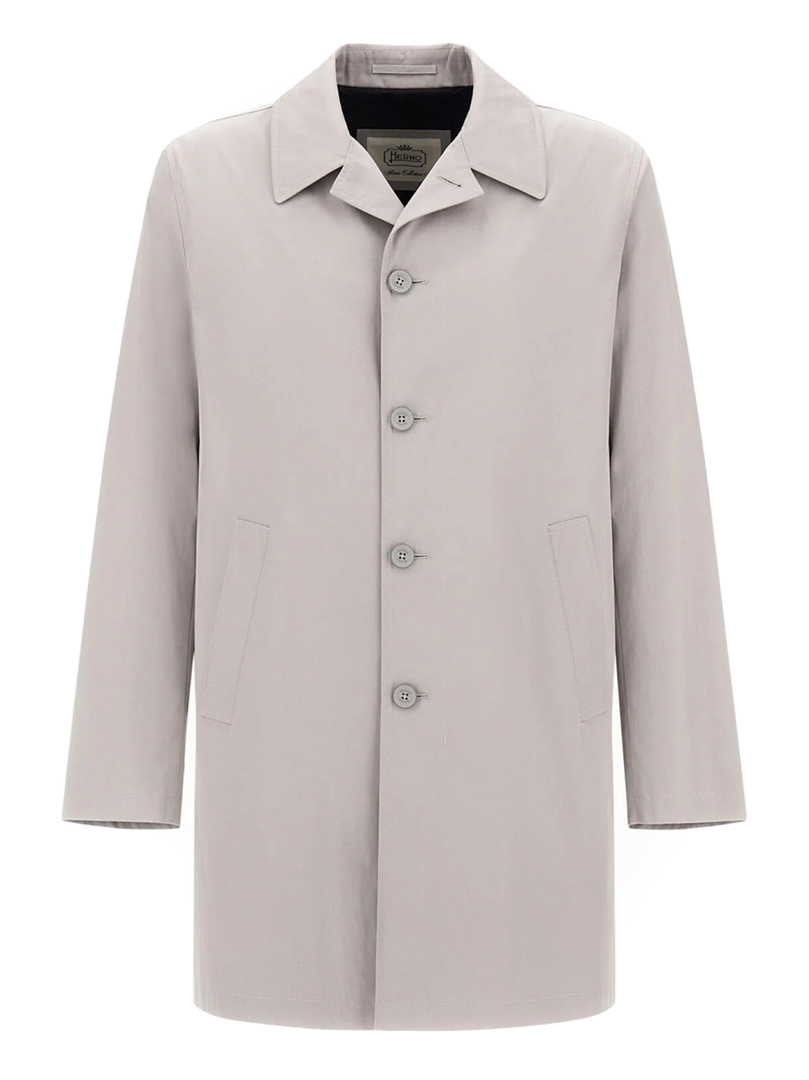 Impermeabile in gabardina di cotone tinto e trattato con finissaggio antigoccia, Vestibilità regolare, Collo a camicia, Maniche lunghe, Tasche a filetto, Spacco sul retro, Logo Herno in metallo sul retro, Chiusura con bottoni, Foderato