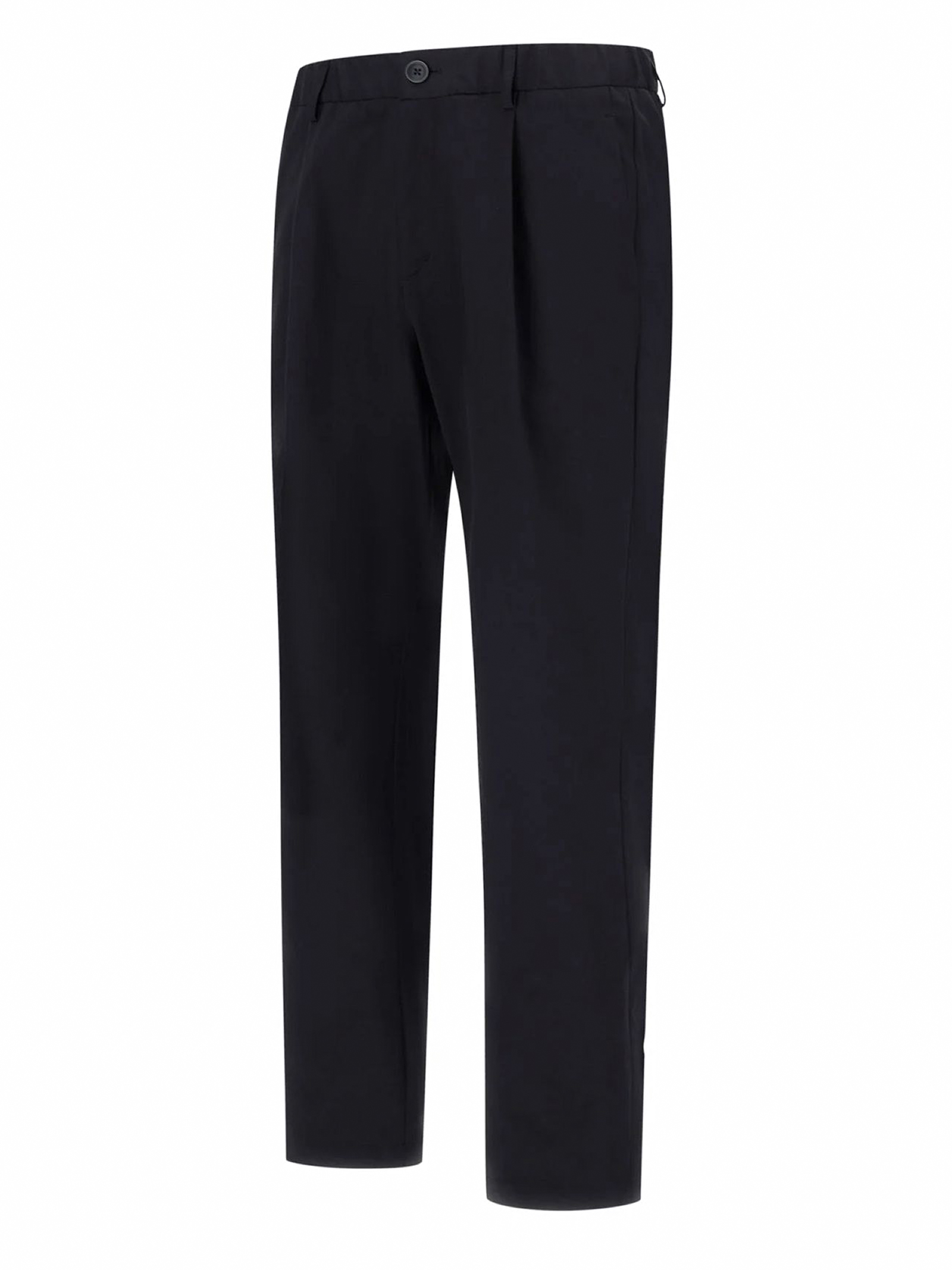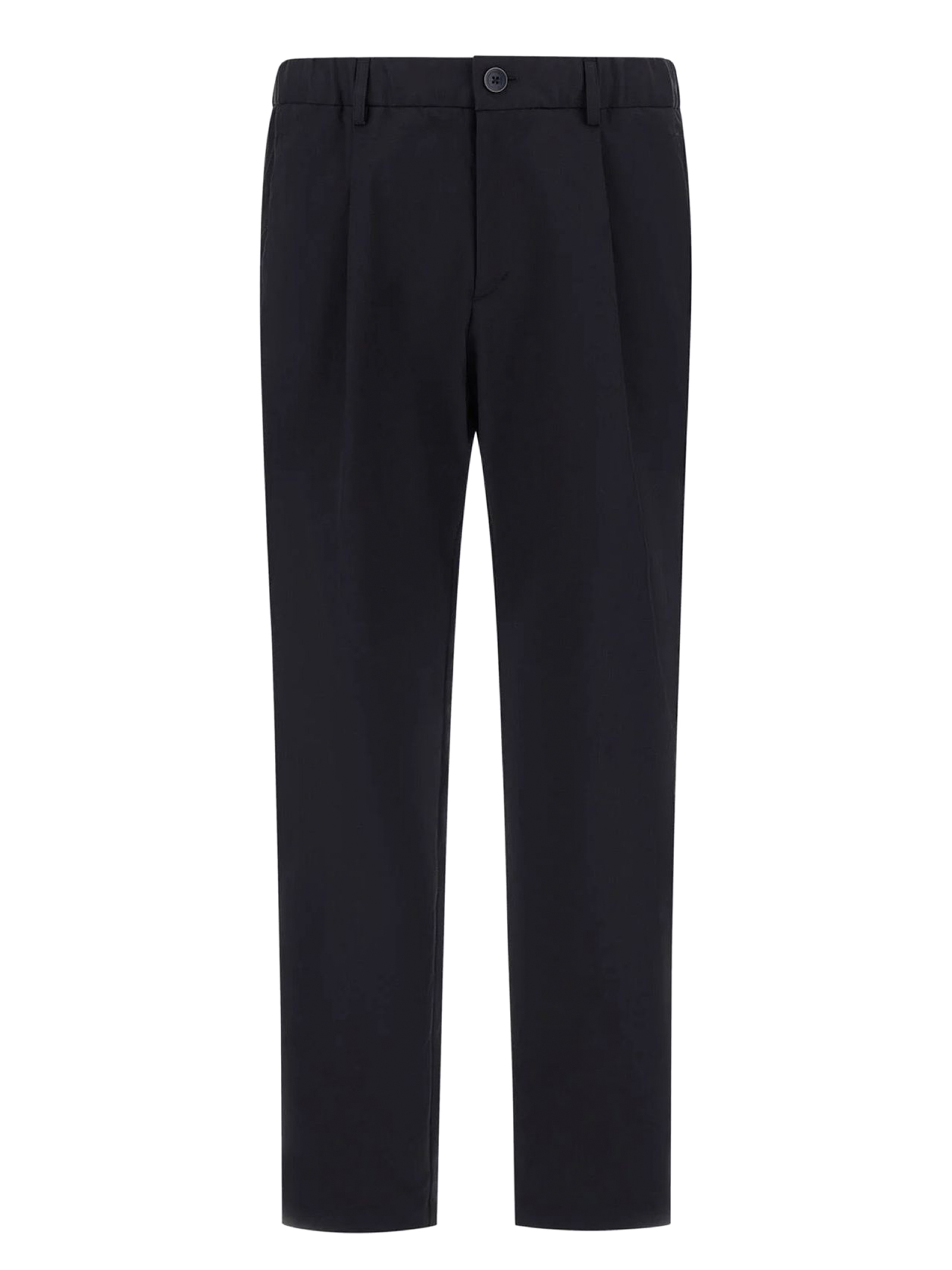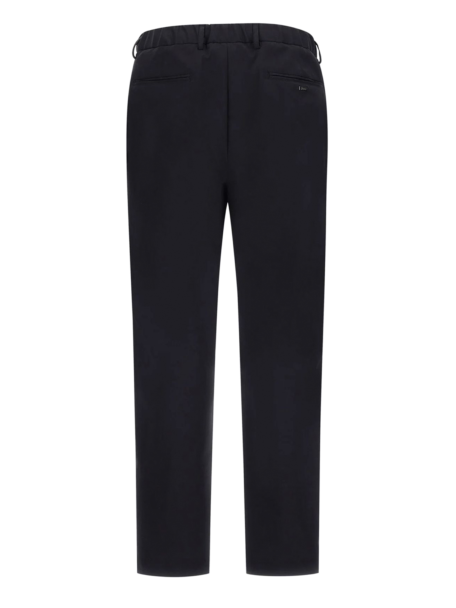 Pantaloni Con Coulisse In Cotton Feel Blu, Vestibilità regolare, Inserto elastico in via con coulisse, Pinces e piega stirata, Tasche sui fianchi, Tasche sul retro, Logo Herno in metallo sul retro, Chiusura con bottone e zip nascosta