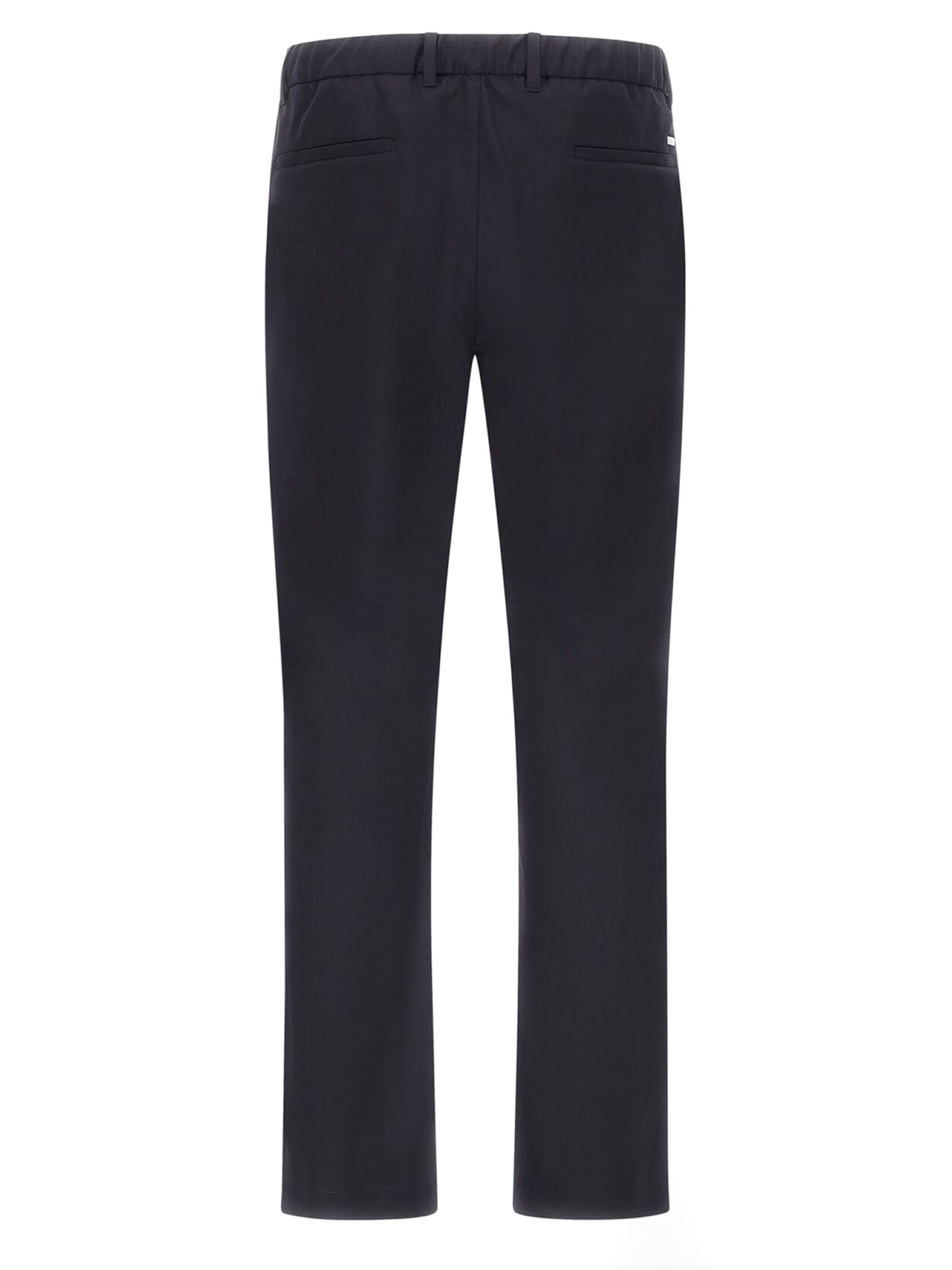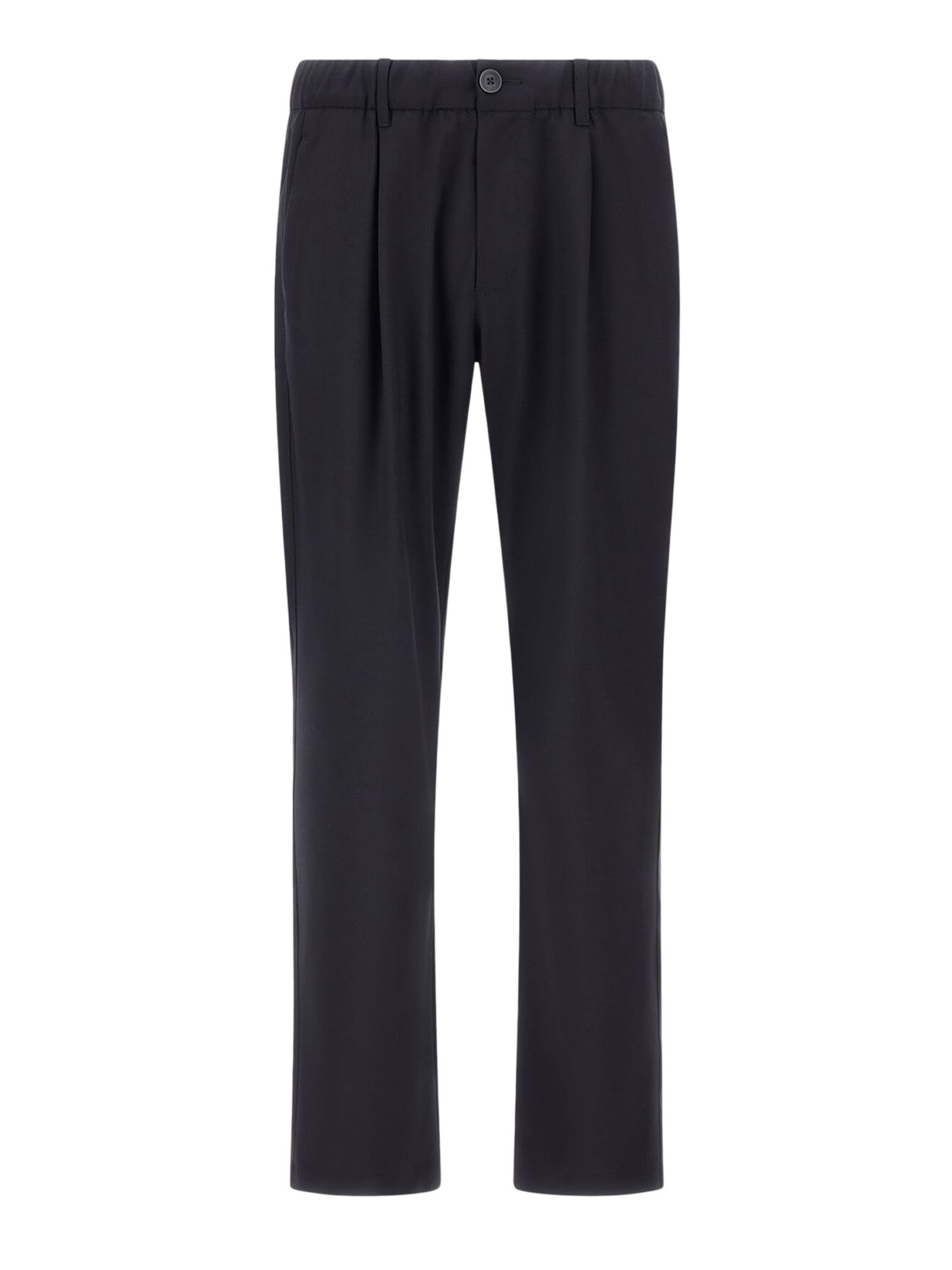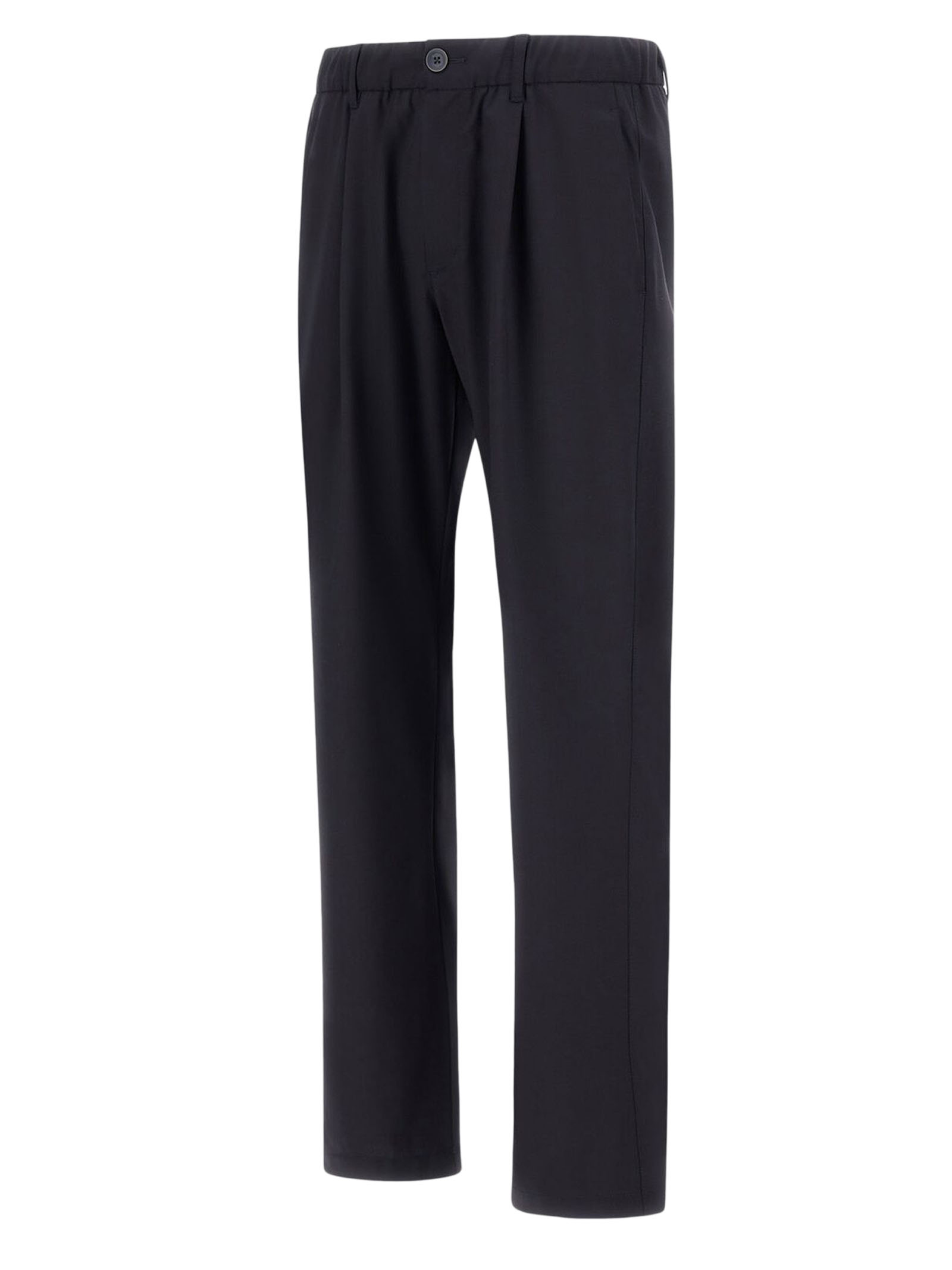 Pantaloni in fresco di lana stretch blu, Vestibilità regolare, Pinces, Elastico in vita, Tasche con zip invisibile, Tasche a filetto sul retro, Logo Herno in metallo sul retro, Chiusura con bottone a pressione e zip coperta, Sfoderato