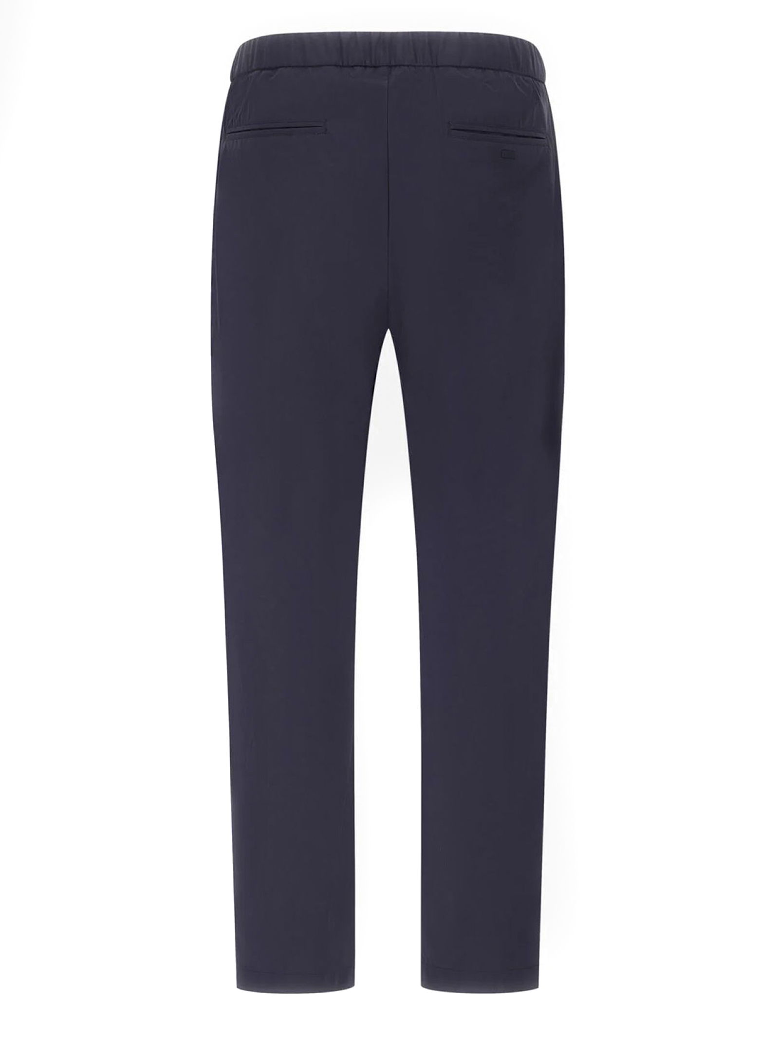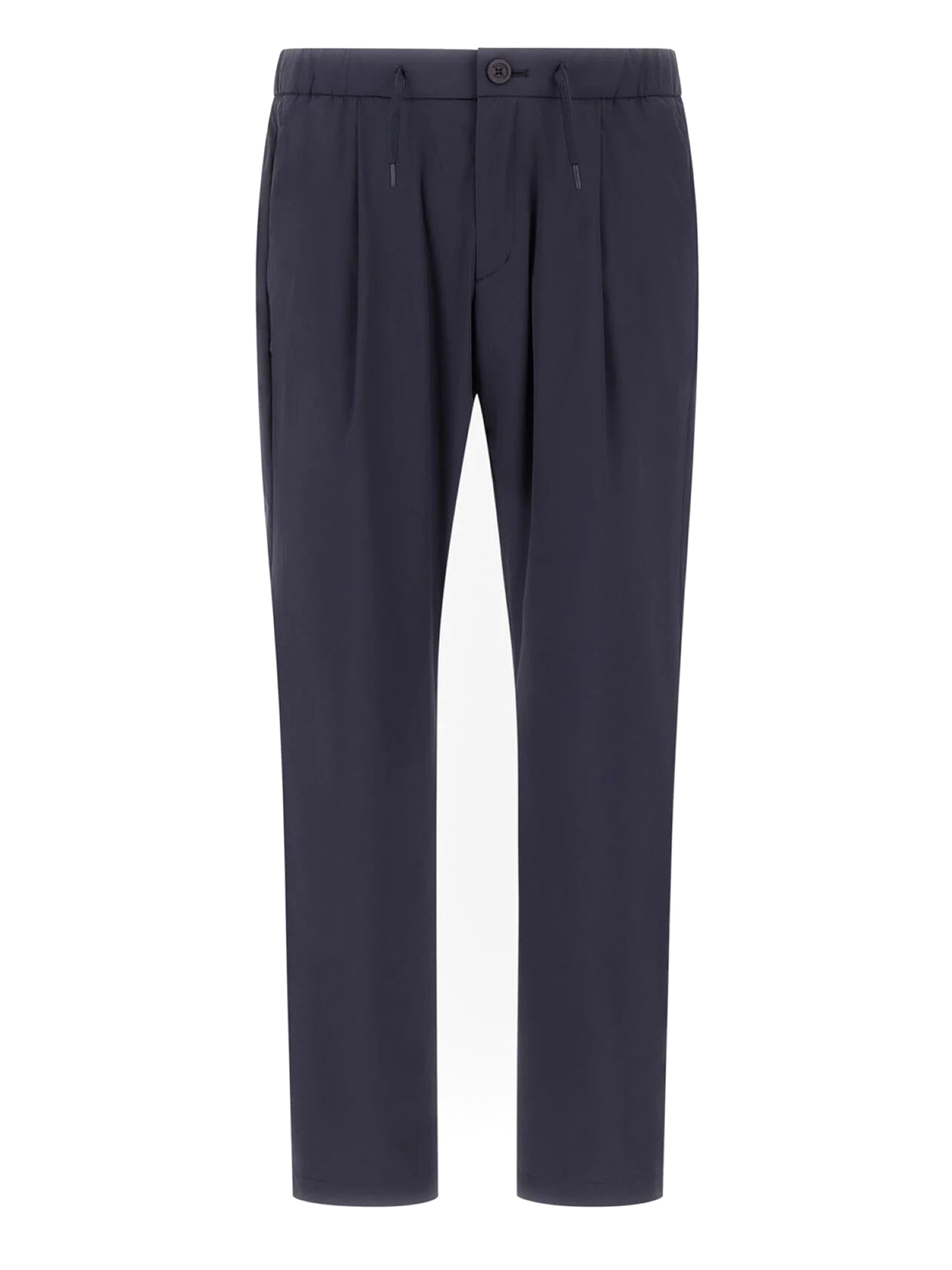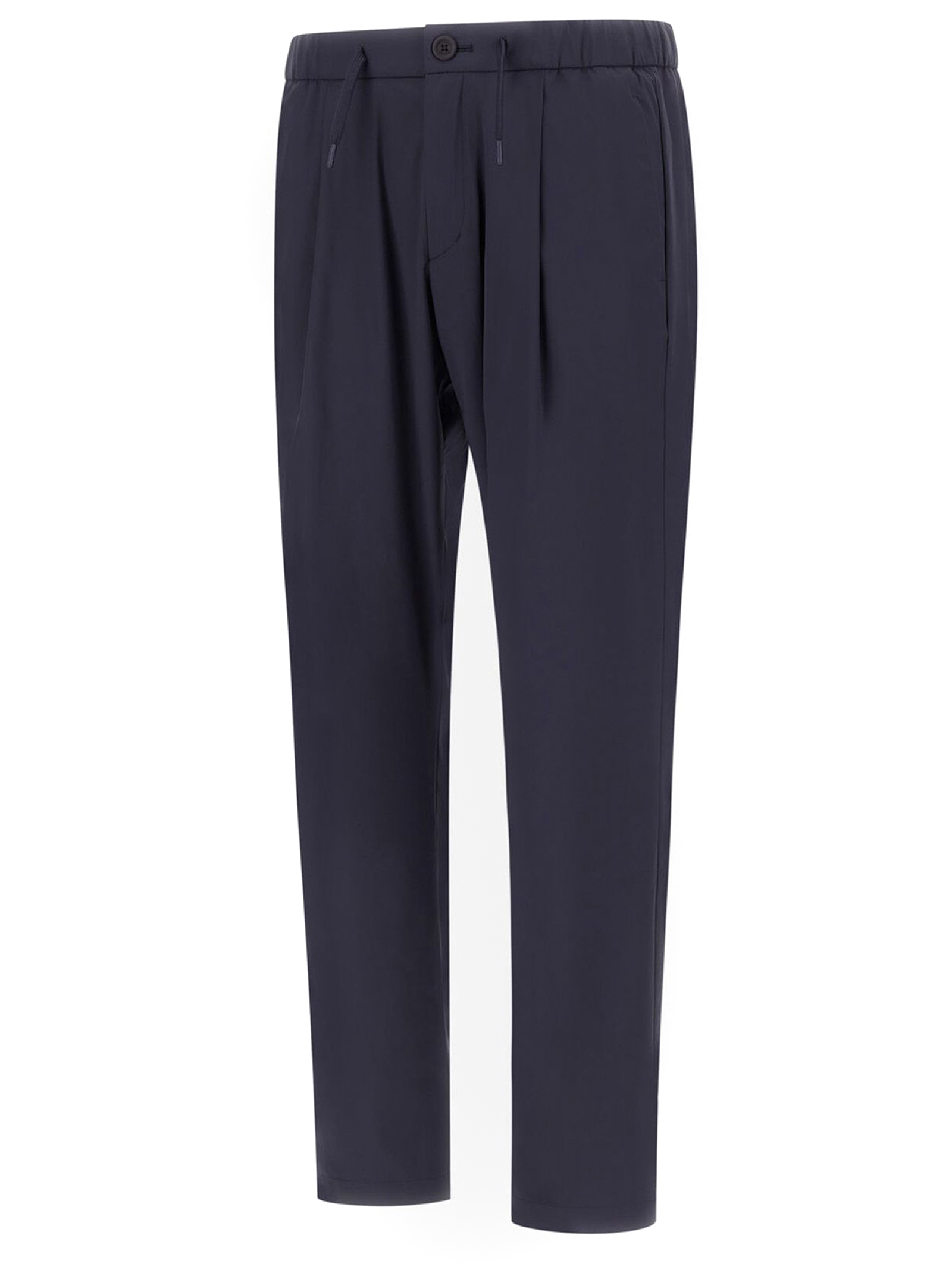 Pantaloni in nylon stretch ultraleggero e traspirante blu, Vestibilità regolare, Elastico con coulisse in vita, Pinces, Tasche sui fianchi, Tasche a filetto sul retro, Patch Herno sul retro, Chiusura con bottone e zip nascosta