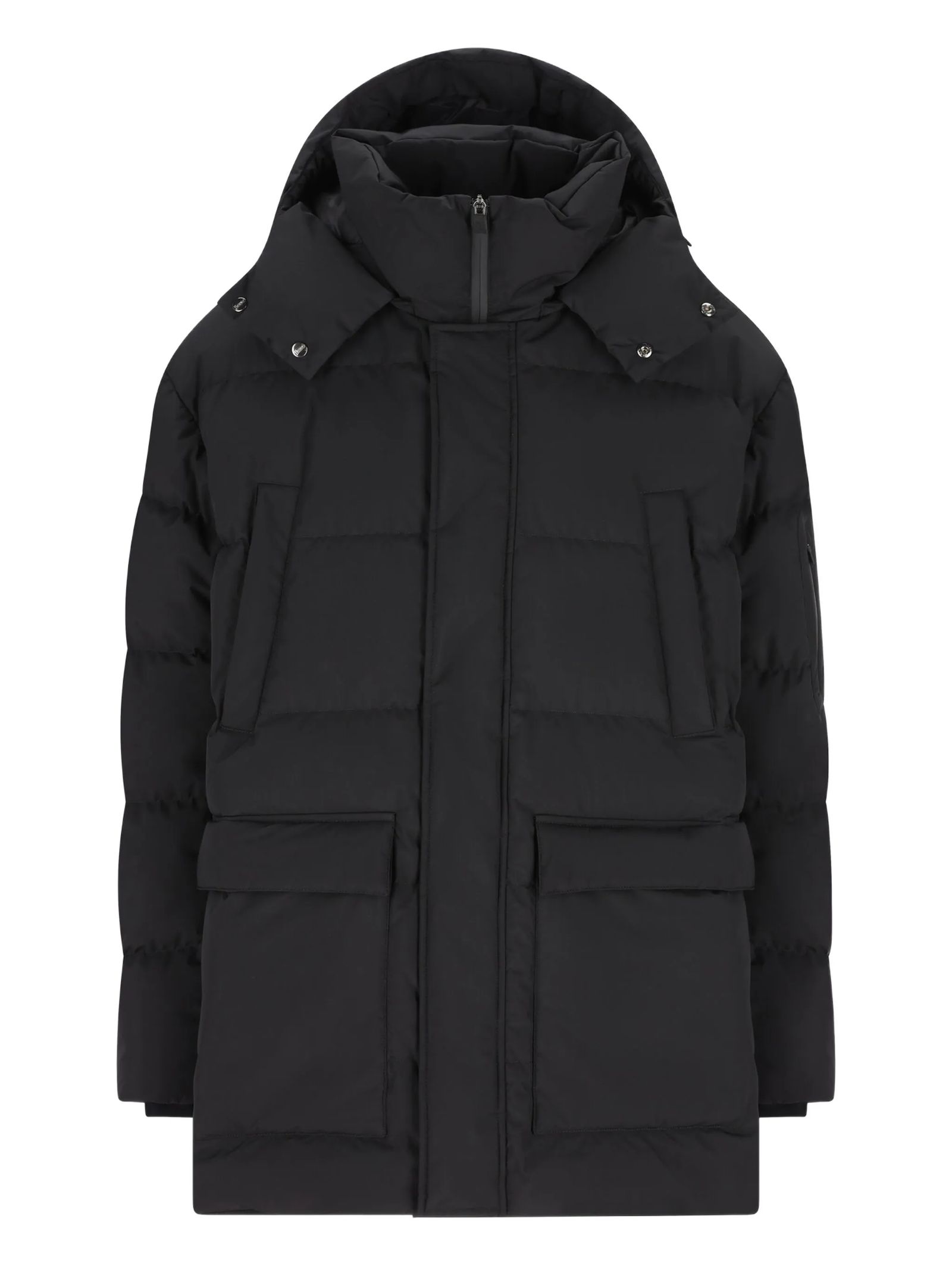 Piumino Pro Metro Collection in colore nero, imbottitura sintetica e trapuntatura orizzontale, cappuccio removibile, chiusura doppia con zip e bottoni, polsini rientranti in Lycra e spalle raglan, tasche anteriori con pattina, tasca utility sulla manica sinistra, vestibilità relaxed
