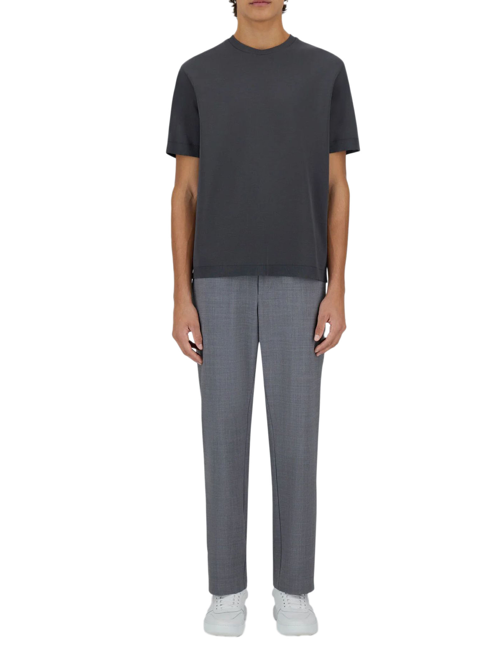 T-shirt in piqué di puro cotone a doppio strato con interno a trama rasata ed esterno arricchito da dettagli in costa, Vestibilità regolare, Girocollo, Maniche corte