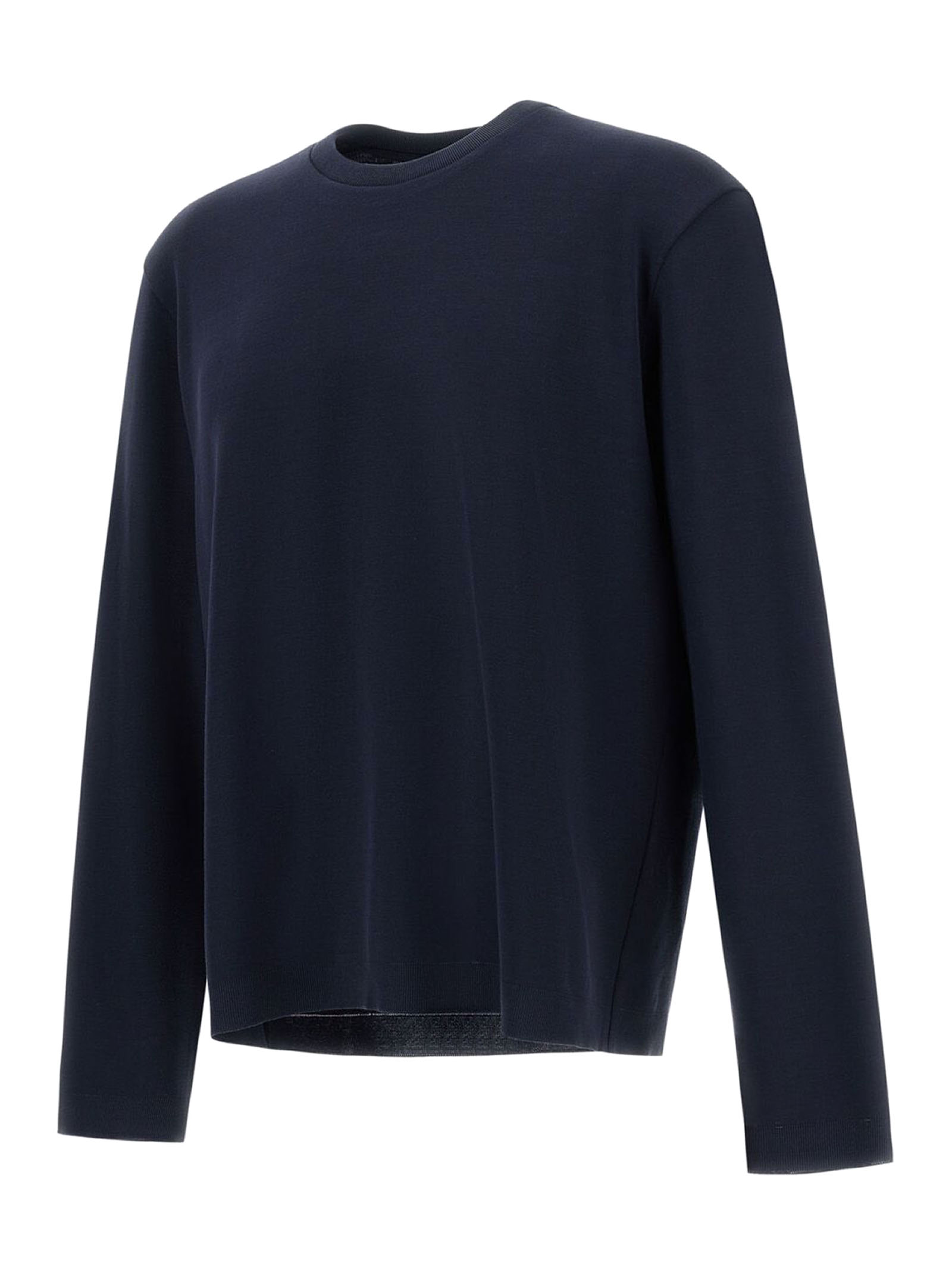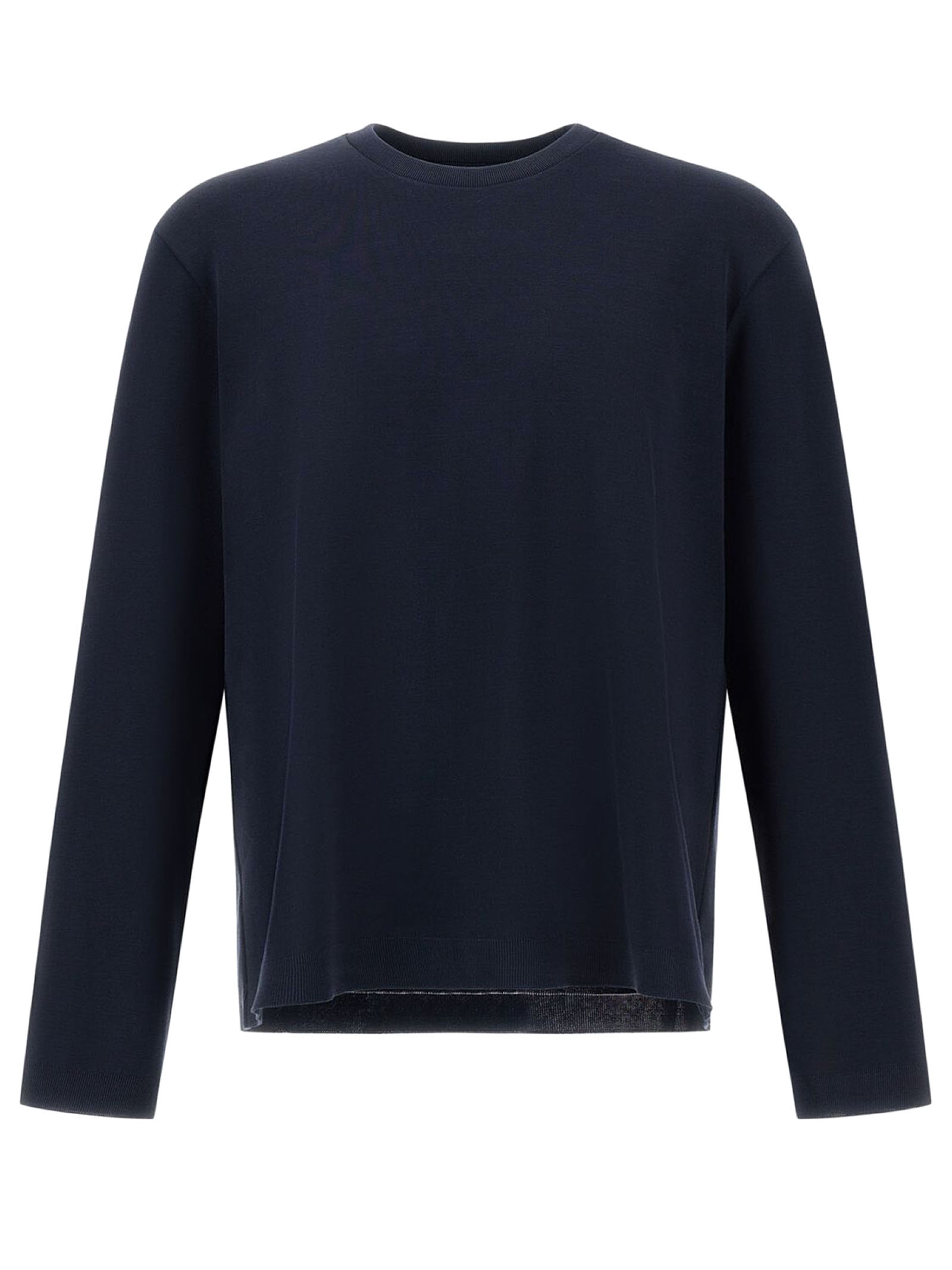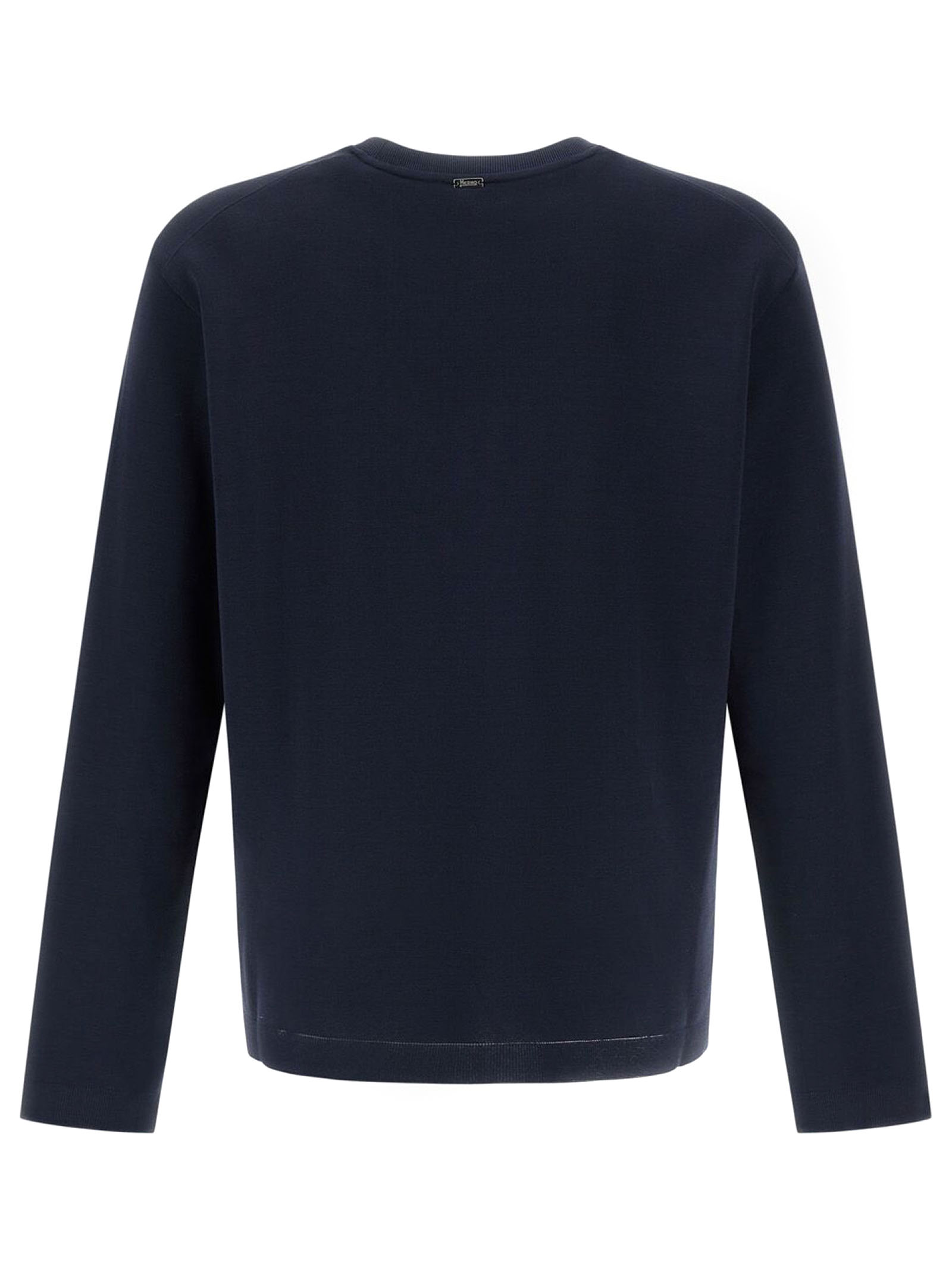 T-Shirt In Piquet Di Puro Cotone Blu A Doppio Strato Con Interno A Trama Rasata, Vestibilità Regolare, Girocollo, Maniche Lunghe, Logo Herno In Metallo Sul Retro, Sfoderato