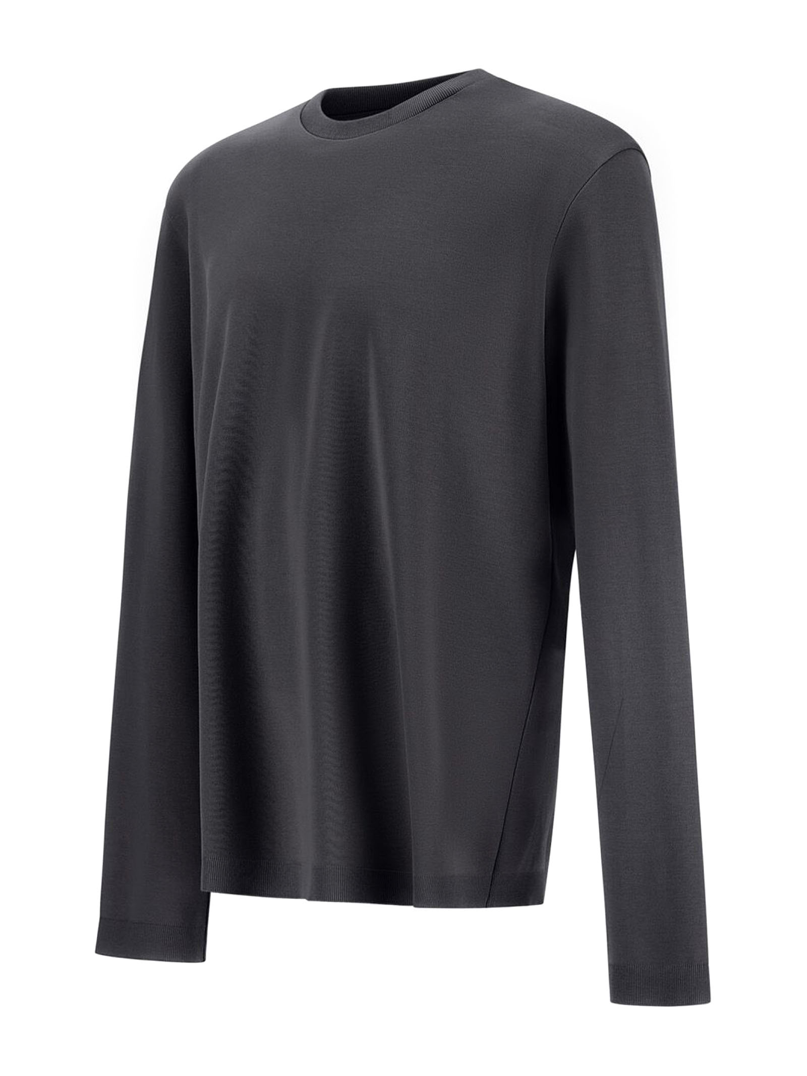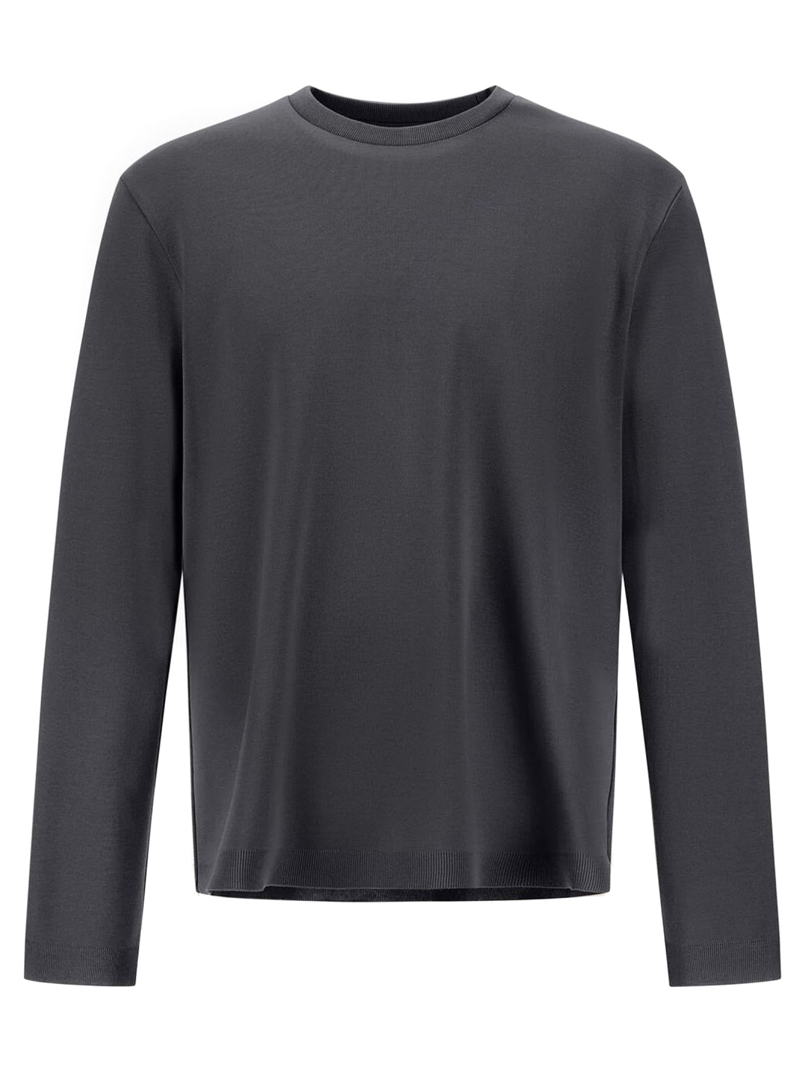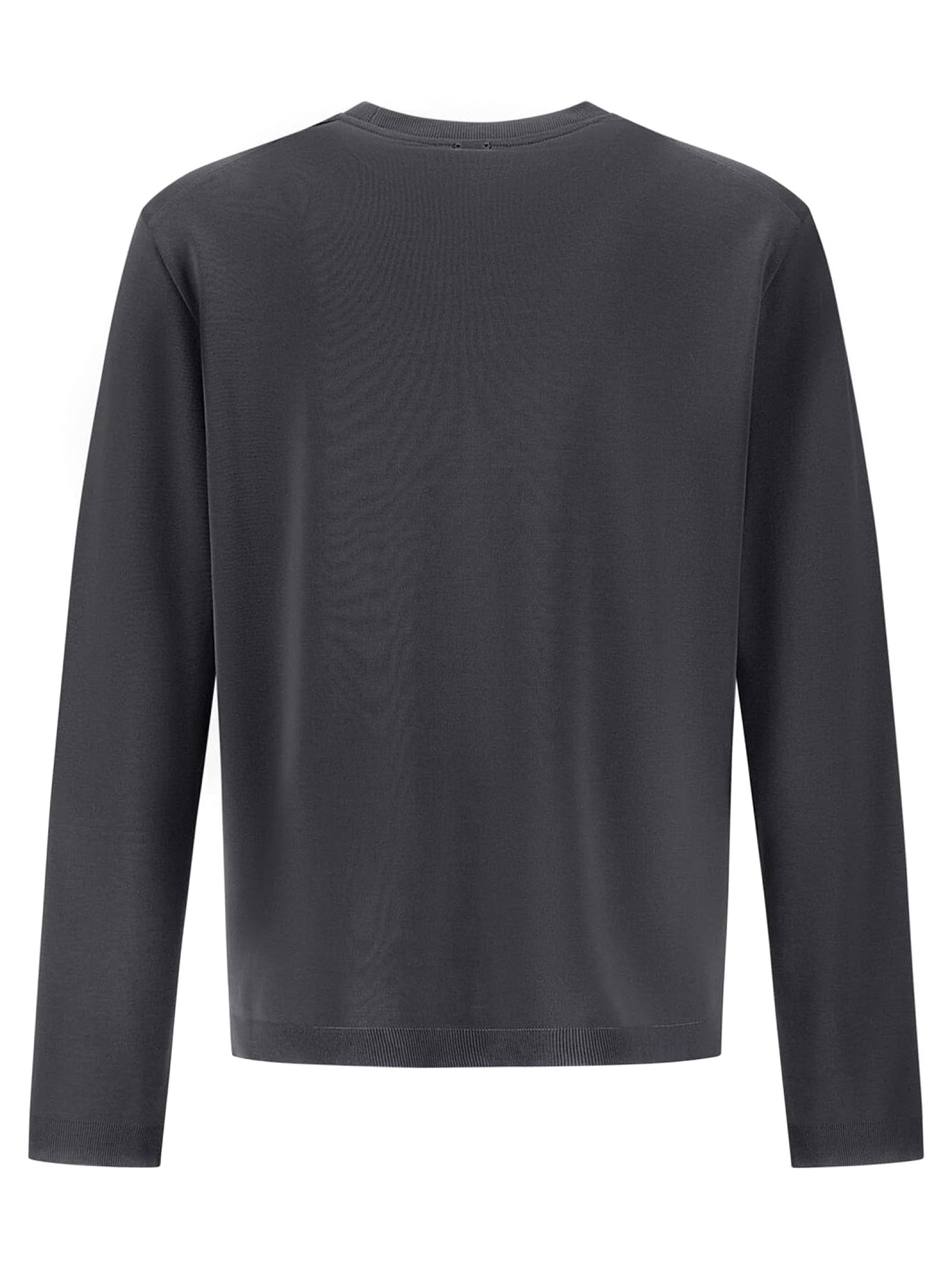 T-Shirt In Piquet Di Puro Cotone Grigio A Doppio Strato Con Interno A Trama Rasata, Vestibilità Regolare, Girocollo, Maniche Lunghe, Logo Herno In Metallo Sul Retro, Sfoderato