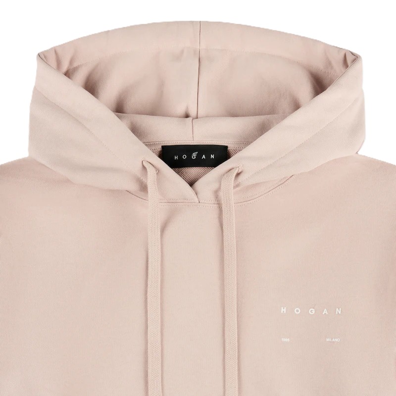 Felpa in cotone con cappuccio e coulisse. Dotata di inserti in maglia a costine sui polsini e sul fondo, presenta il logo Hogan stampato a contrasto sul petto.