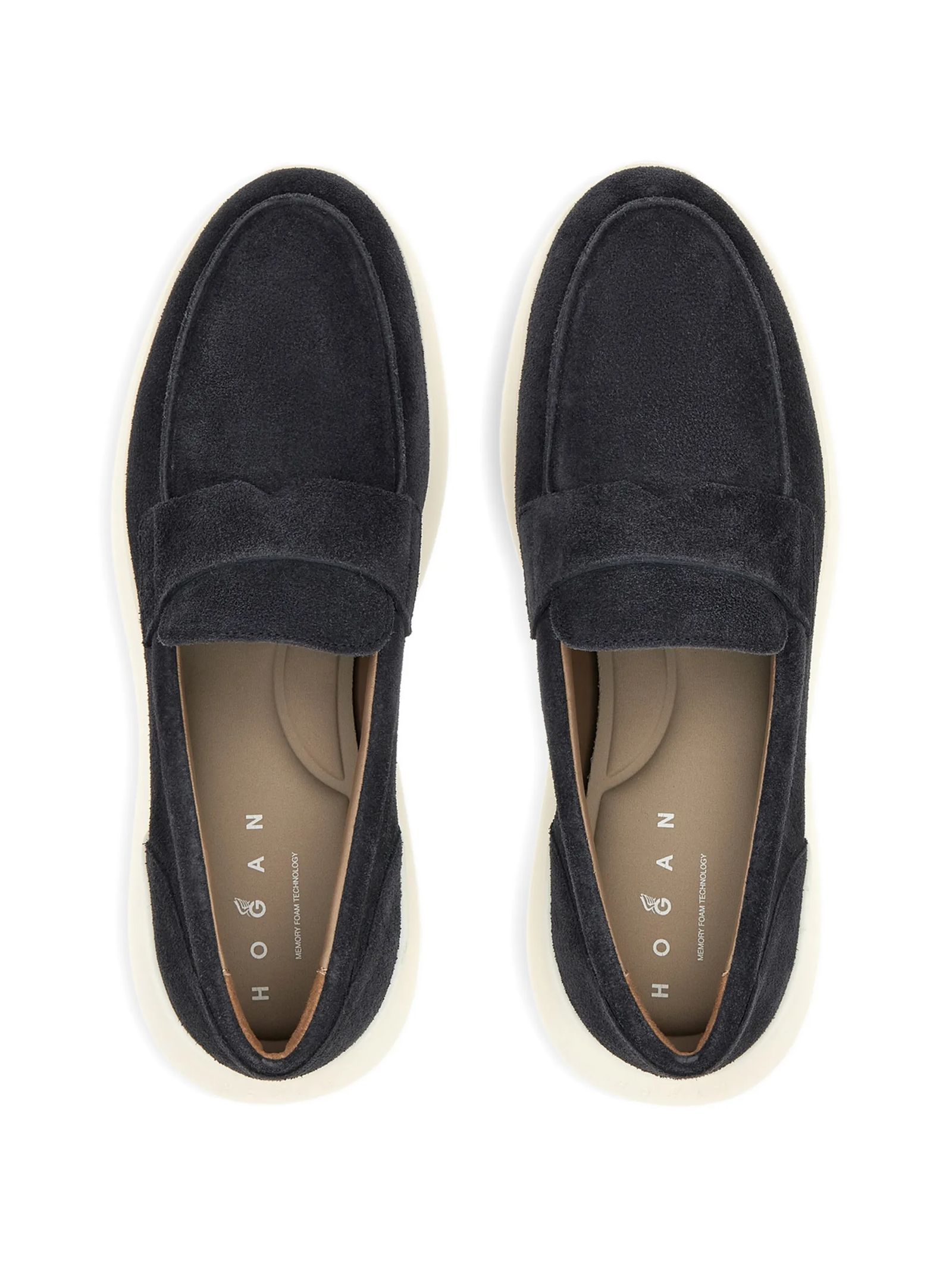 Mocassini Hogan Interactive³ Blu, Tomaia in pelle scamosciata, Mascherina, Soletta in memory foam 8 mm, Suola in XL EXTRALIGHT® EXTRABOUNCE, Altezza totale 5,3 cm