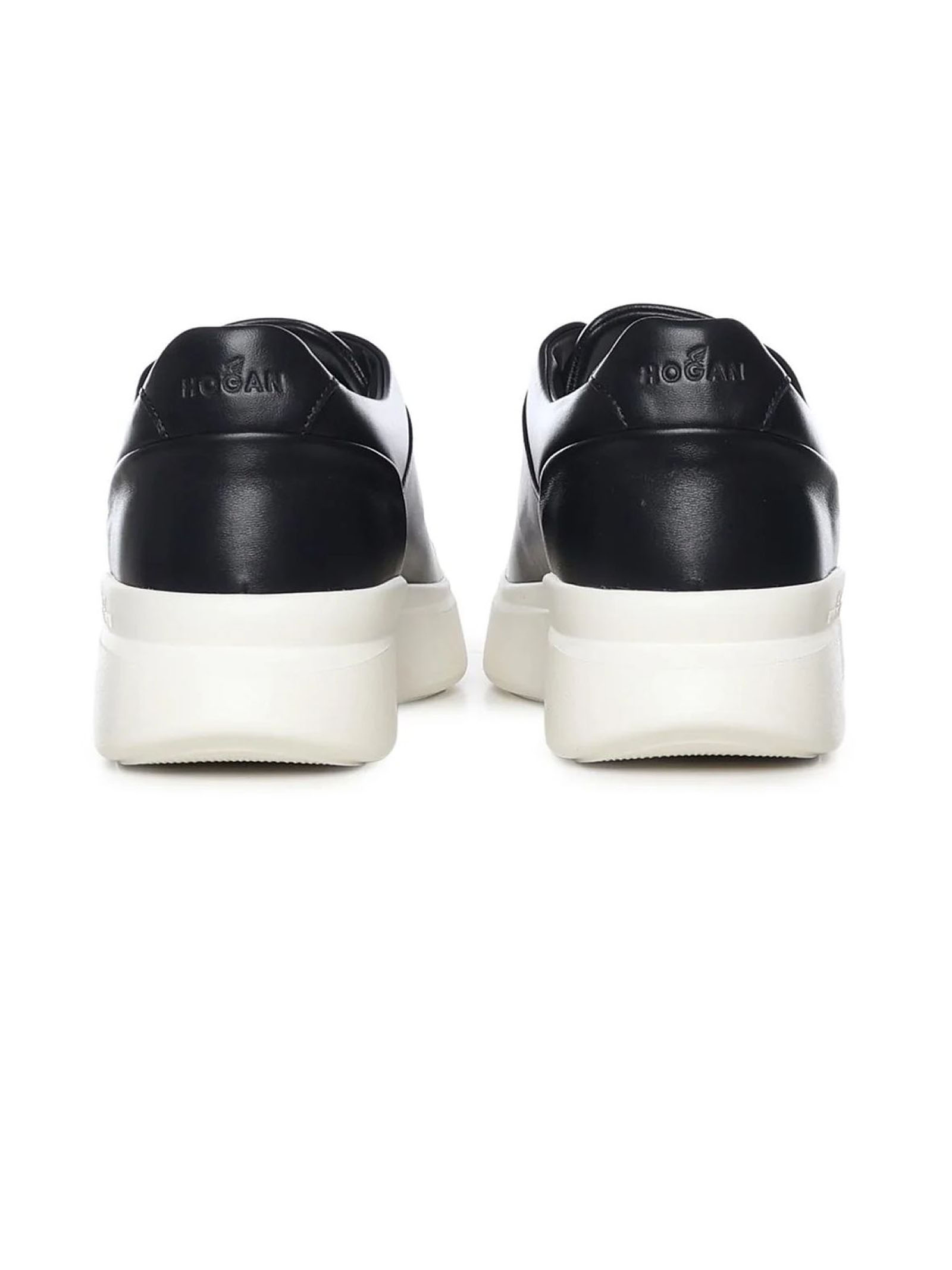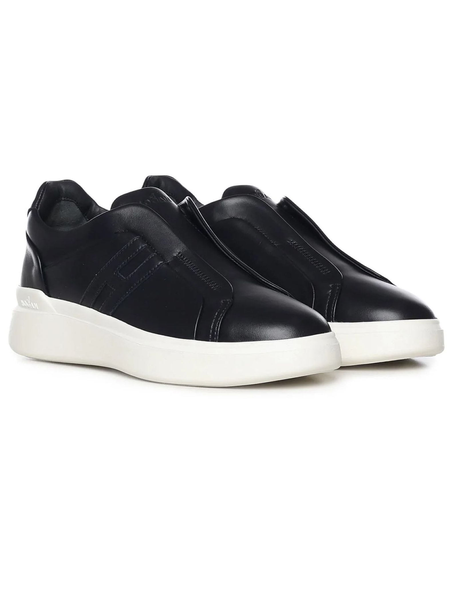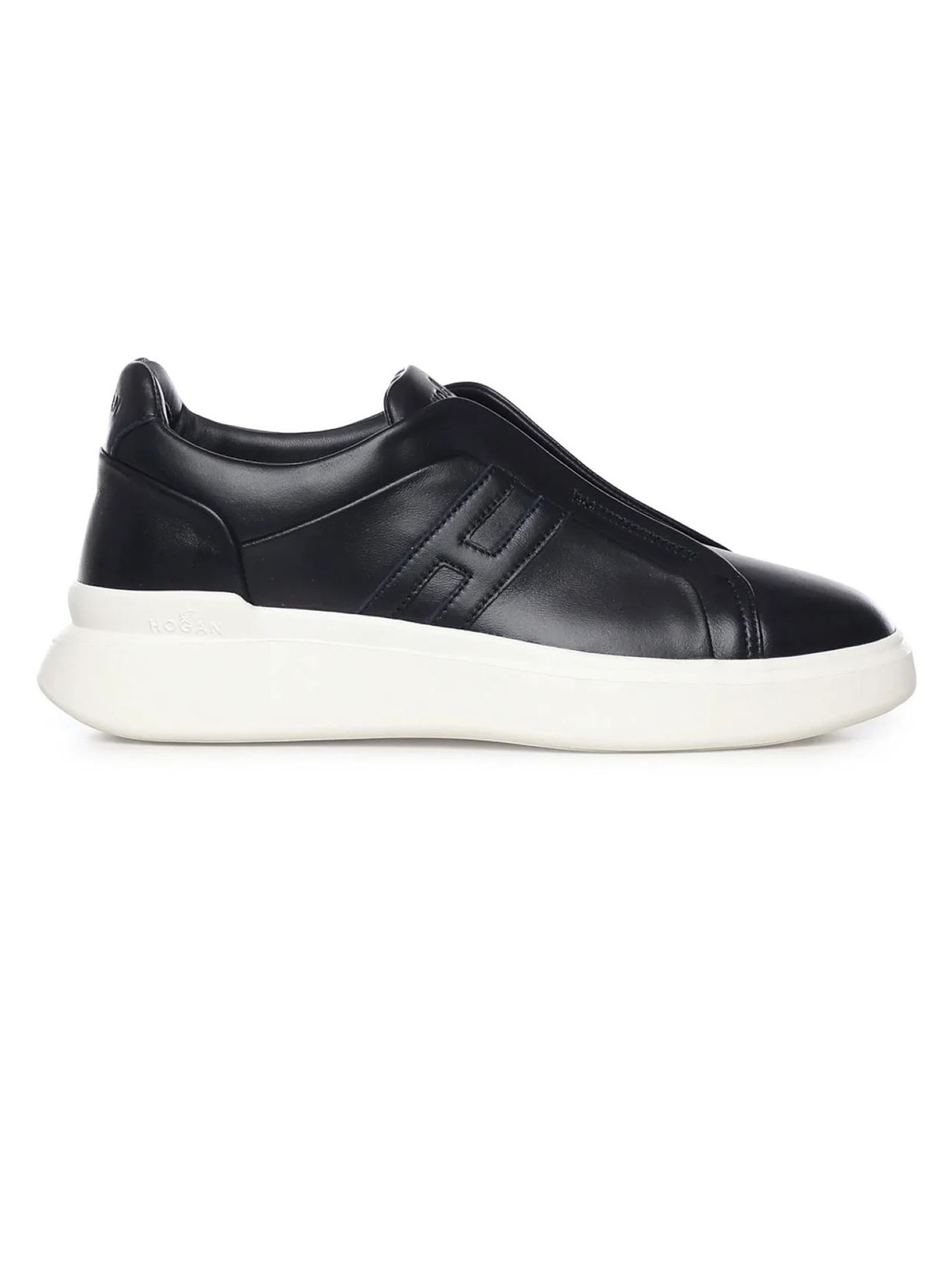 Slip-On Hogan H580 Nero, Tomaia in pelle, H laterale, Inserti elastici nascosti, Fussbett in memory foam 8 mm, Suola in gomma, Altezza totale 4,5 cm