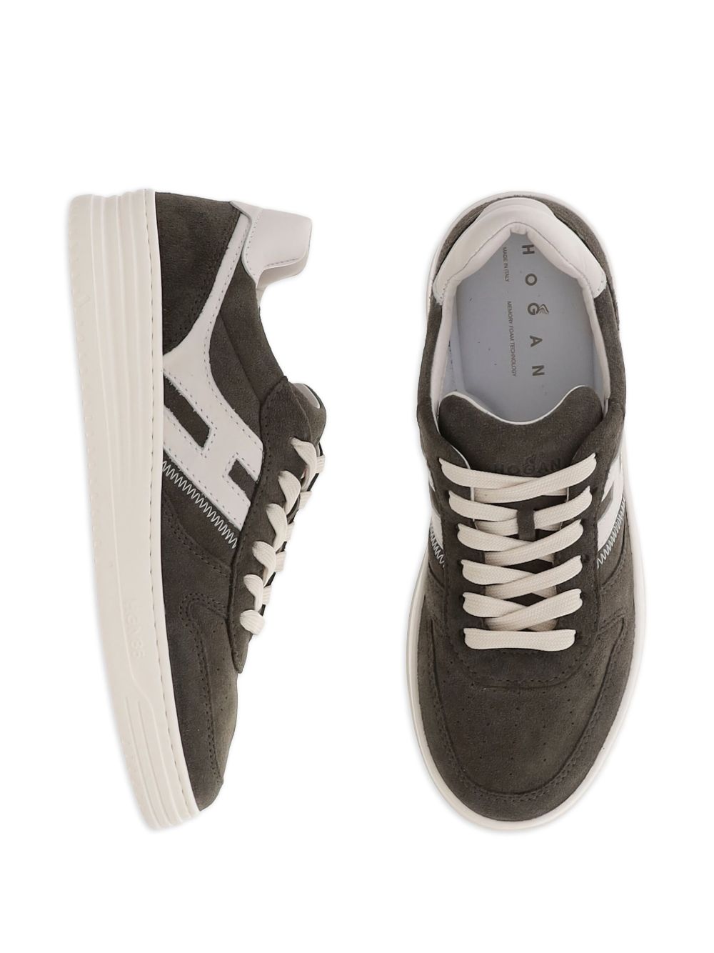 Sneakers Hogan H630 Grigio, Tomaia in pelle scamosciata, H laterale in pelle liscia, Soletta in memory foam 9 mm, Suola in gomma, Altezza totale 3,8 cm