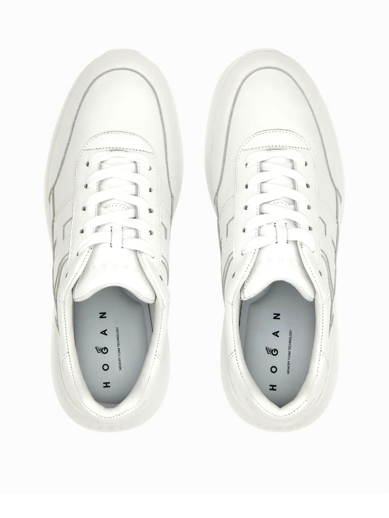 Sneakers Hogan Interactive³ bianco, inserti in pelle nappa, logo H laterale, soletta in memory foam da 8 mm, suola XL EXTRALIGHT® EXTRABOUNCE, altezza totale 5,3 cm
