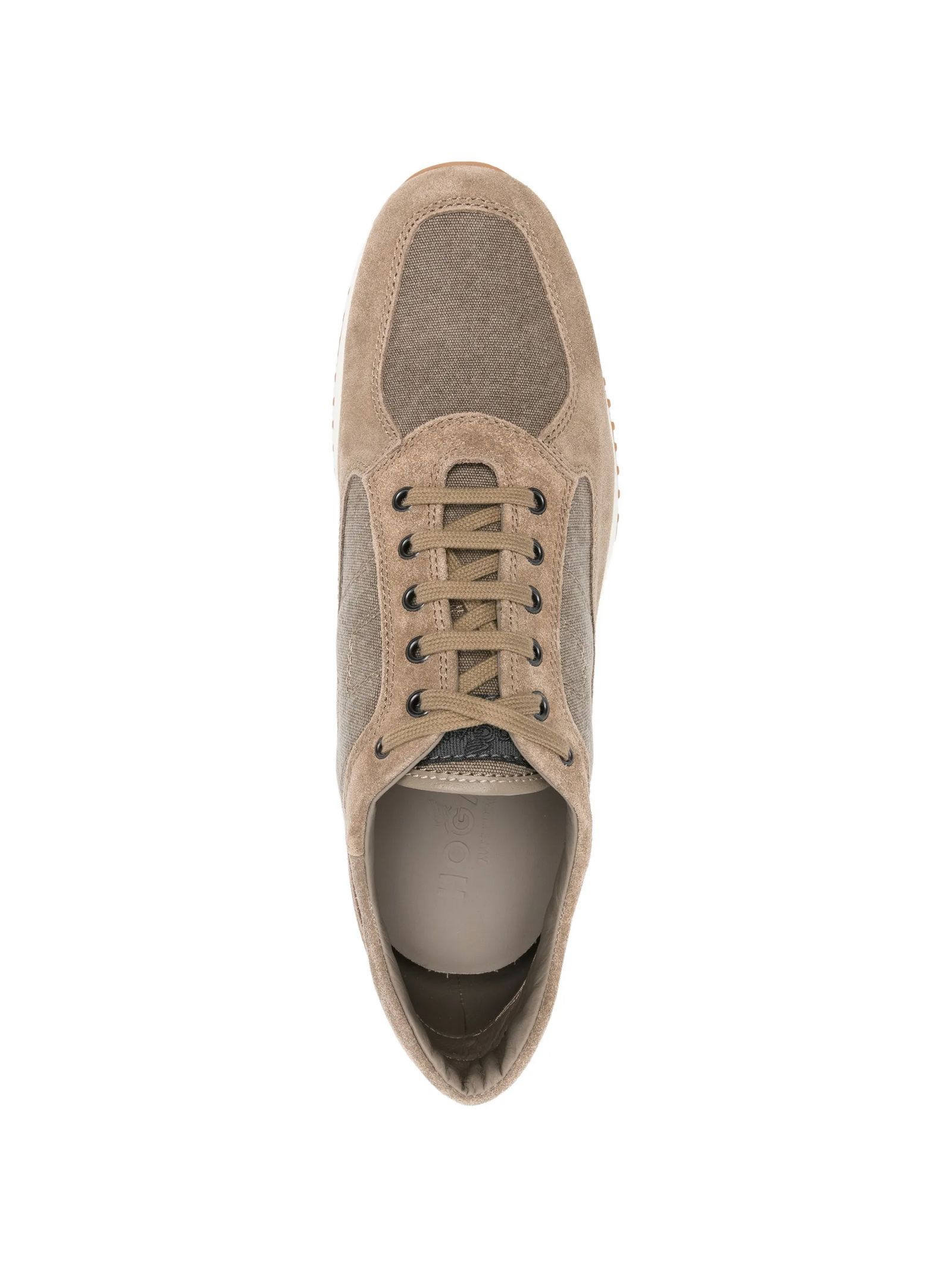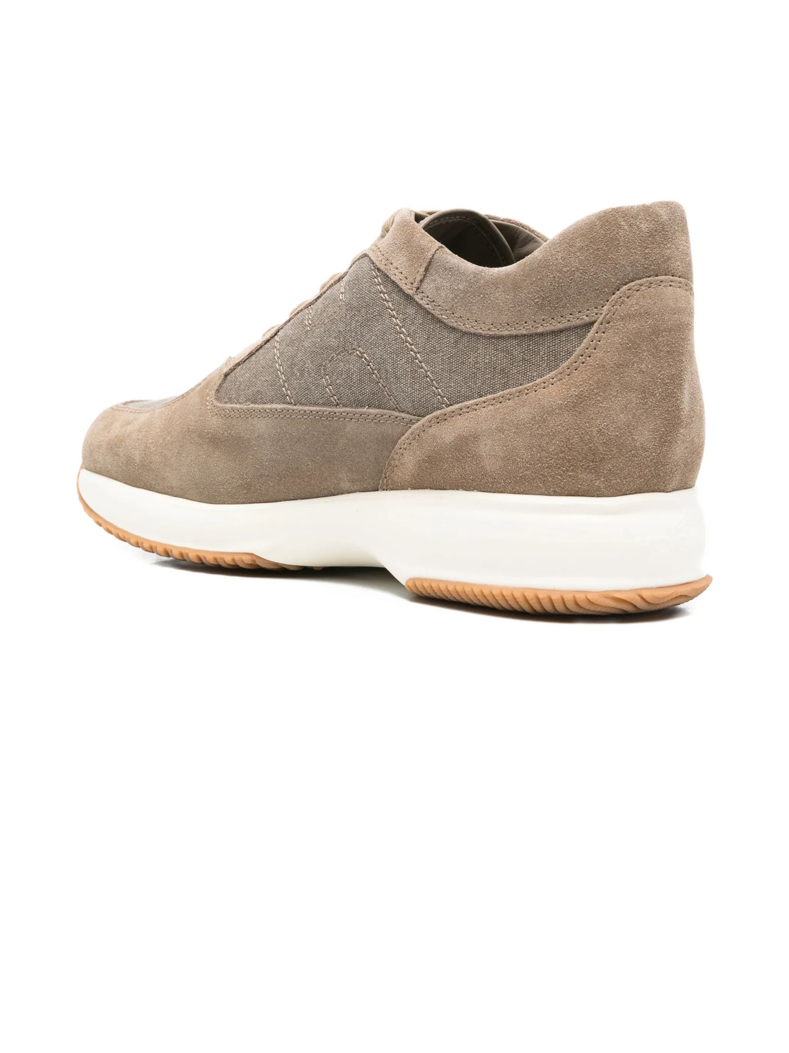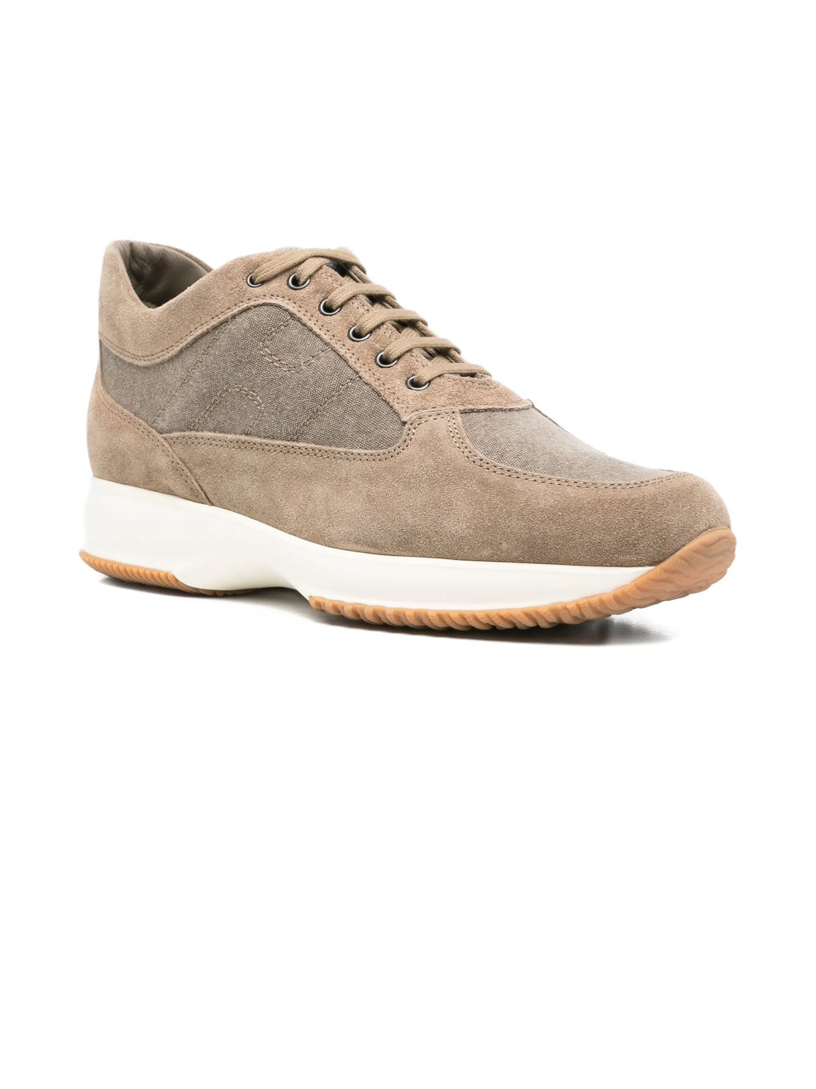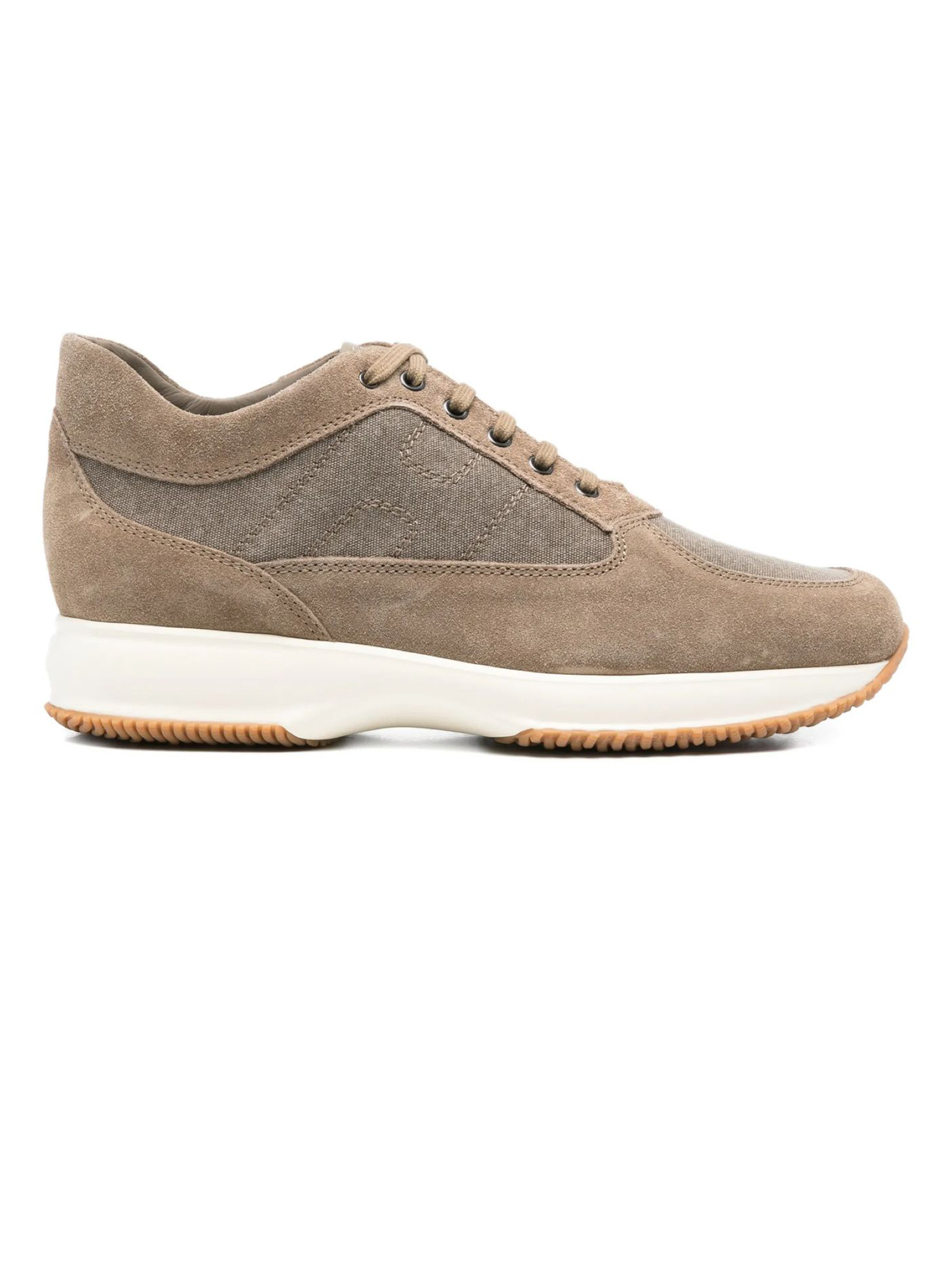 Sneakers Interactive in camoscio marrone, inserti in tessuto, chiusura con lacci, dettaglio logo, suola piatta, punta tonda, fussbett estraibile rialzo 1,2 cm, suola in gomma, altezza totale 5,7 cm