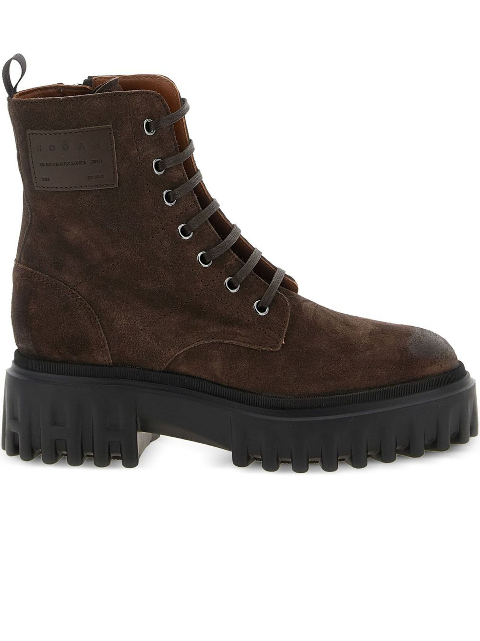 marronepelle scamosciatachiusura con laccichiusura laterale con zipsuola chunky in gommadettaglio con monogramma H