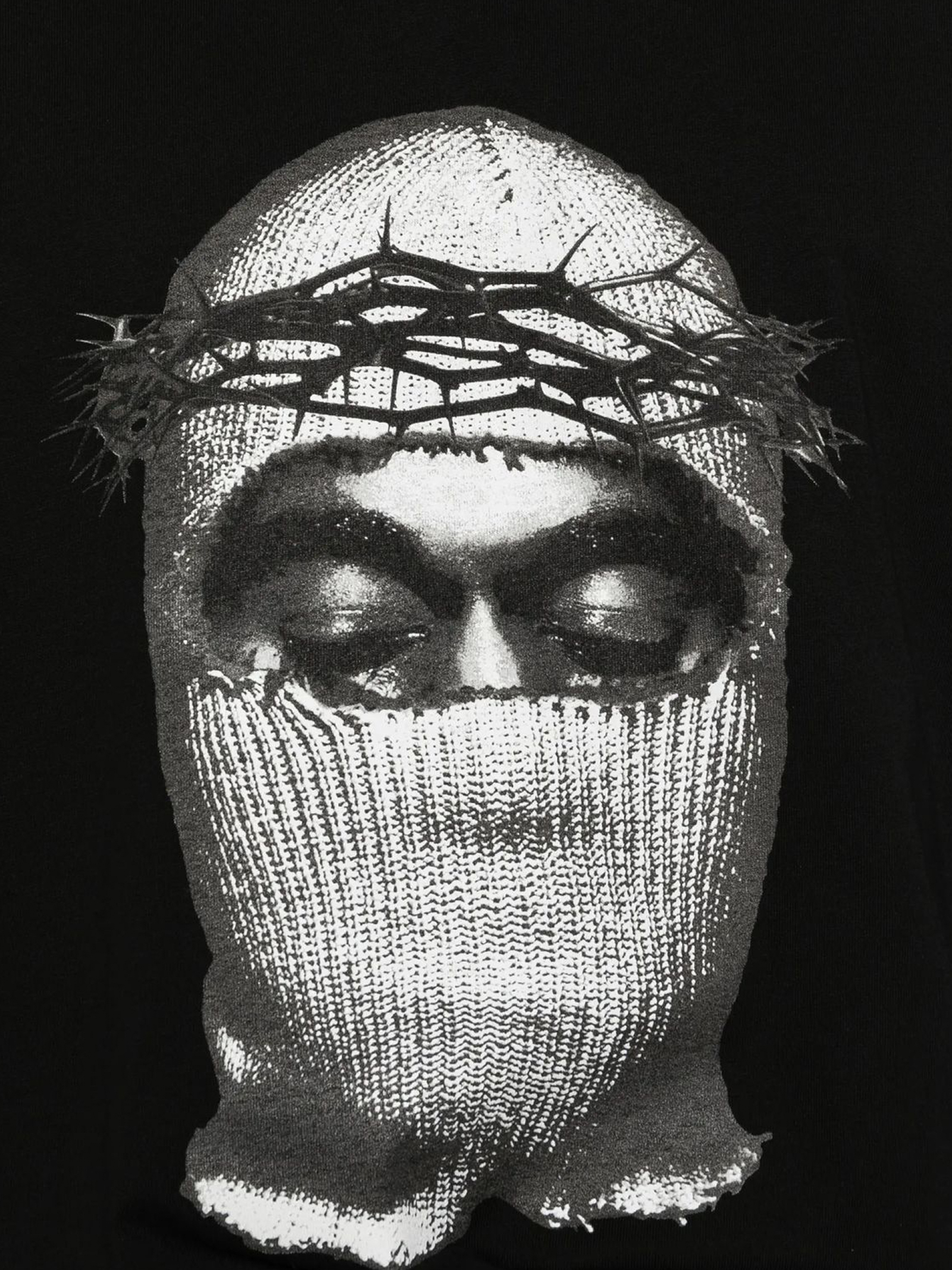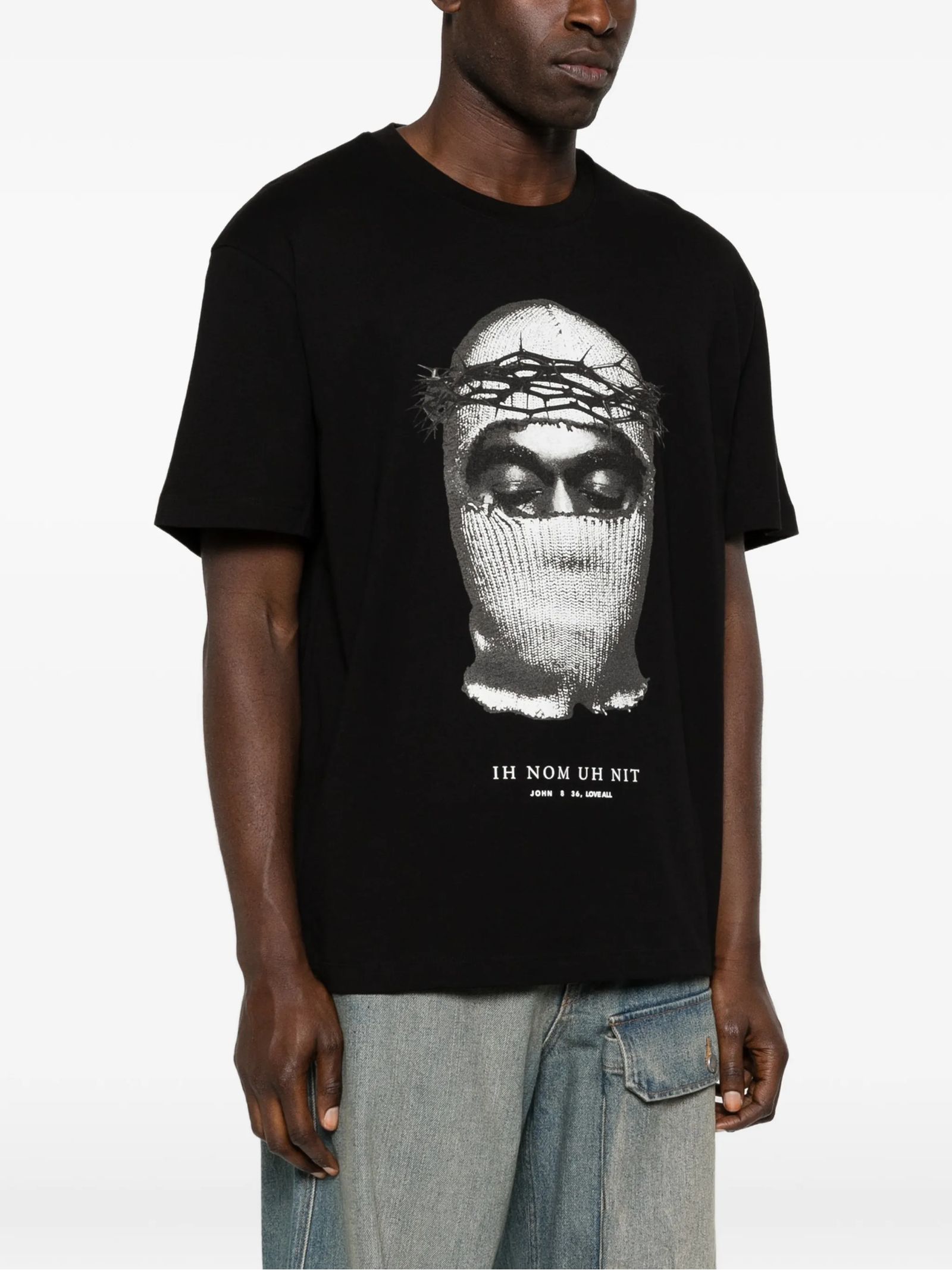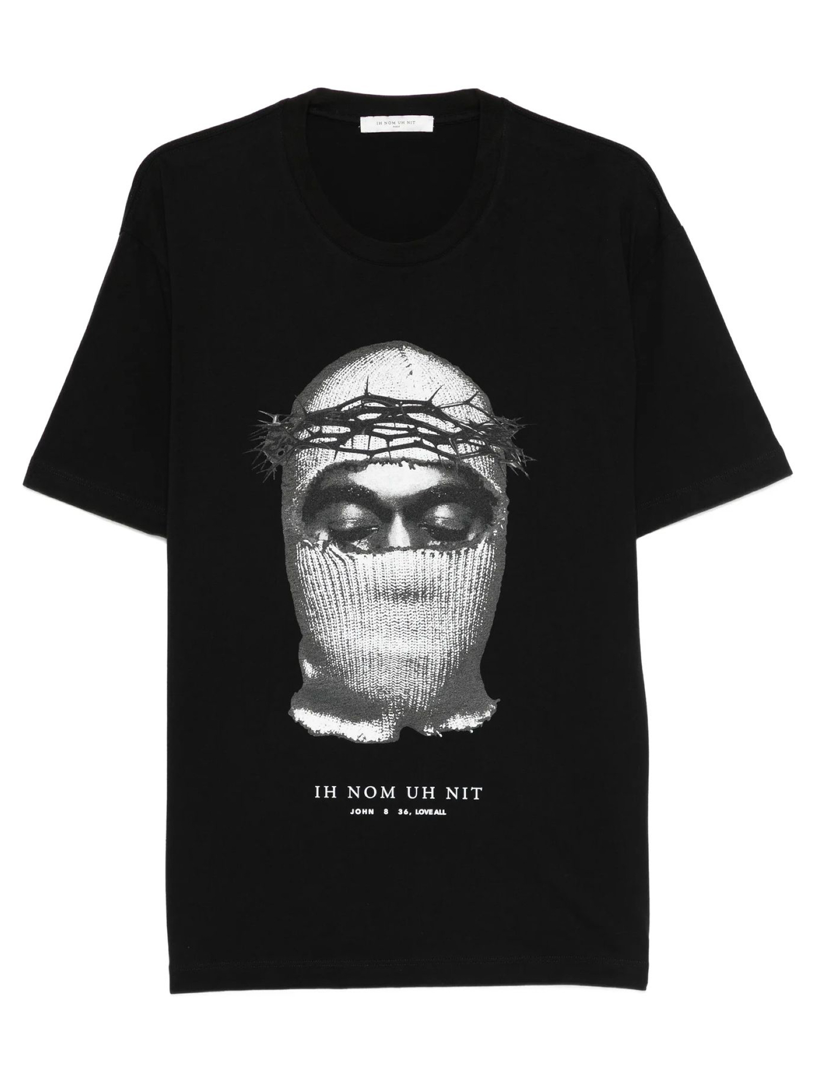 T-shirt Corona Mask in cotone nero con stampa grafica, girocollo, maniche corte