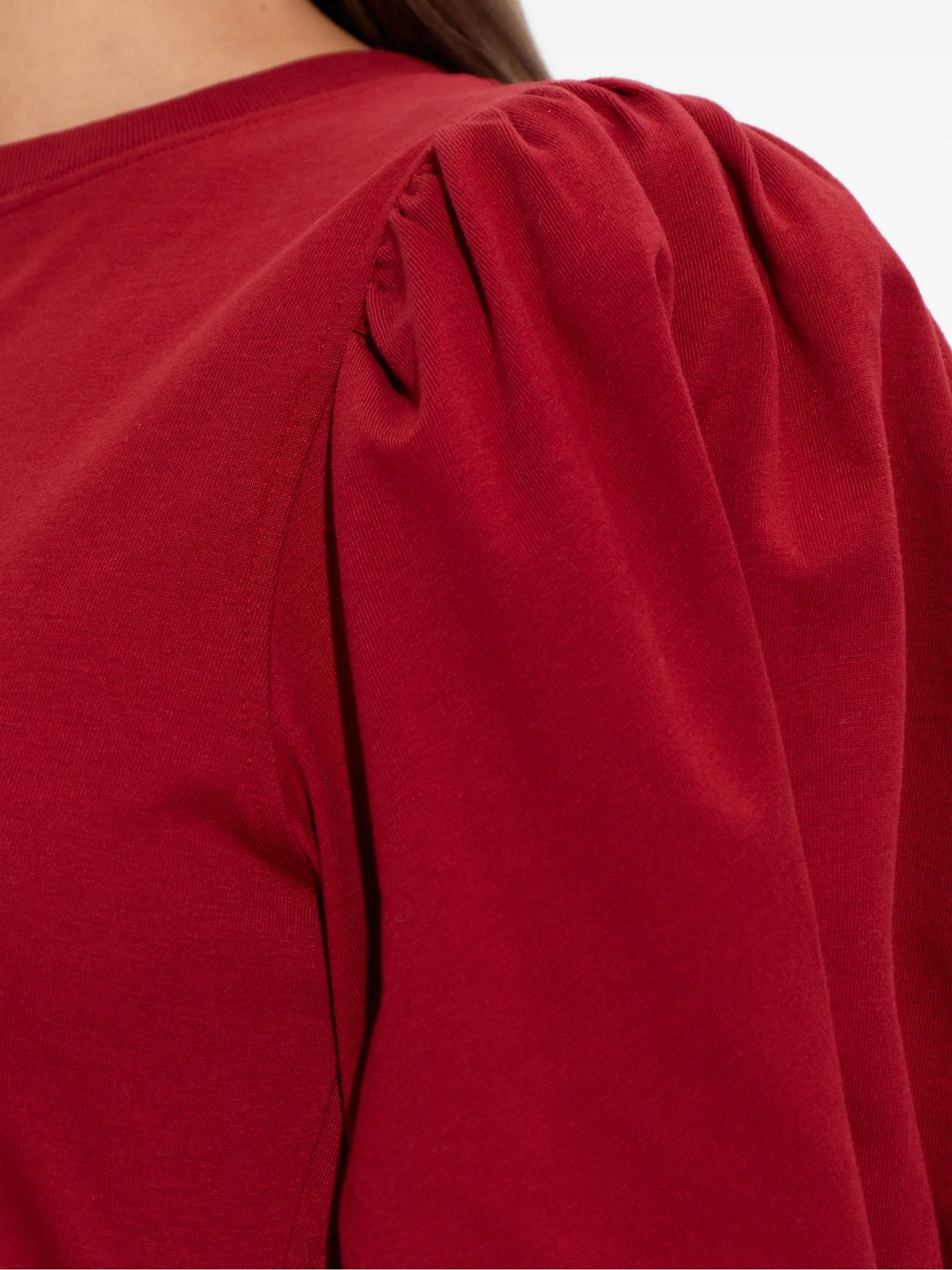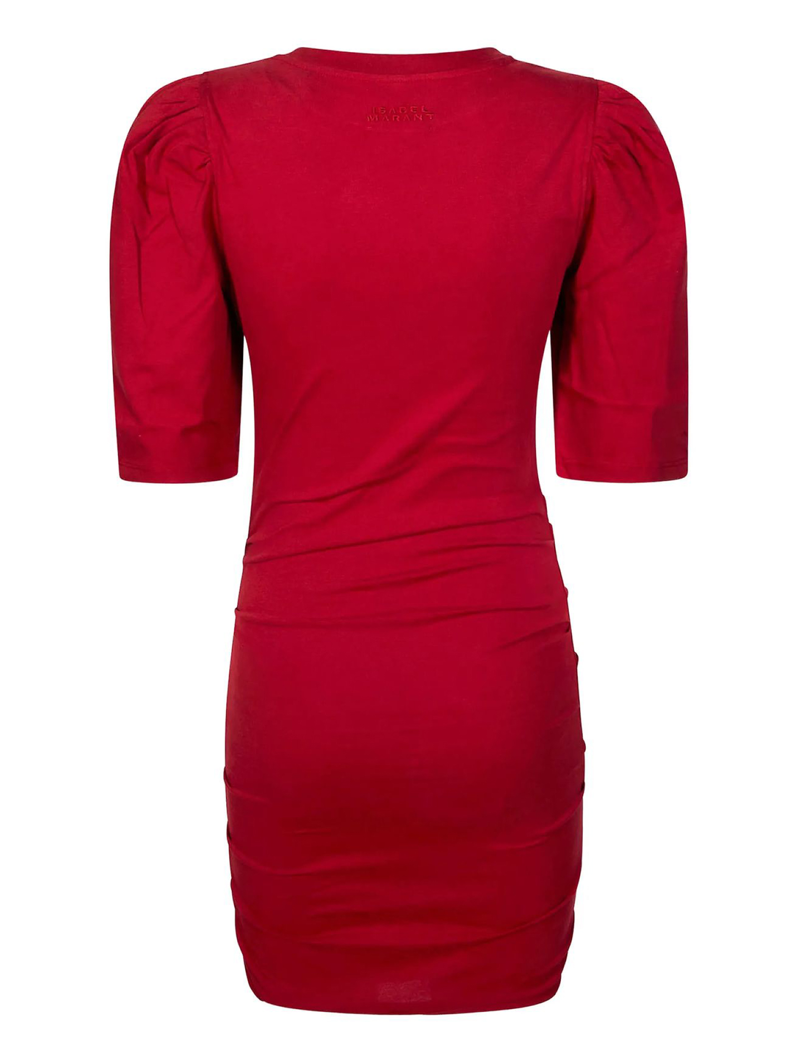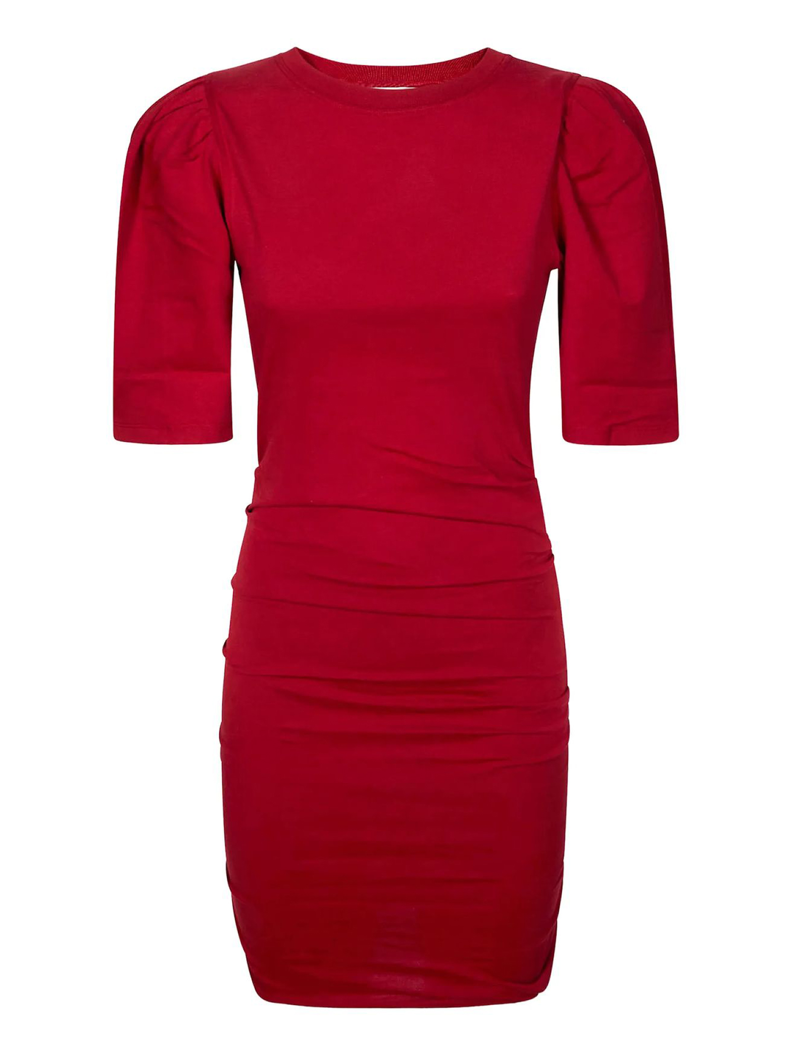 Abito corto in cotone ecosostenibile a tinta unita, Scollo rotondo con finiture a coste, Maniche corte e voluminose, Arricciature sulle spalle, Maniche con piega cucita, Effetto plissettato su tutta la lunghezza, Taglio aderente