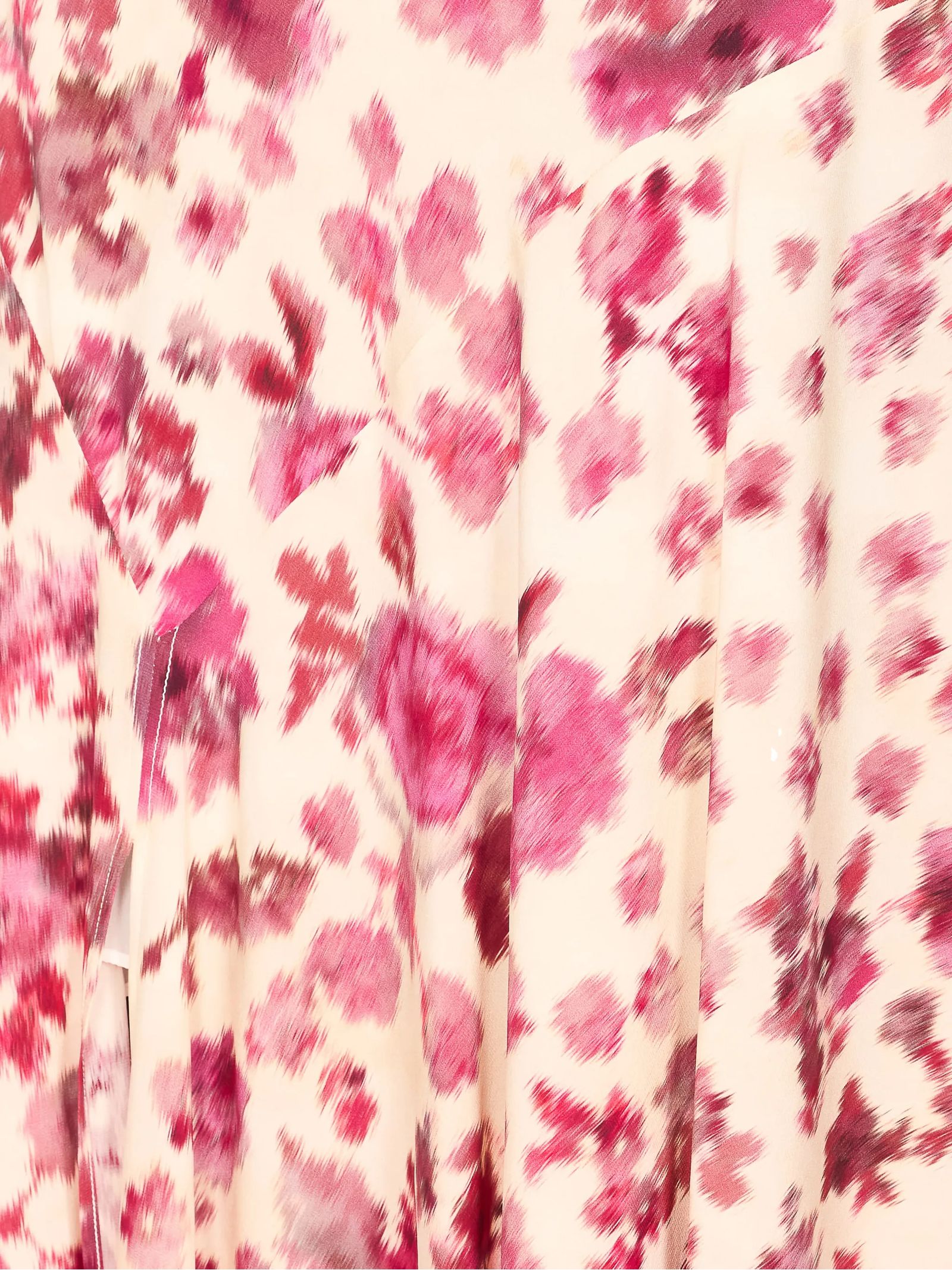 Gonna lunga in seta stretch con rose stampate, Fascia fissata in vita, Zip invisibile sul retro, Spacco davanti, Taglio svasato e lunghezza asimmetrica