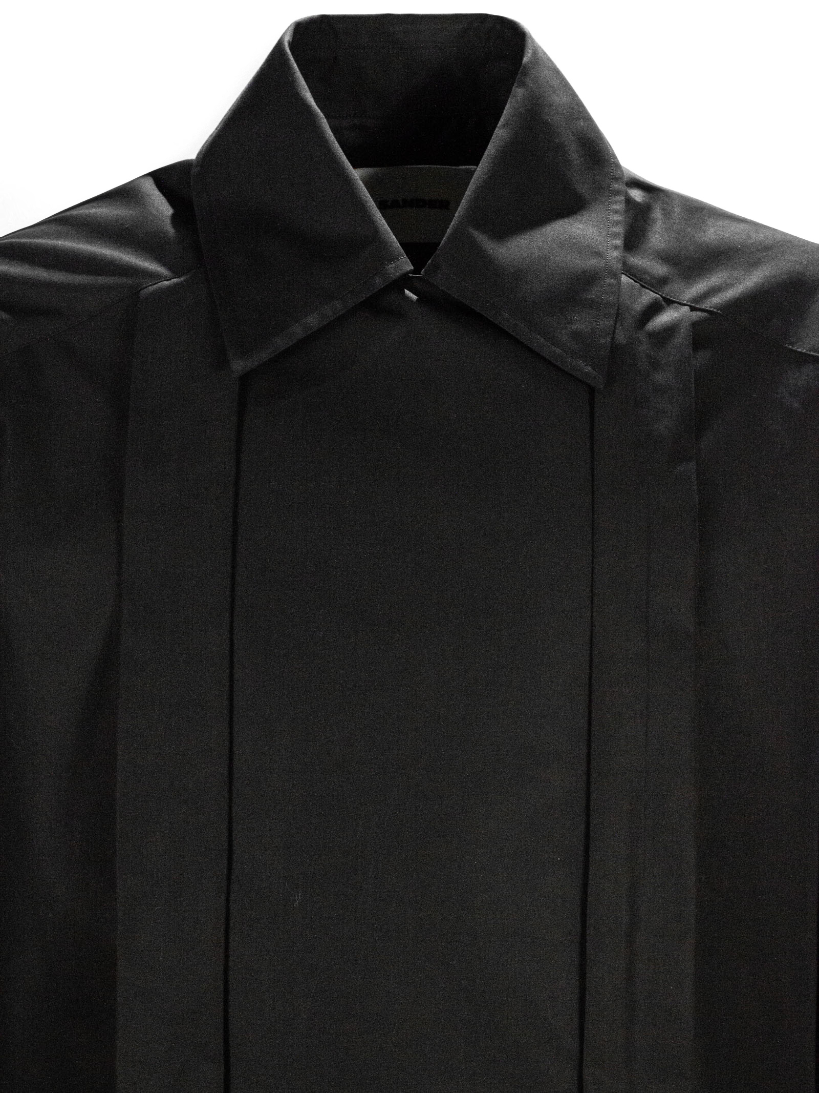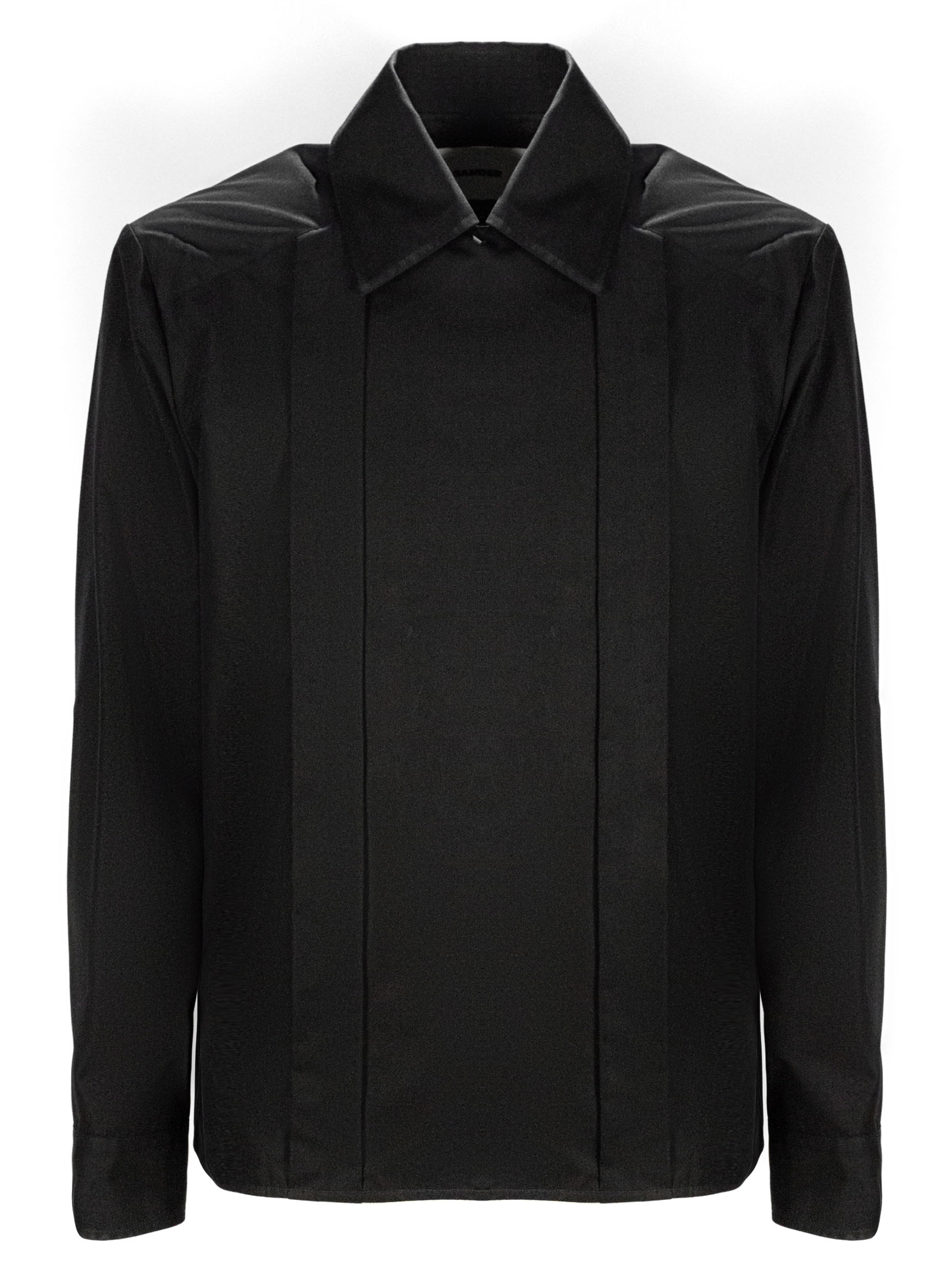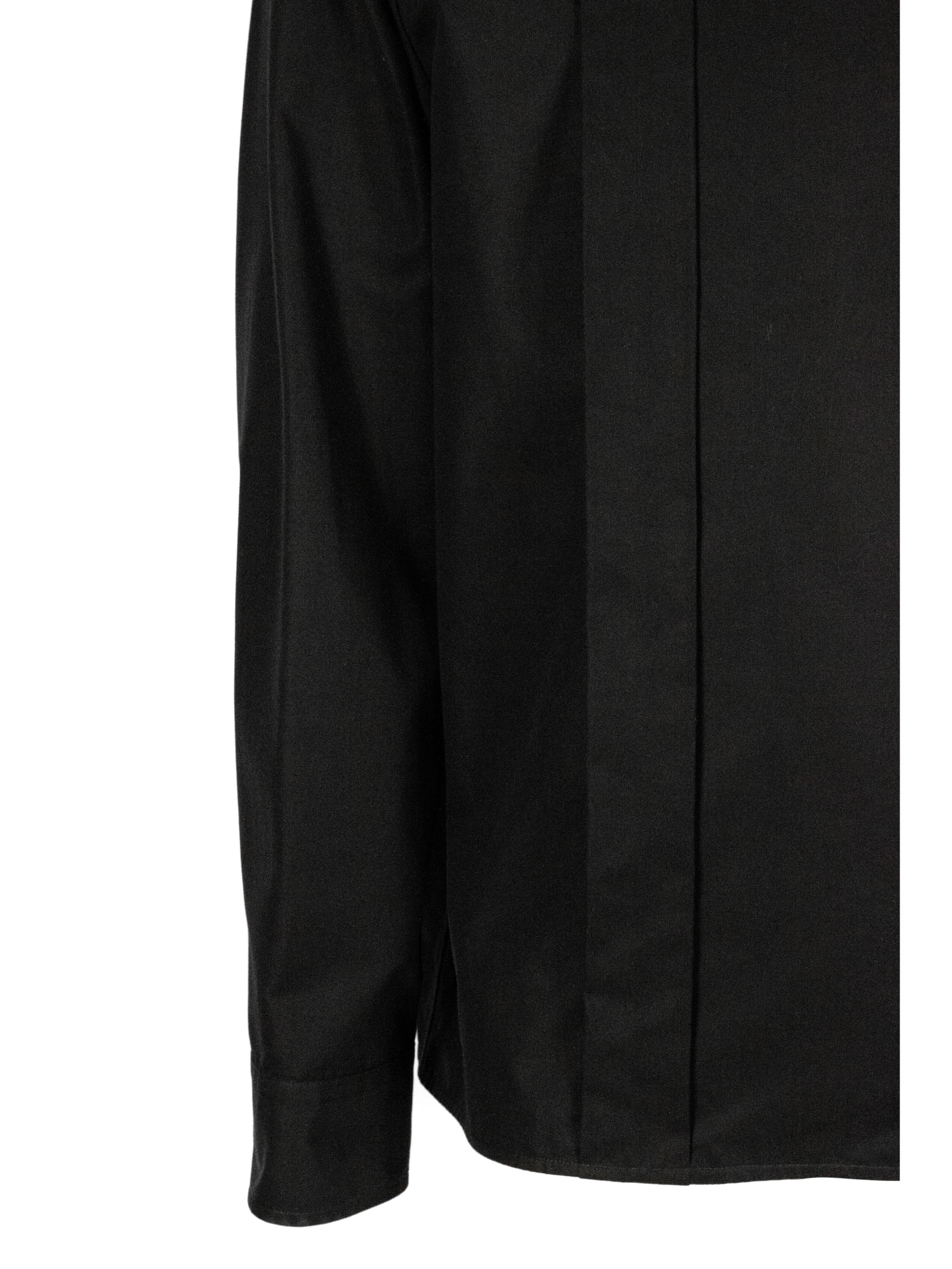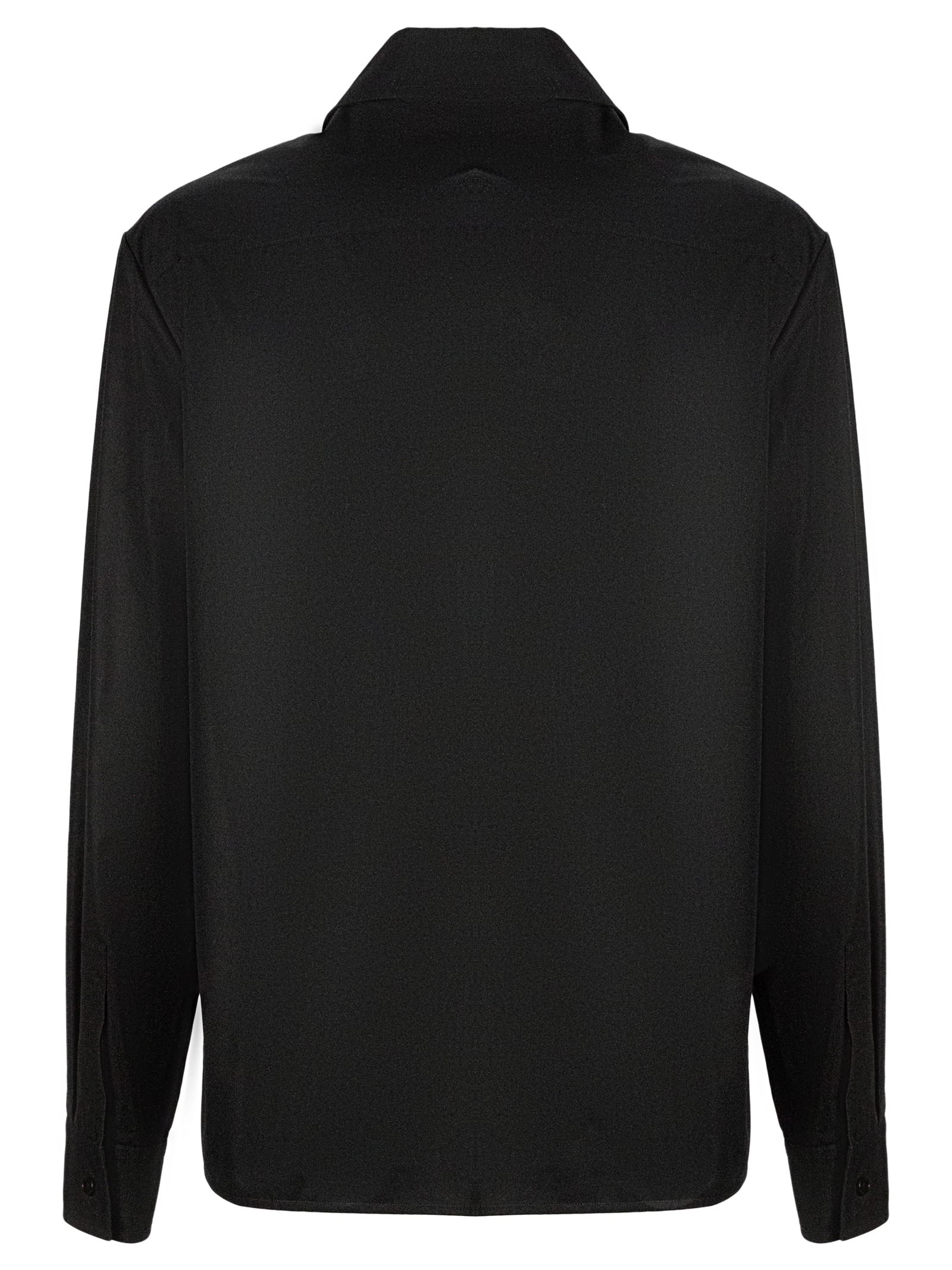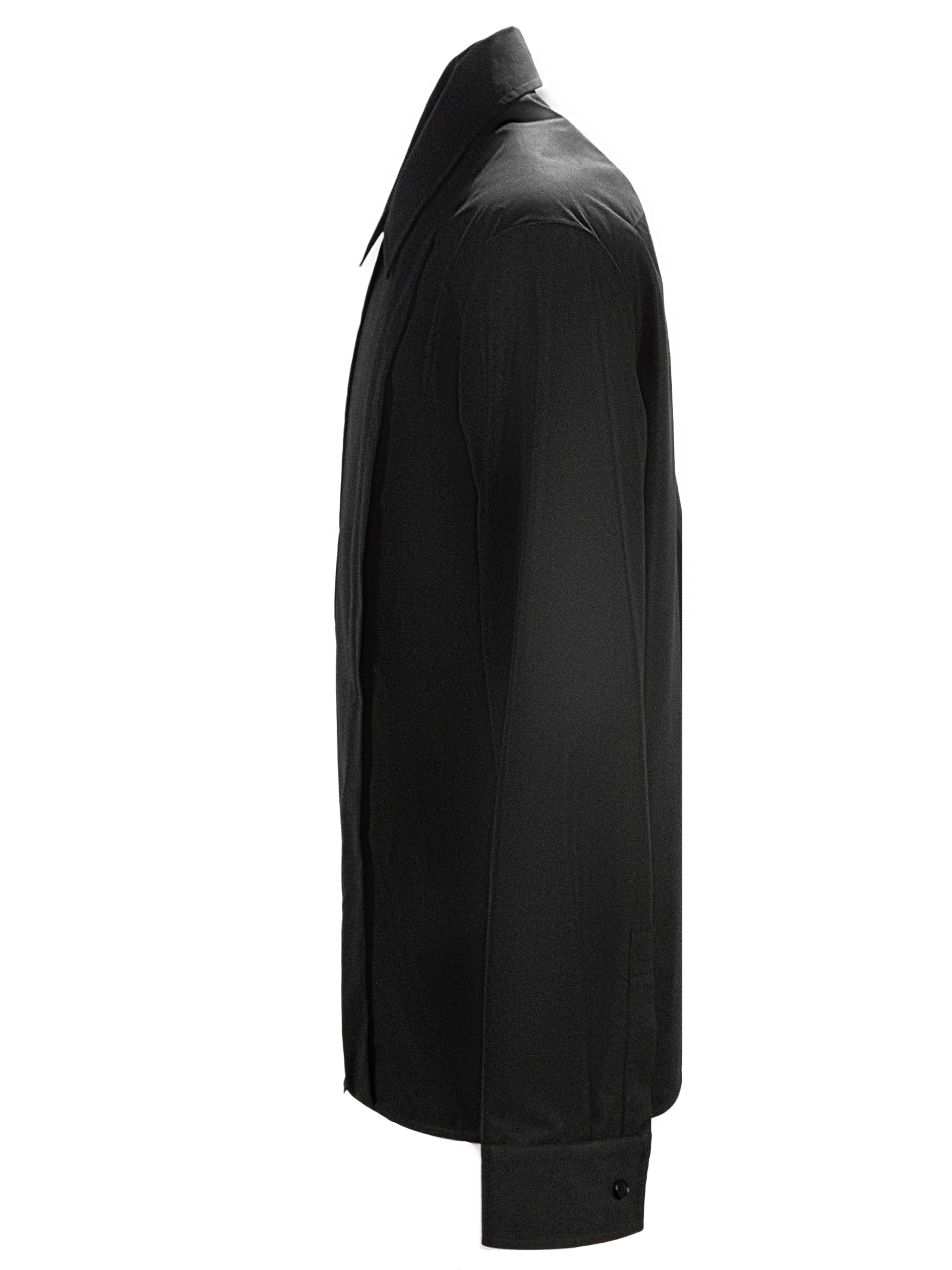 Giacca-Camicia in cotone nero con colletto classico, chiusura frotnale nascosta, maniche lunghe, vestibilità regular