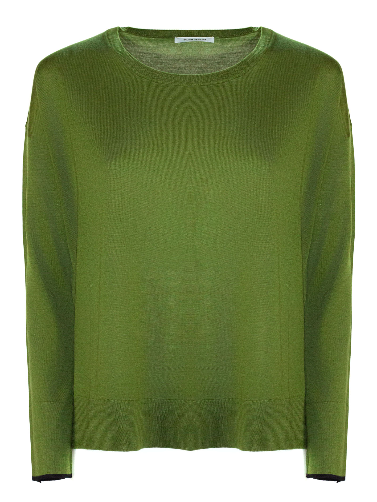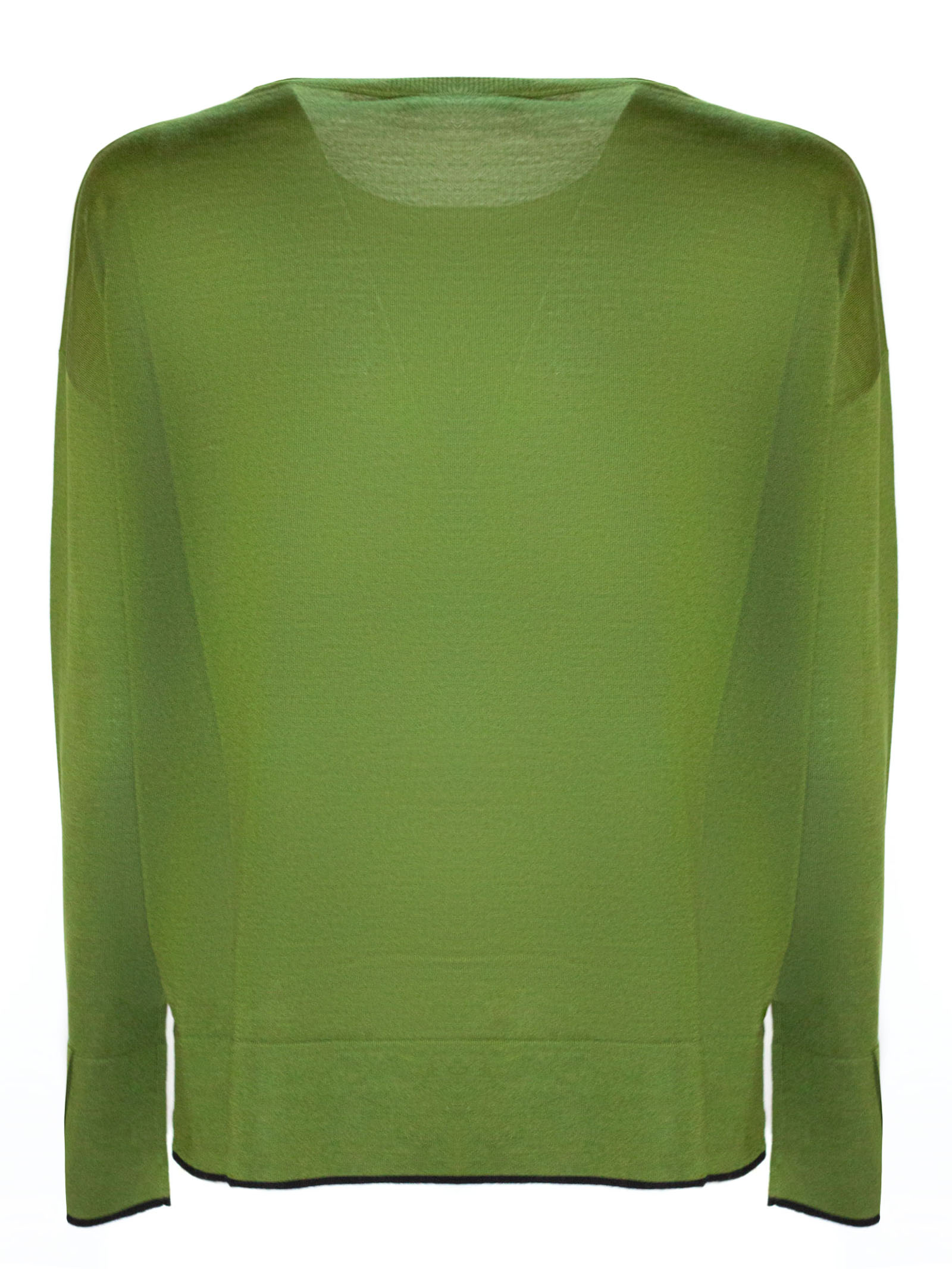 Maglia girocollo rasata finezza 16, con polsi a camicia internamente caratterizzati da contrasto di colore. Linea pulita, vestibilità morbida e filato leggero per uno stile essenziale.