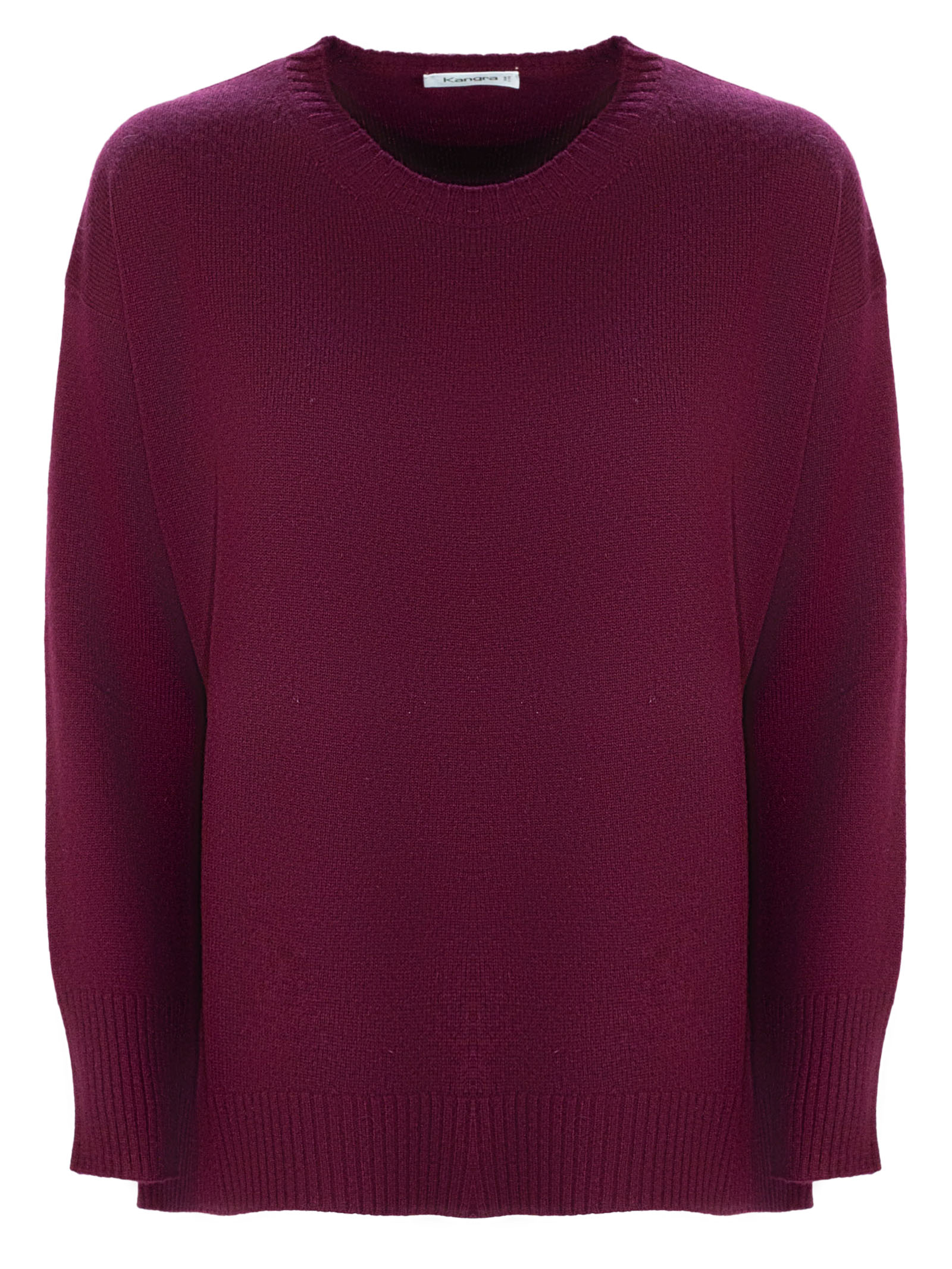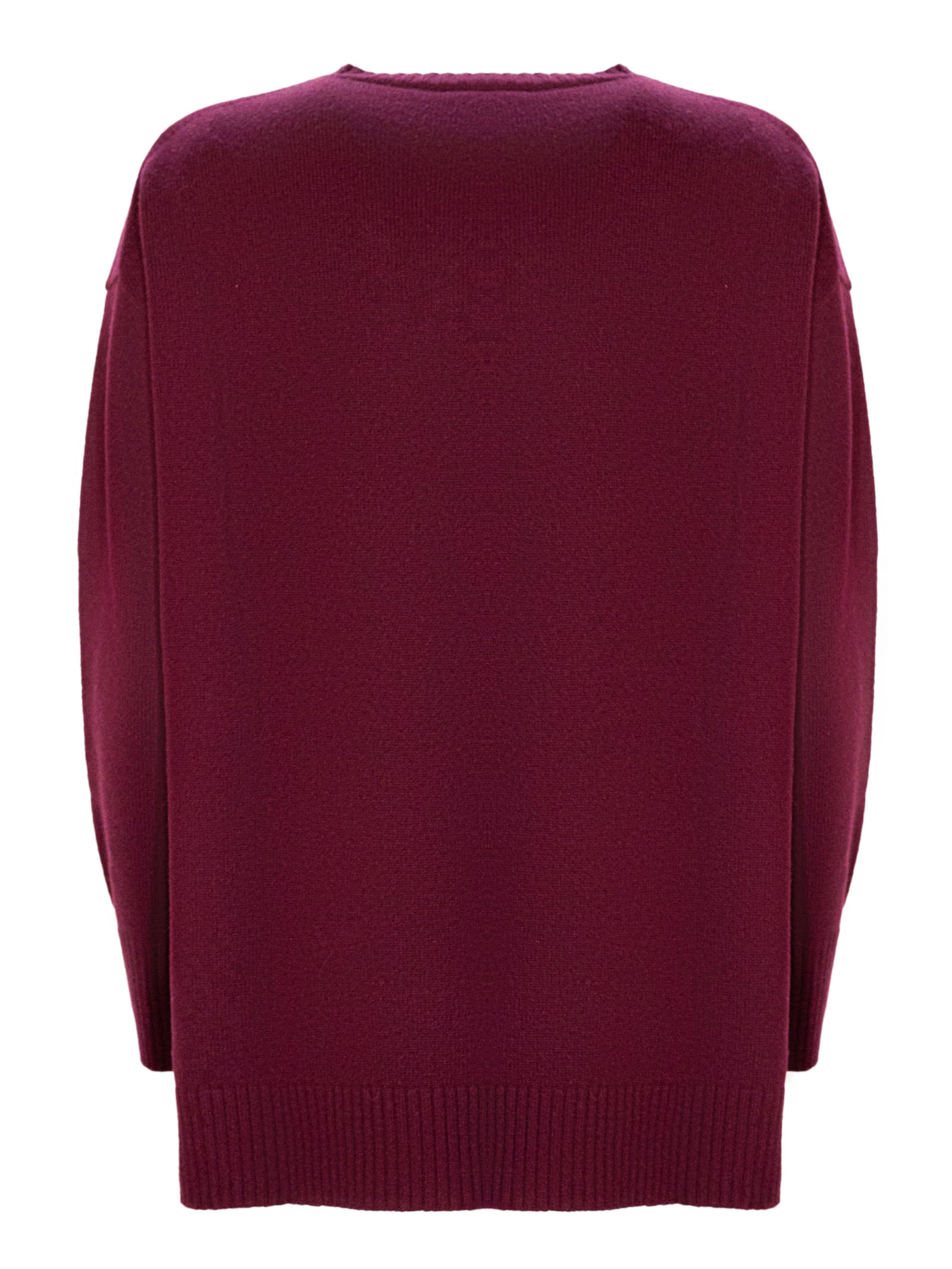 Maglia in lana bordeaux con girocollo, maniche lunghe, finiture a coste