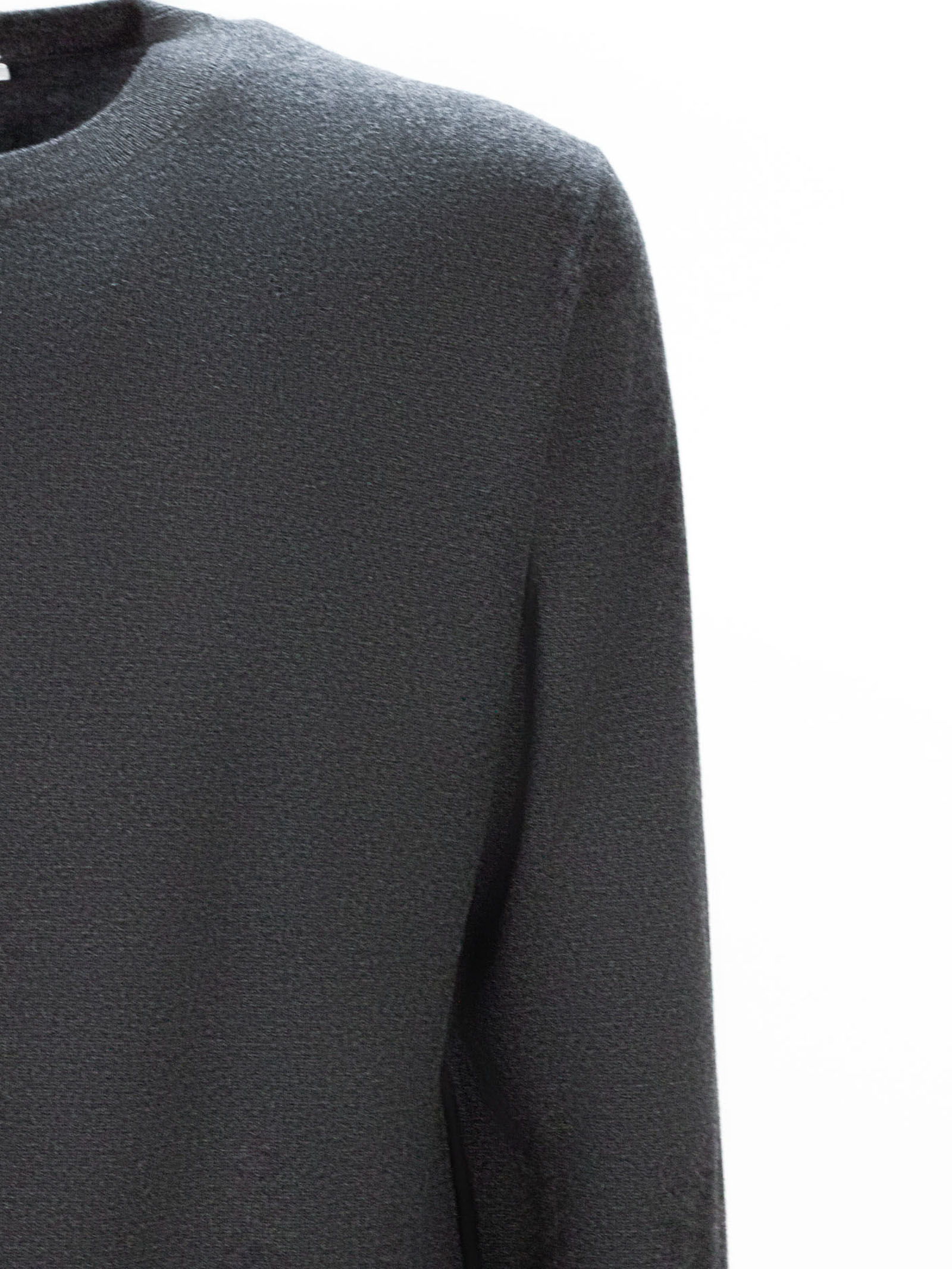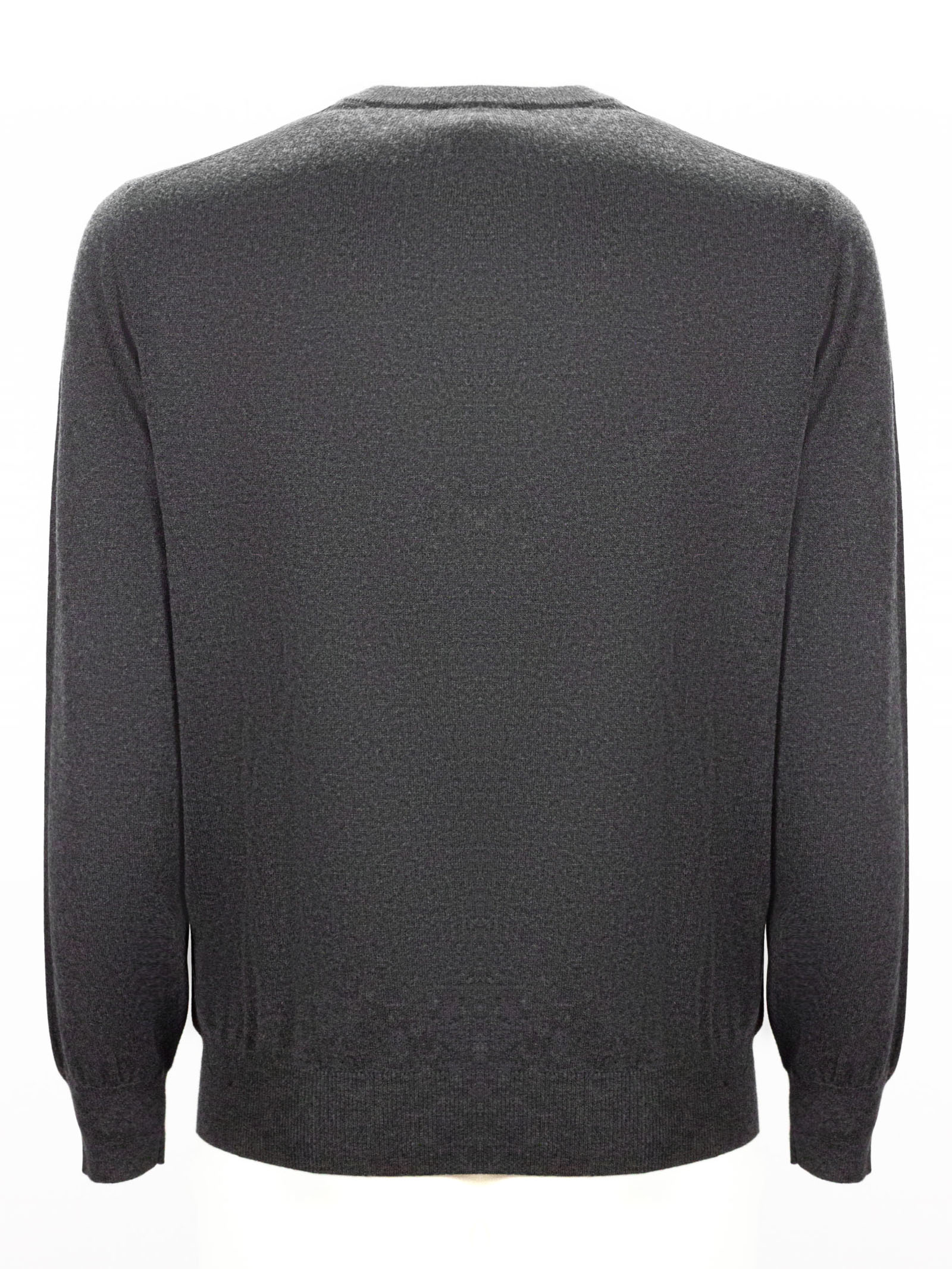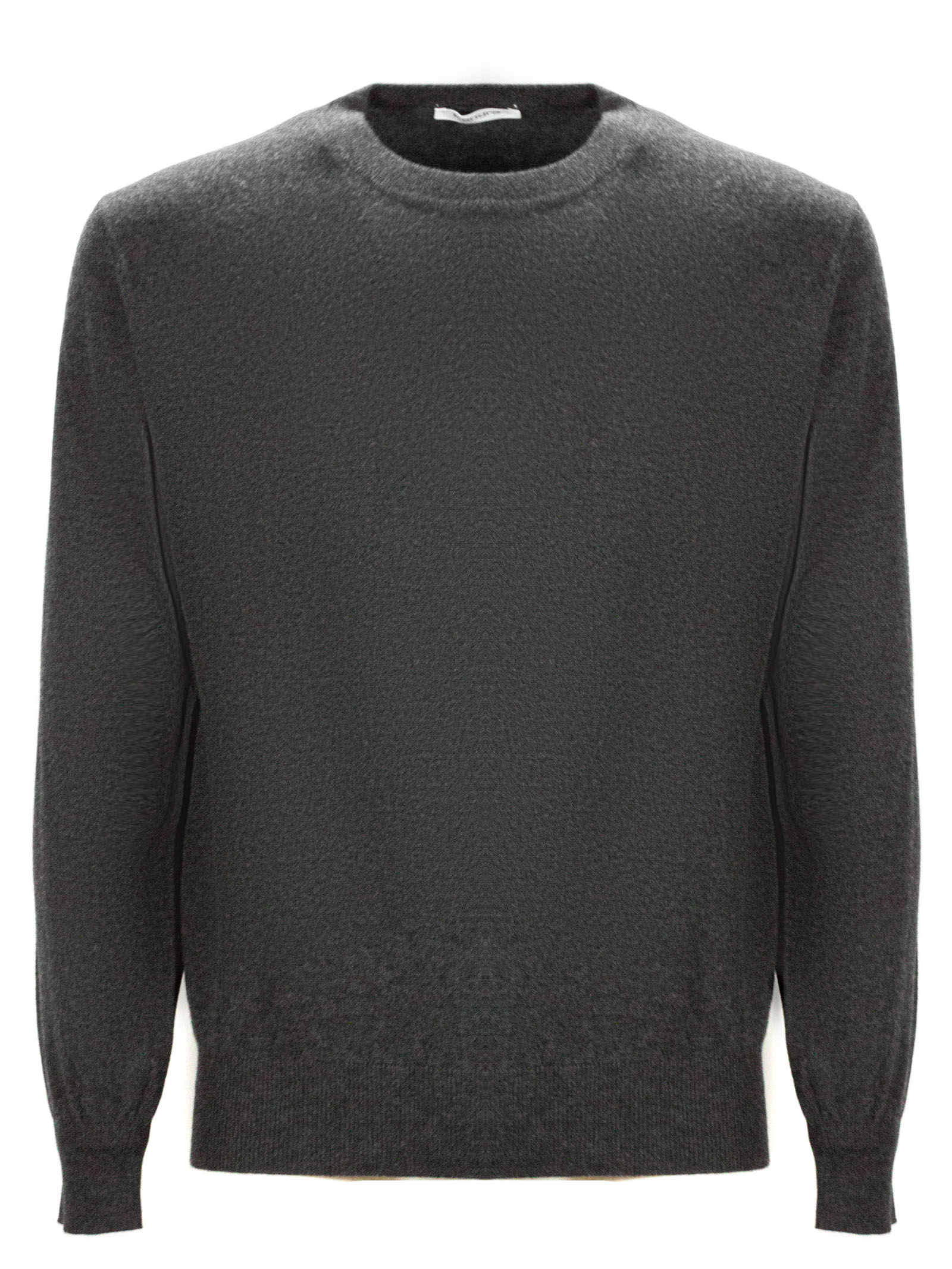 Maglia in misto lana e cotone grigio con girocollo, maniche lunghe, finiture a costine