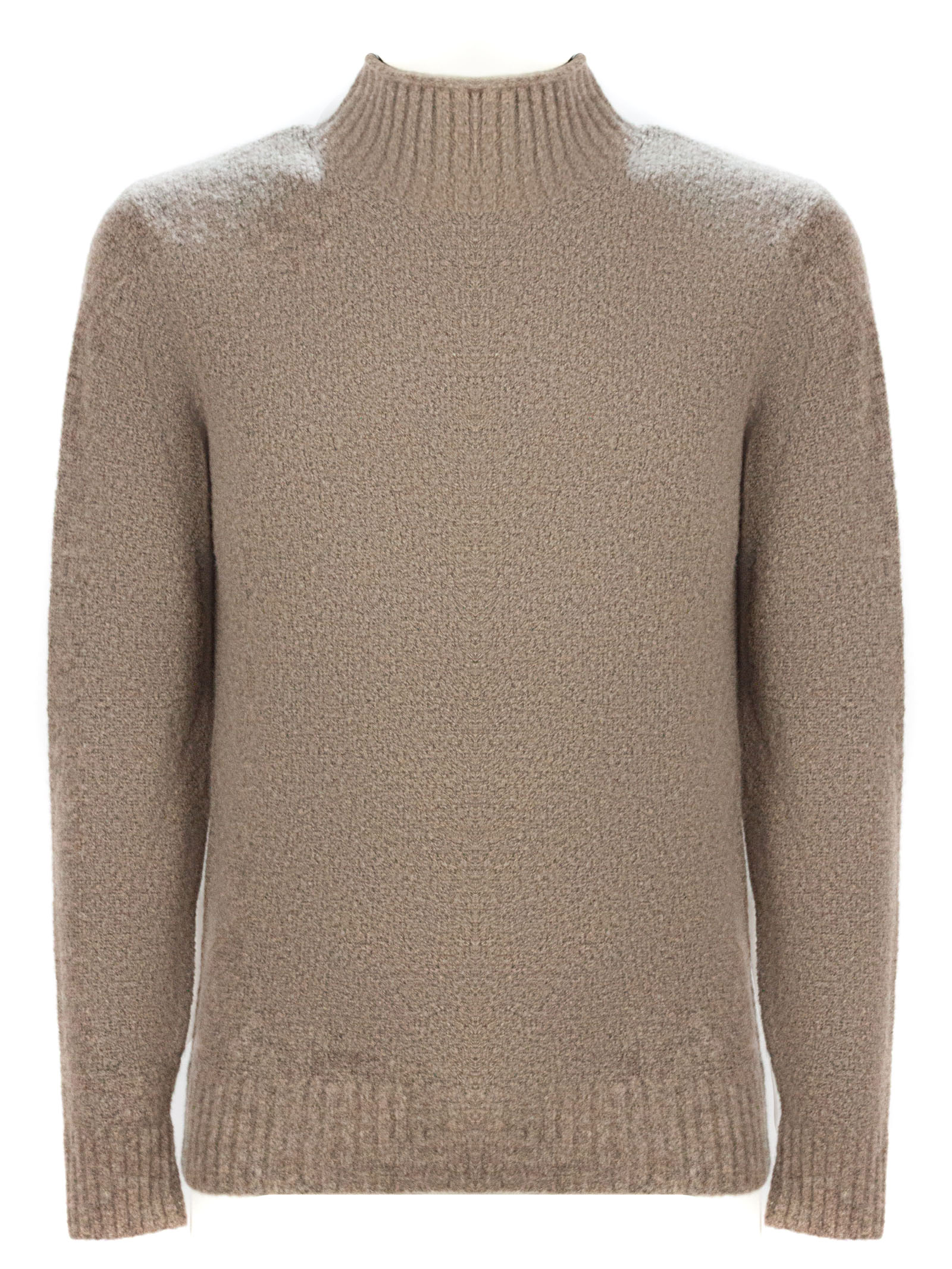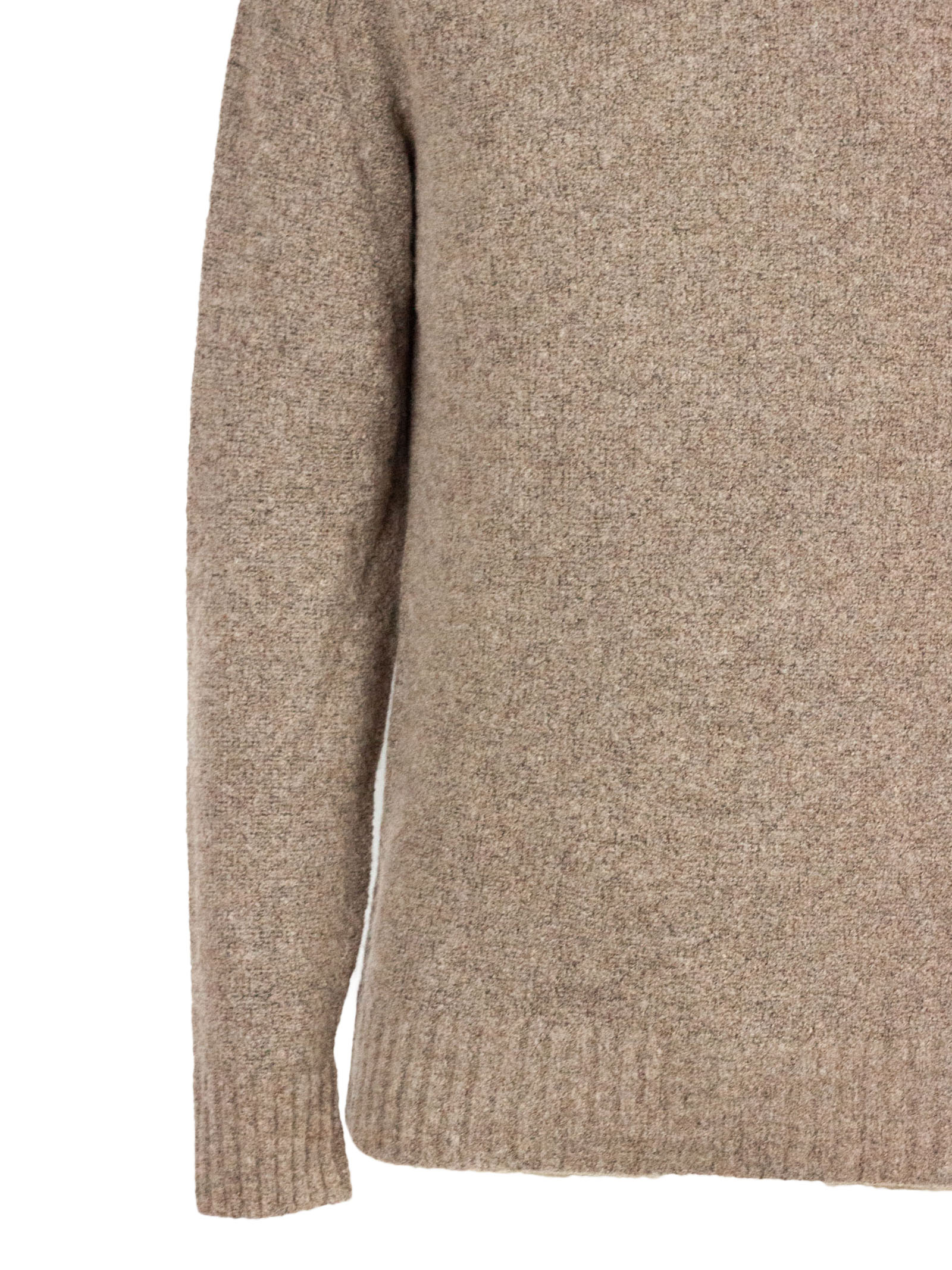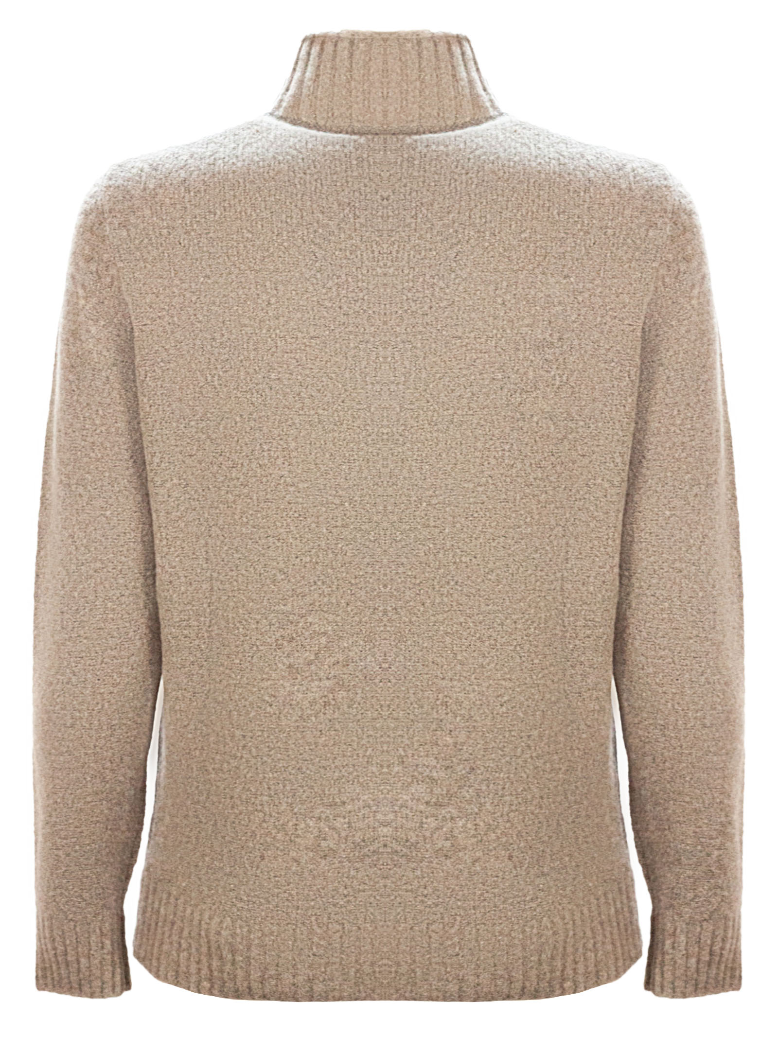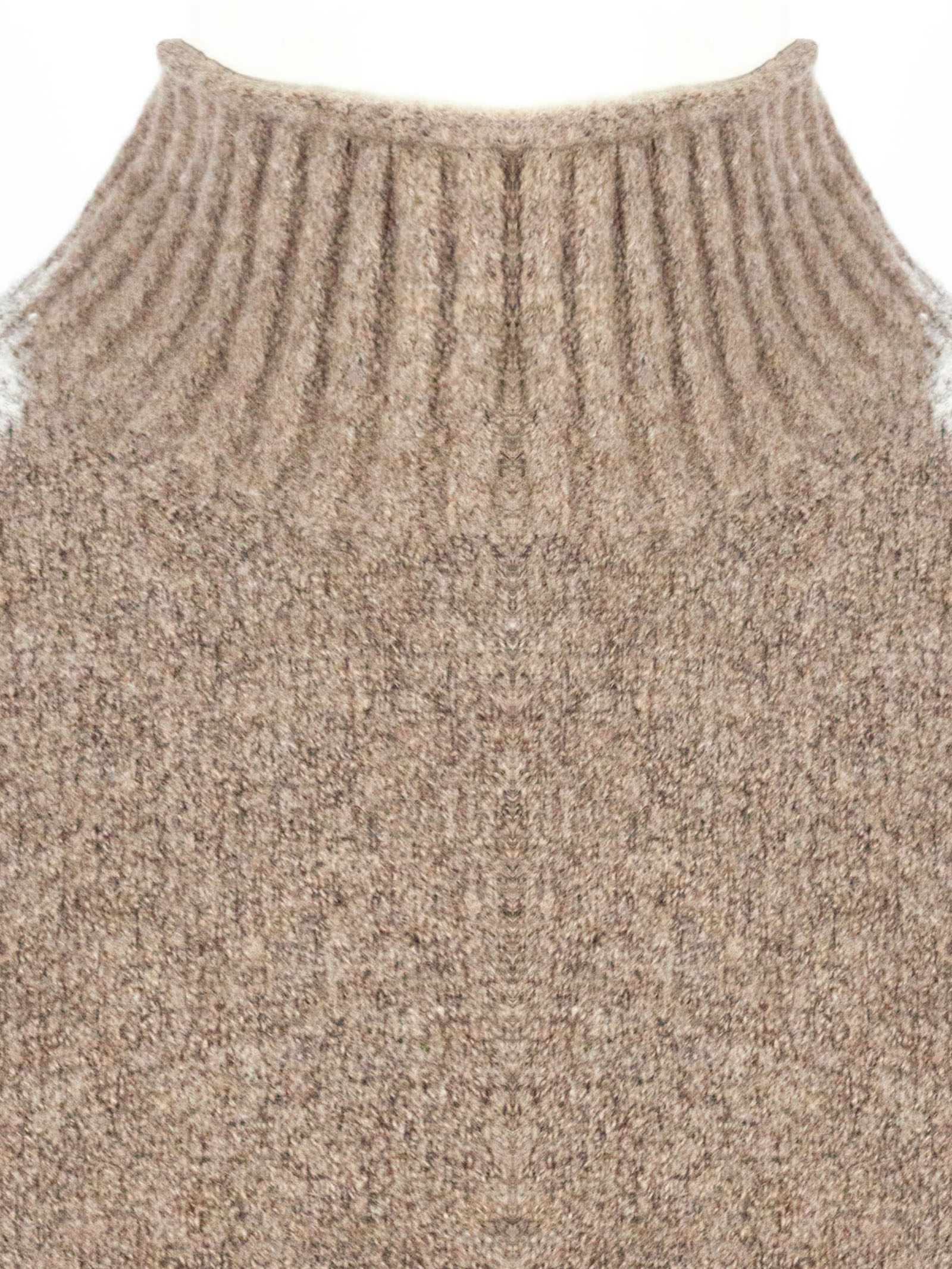 Maglione in misto lana e cashmere elasticizzato marrone con collo alto, maniche lunghe, finiture a coste, vestibilità regolare