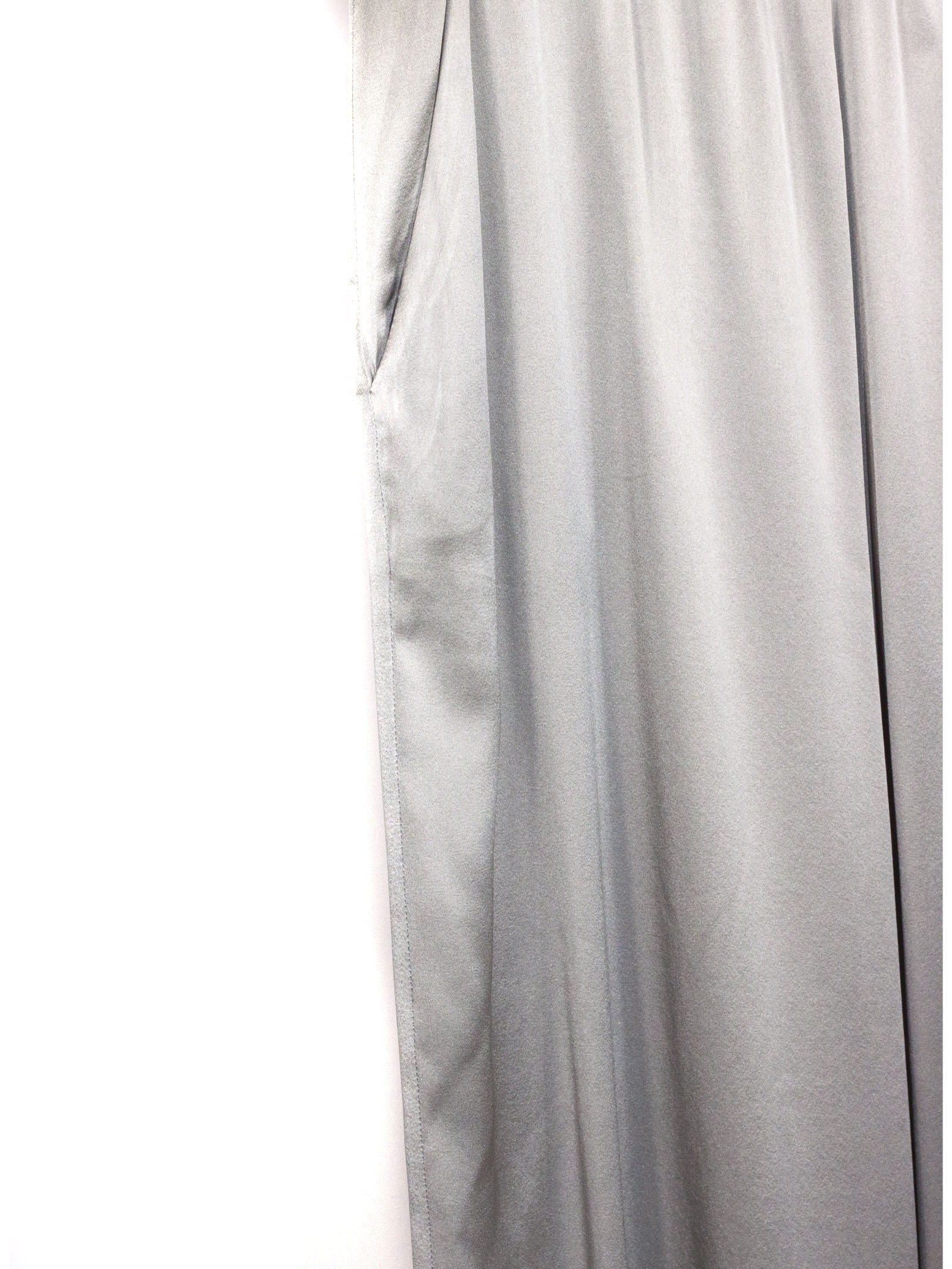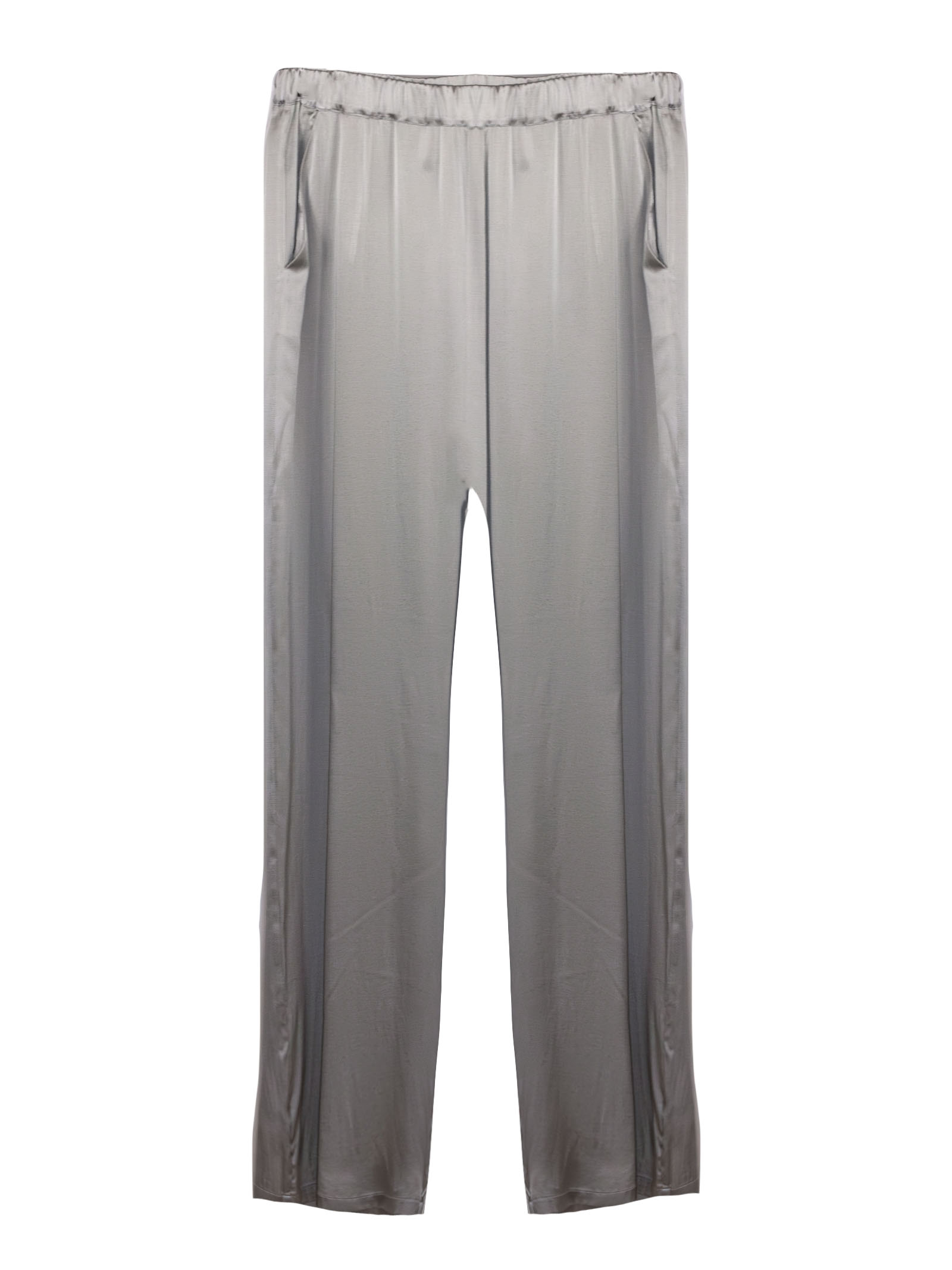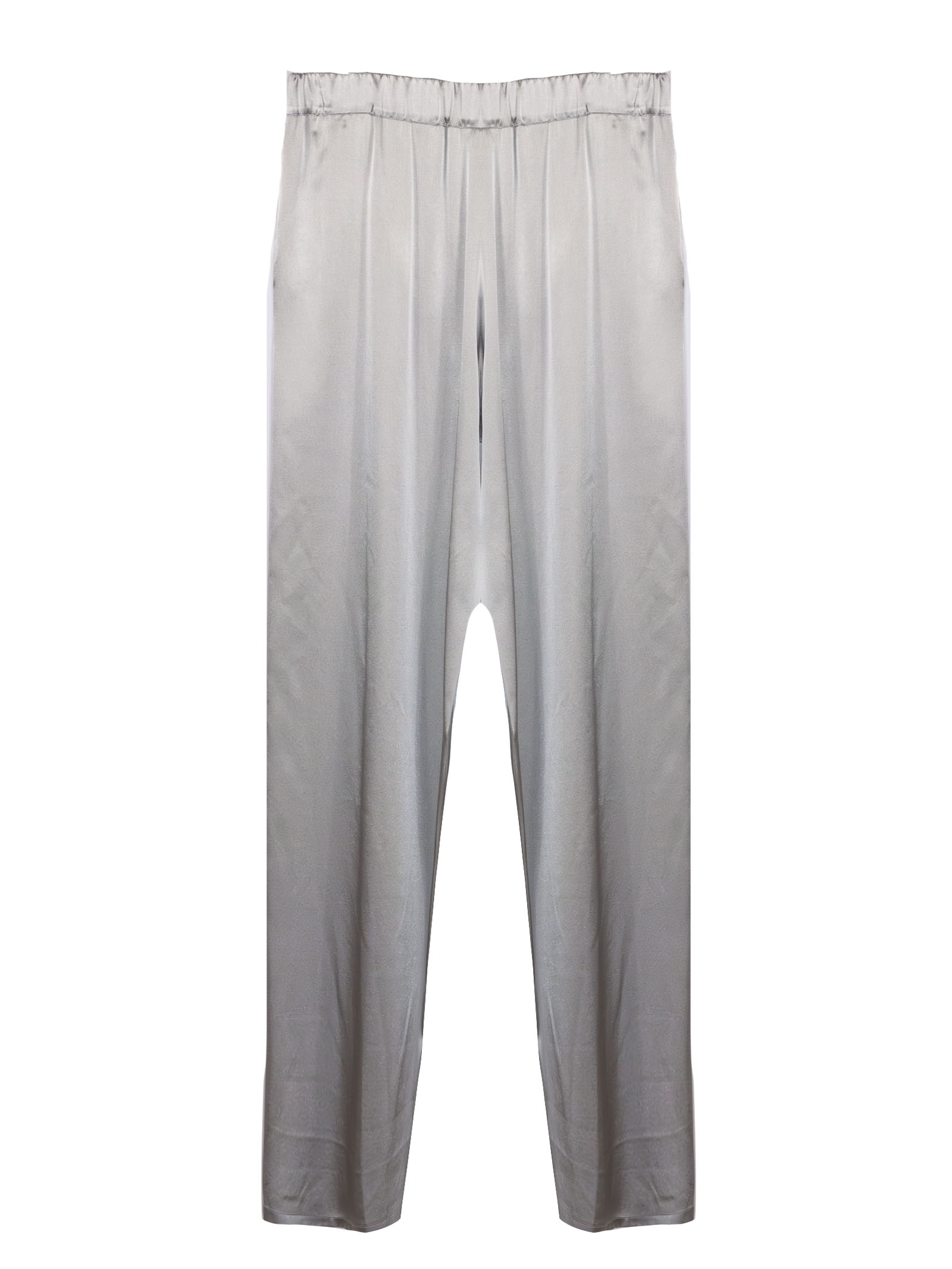 Pantalone in seta argento con vita leggermente eleasticizzata, vestibilità ampia e rilassata