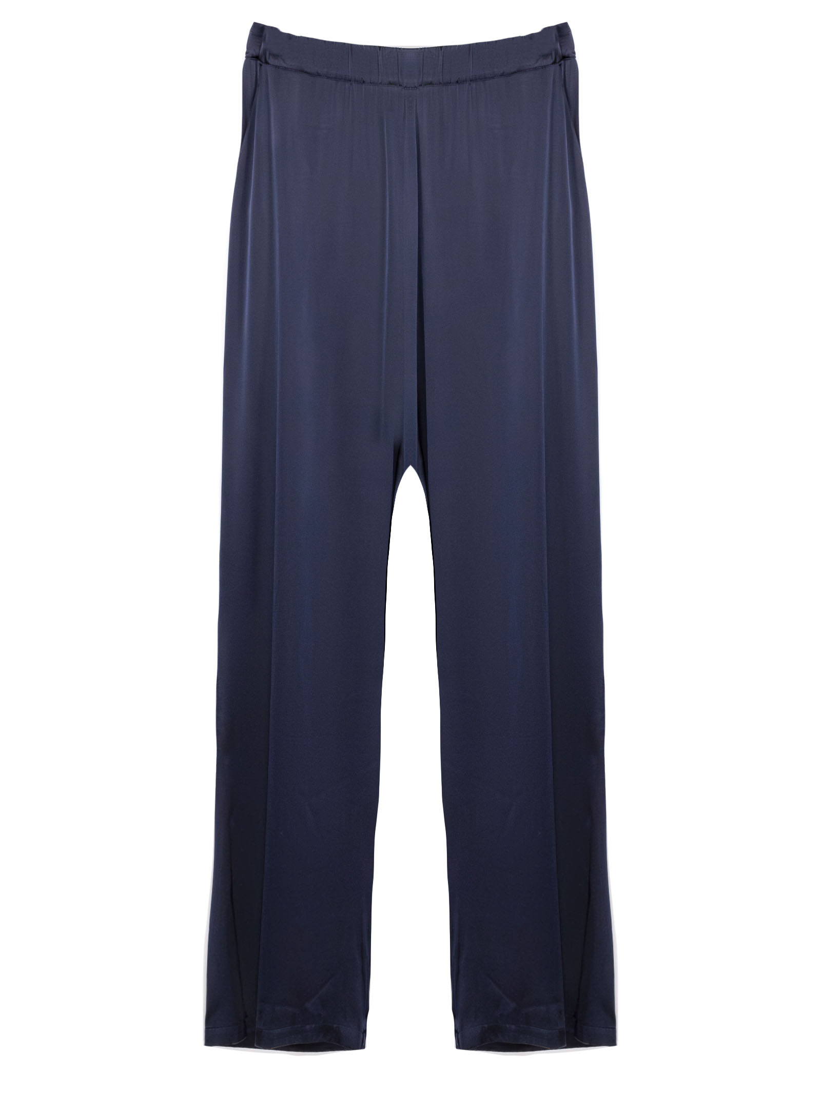Pantalone in seta blu con vita leggermente eleasticizzata, vestibilità ampia e rilassata